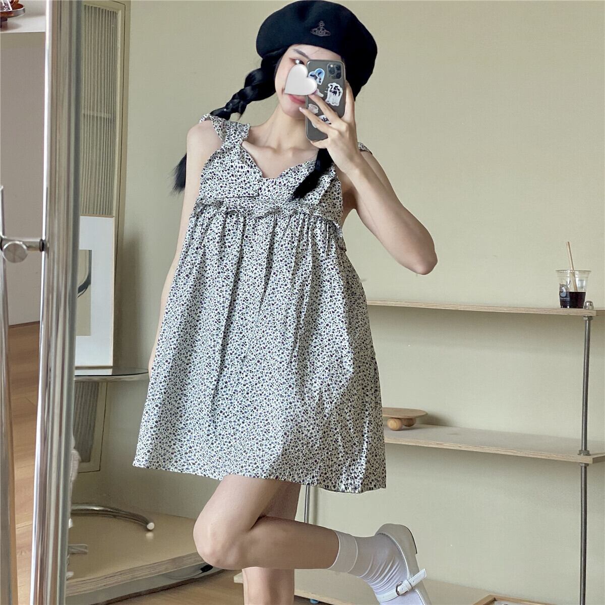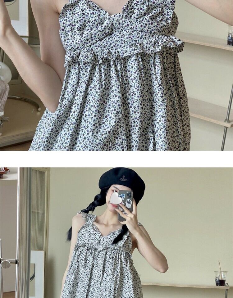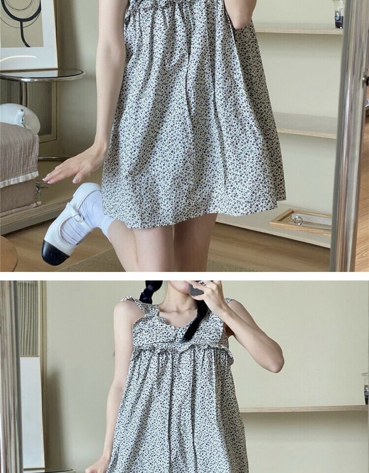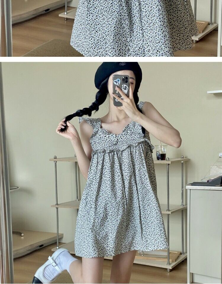 スタンダードフローラルサマールーズ薄手 リボン レトロ 大人ガーリー スウィート キュート カジュアル 夏物 花柄 スカート 萌量不足83274503343