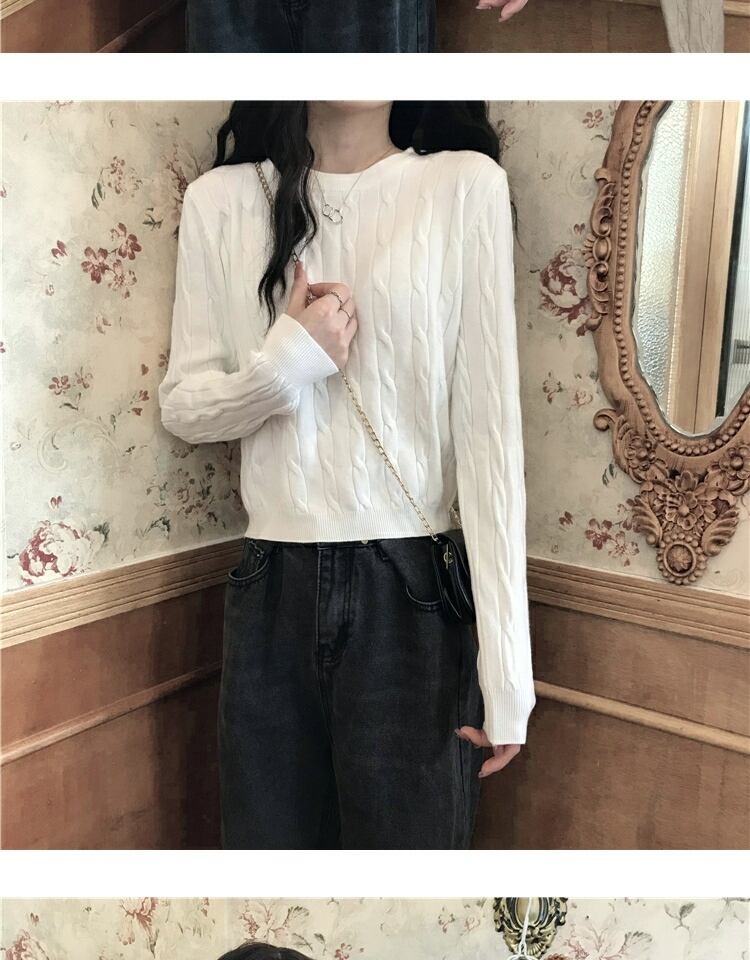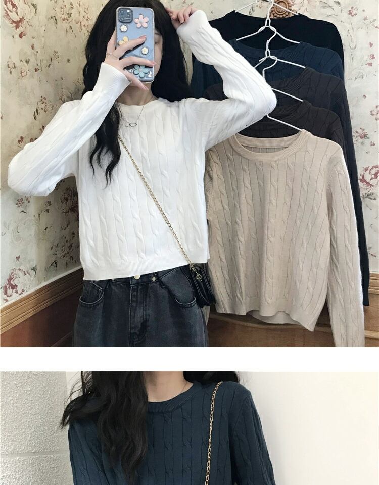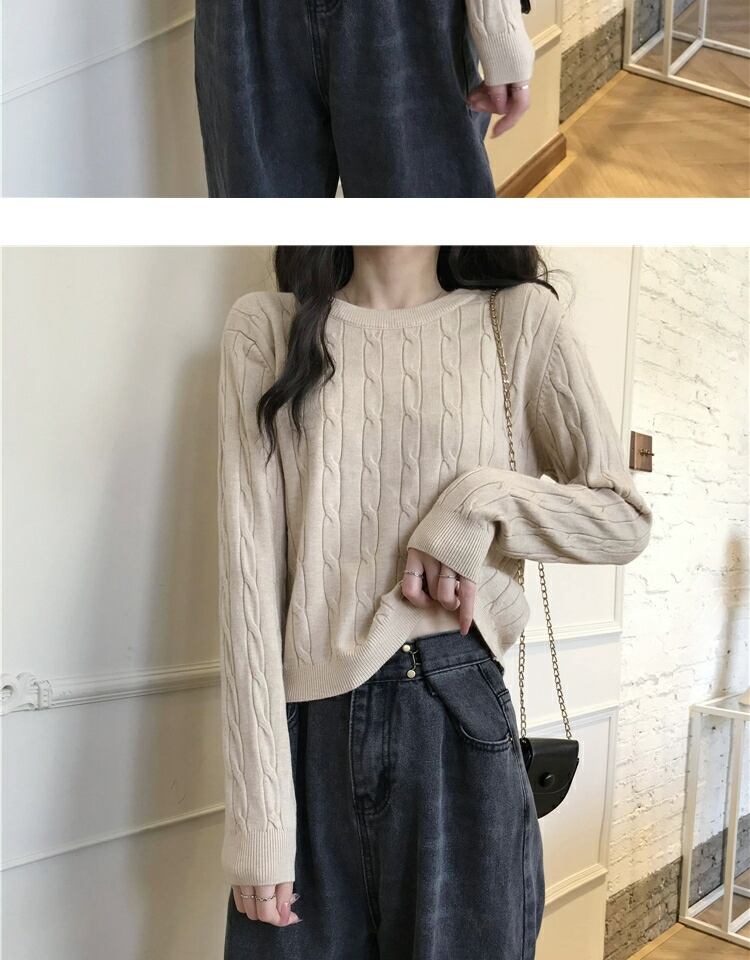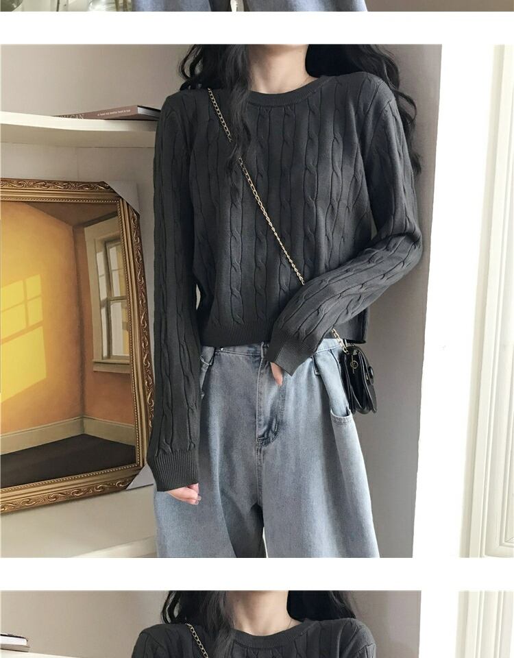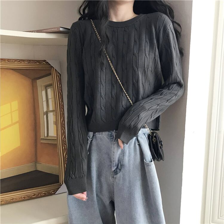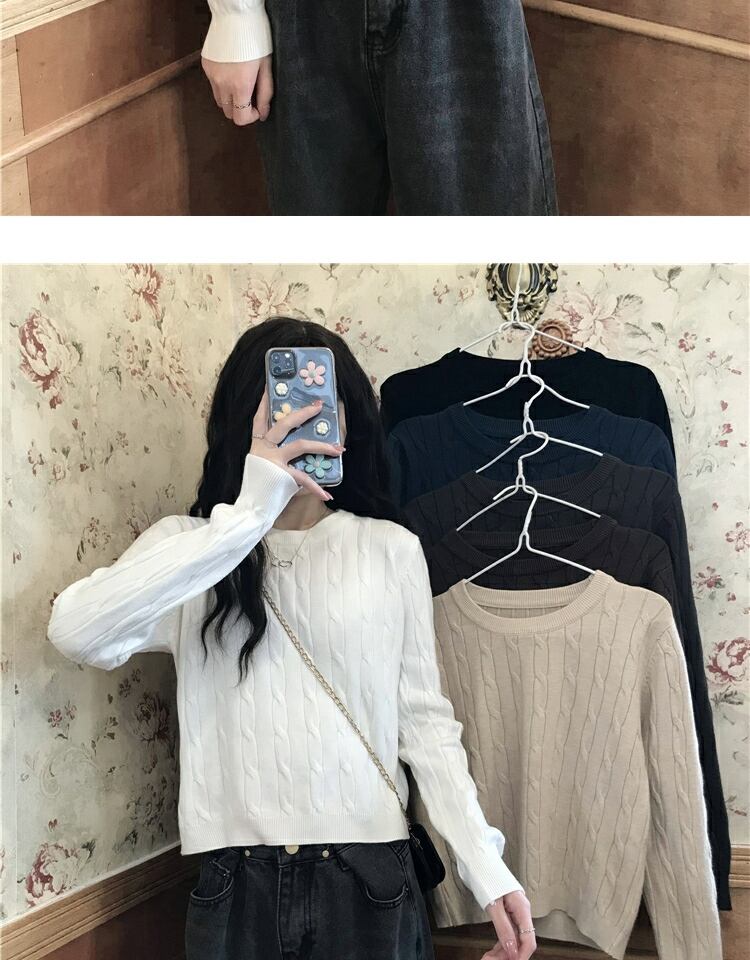 スプリングオータムルーズショートソリッド カラーラウンドネックセーター トップス ロング 春物 秋物 Oネック ソリッドカラー 萌量不足30066783524