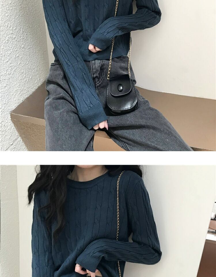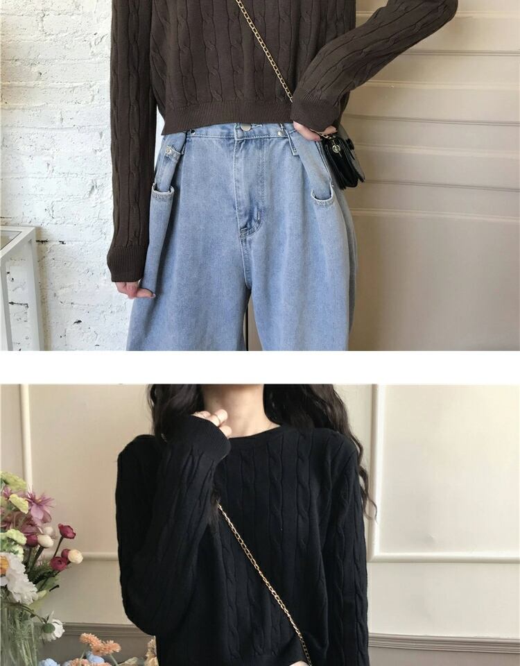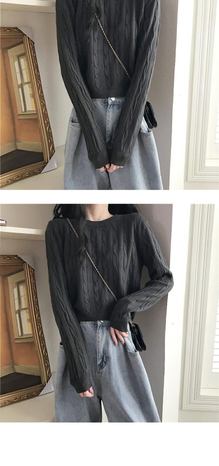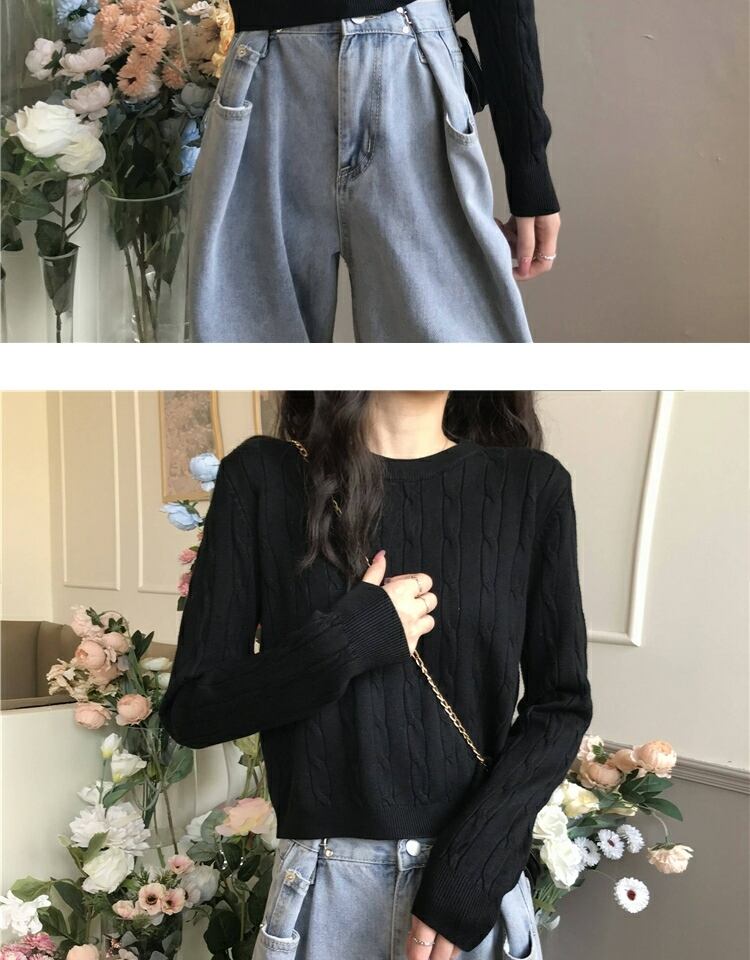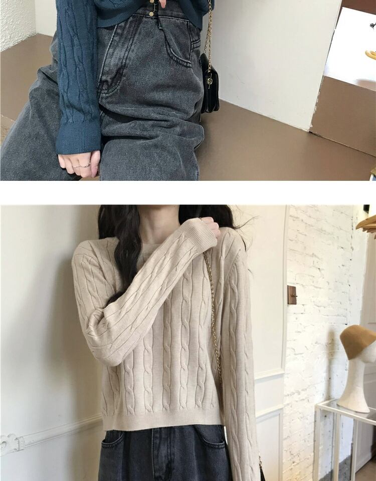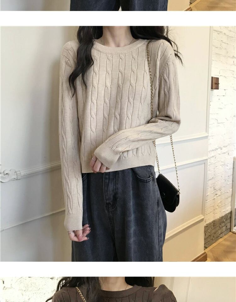 スプリングオータムルーズショートソリッド カラーラウンドネックセーター トップス ロング 春物 秋物 Oネック ソリッドカラー 萌量不足30066783524