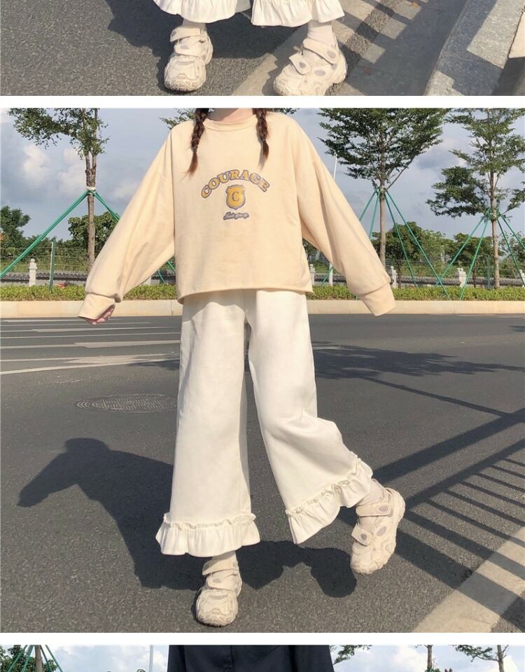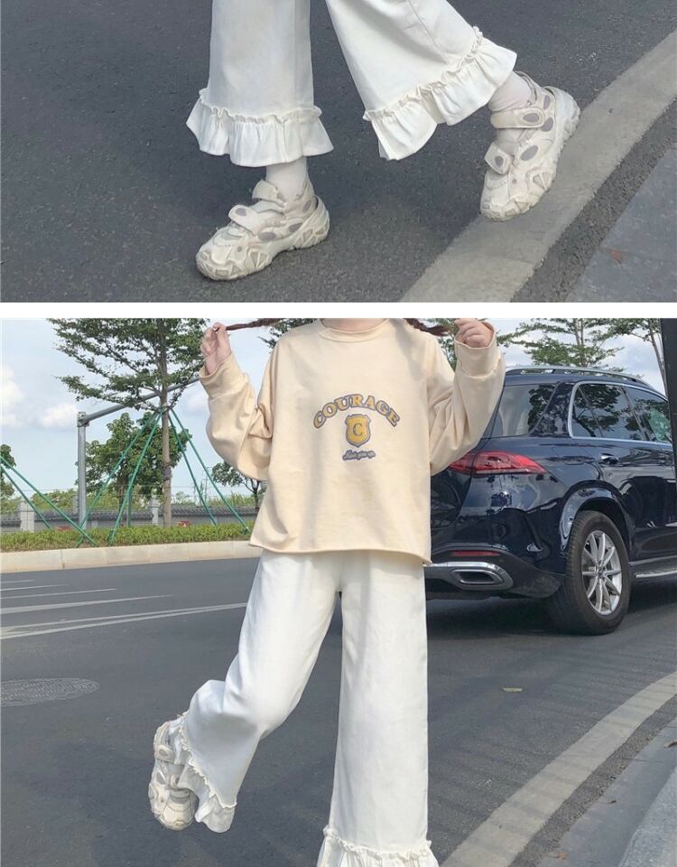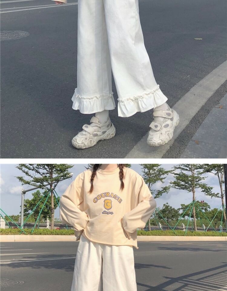 スプリングサマーストレッチハイウェストウェスト薄手ホワイトルーズワイドレッグパンツ カジュアル エラスティック 伸縮 春物 夏物 ワイドパンツ 萌量不足83378833954