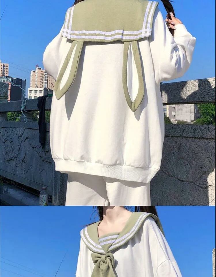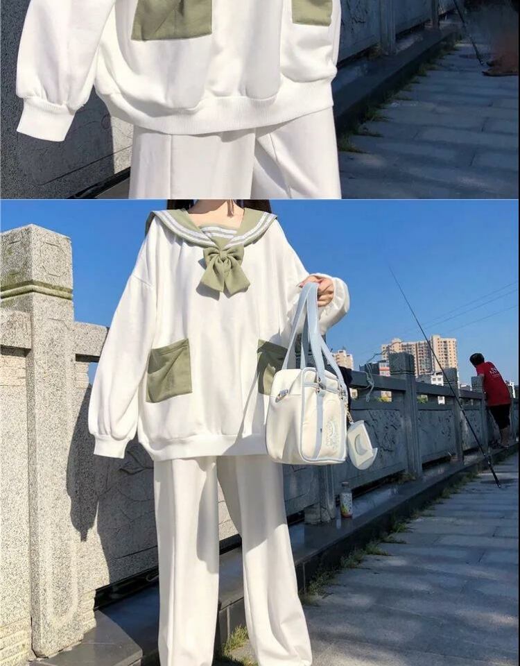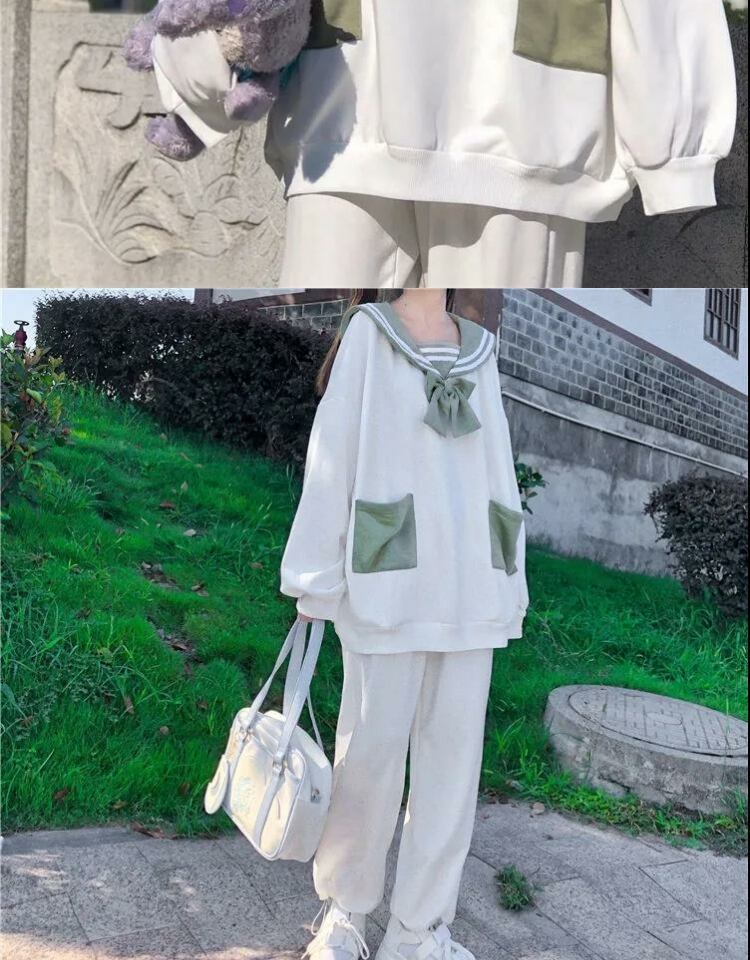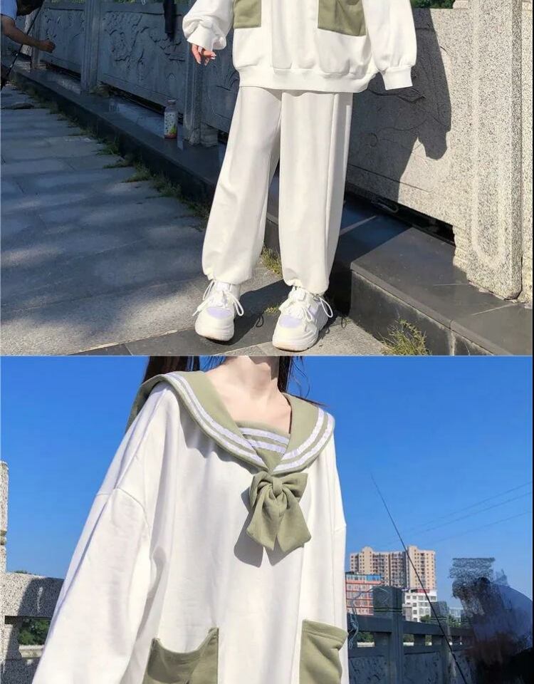 ネイビーカラーセーター オータムルーズトップス ロング 大人ガーリー スウィート キュート カジュアル 秋物 萌量不足8453052801