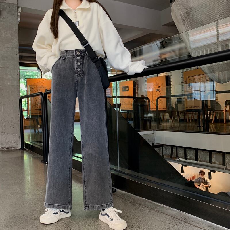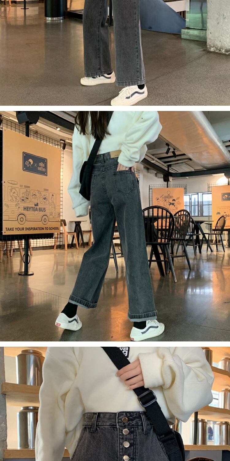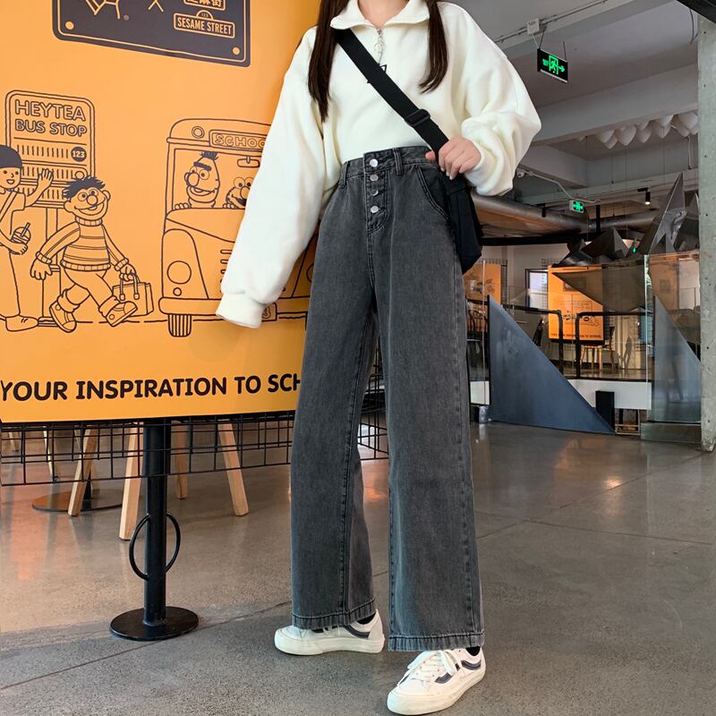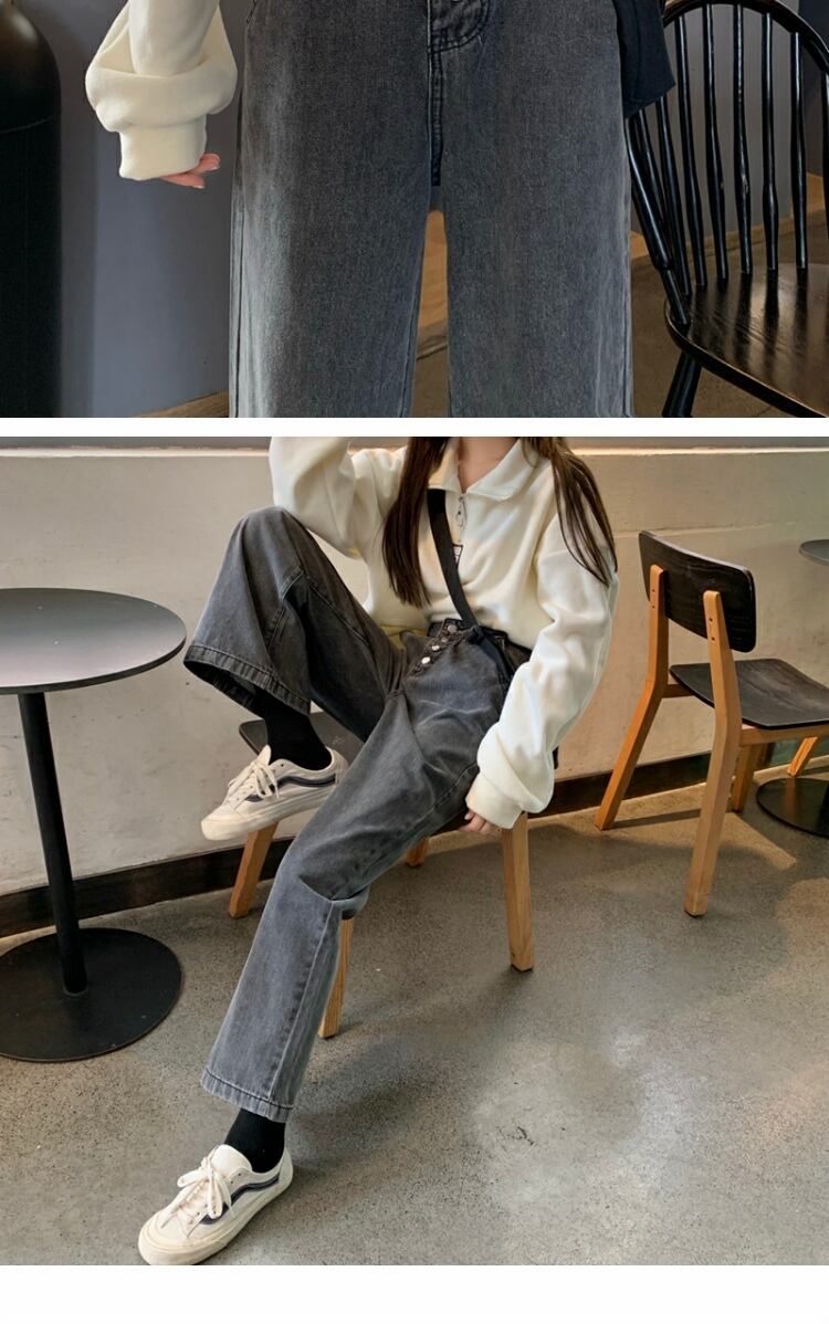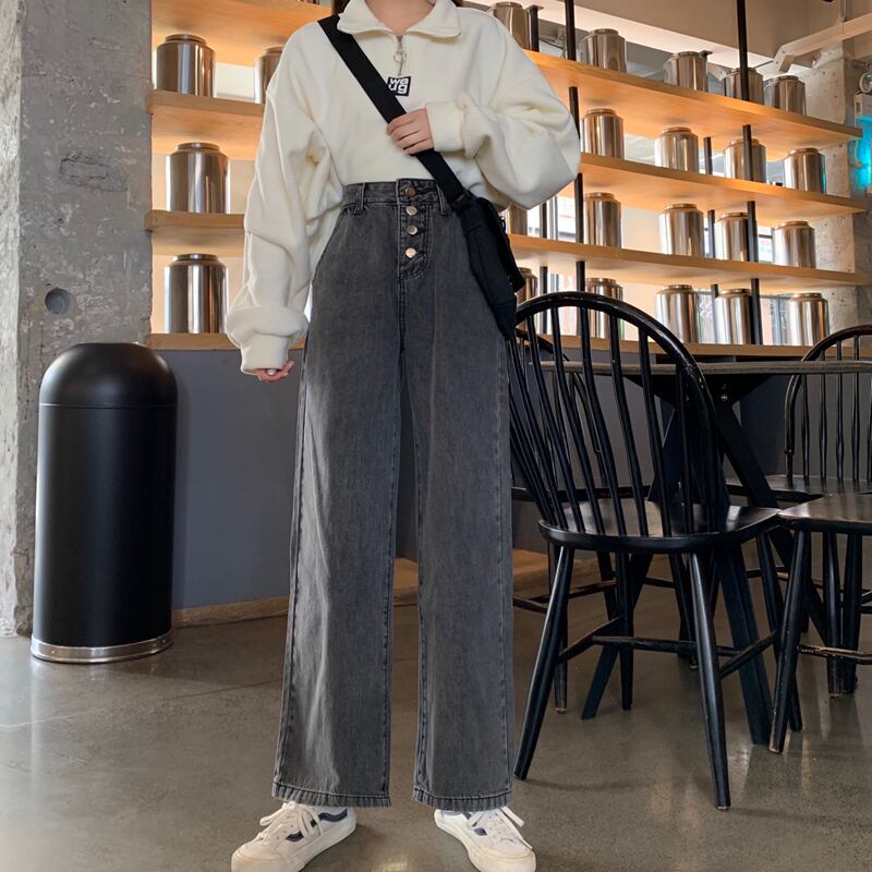 ブラックジーンズ スプリングオータムスタイルハイウェストウェストルーズパンツ 春物 秋物 萌量不足70316828466