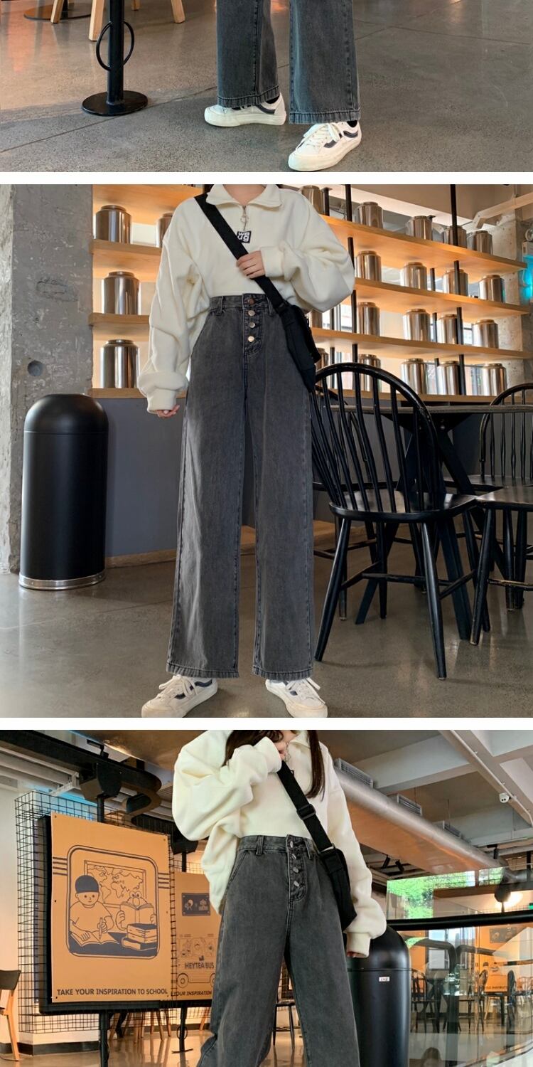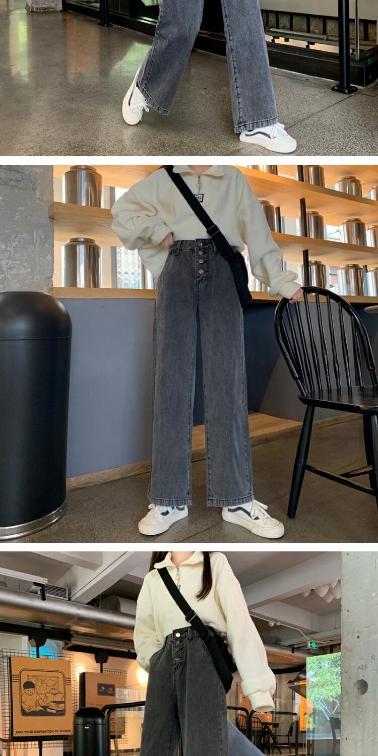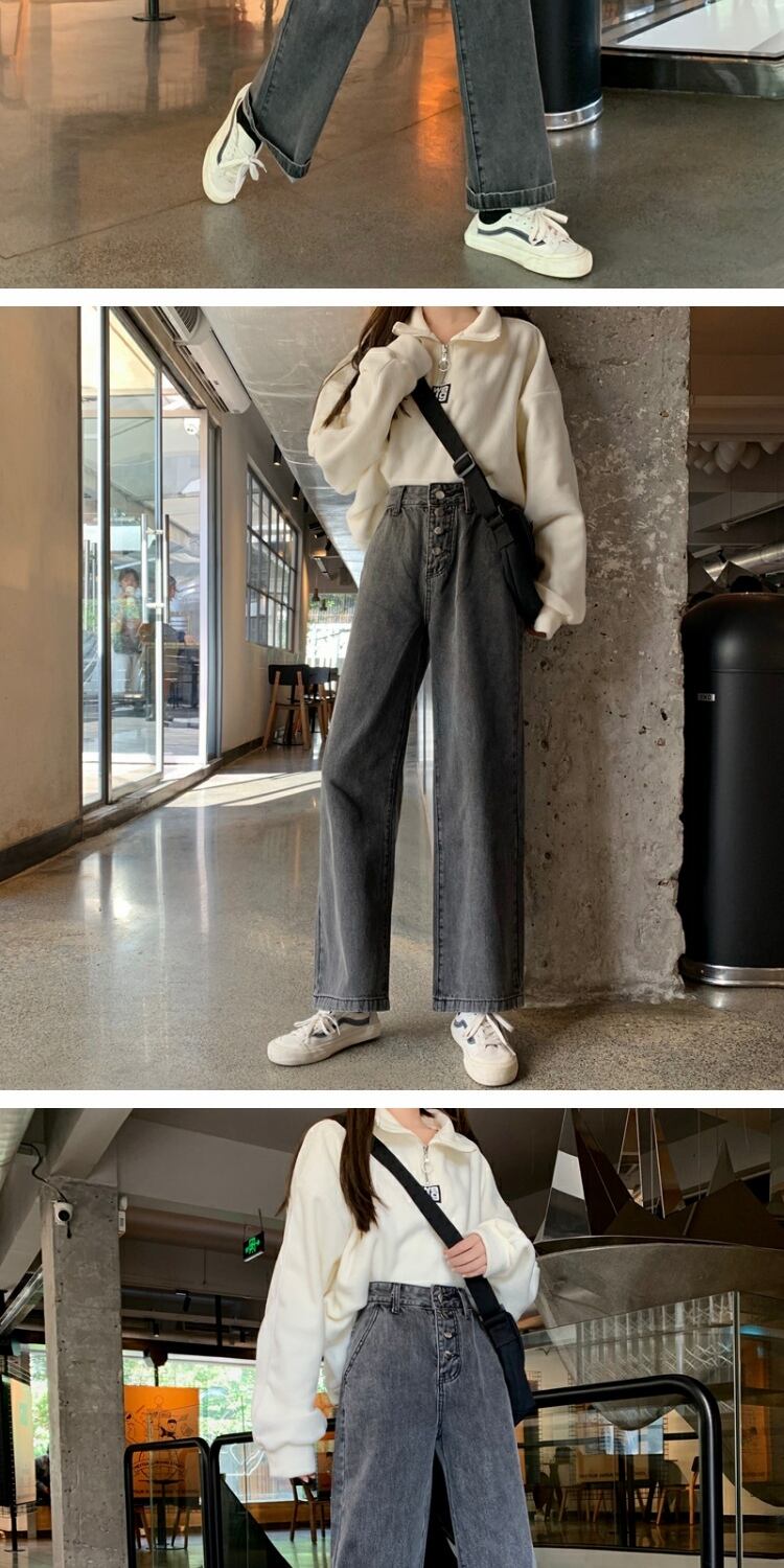 ブラックジーンズ スプリングオータムスタイルハイウェストウェストルーズパンツ 春物 秋物 萌量不足70316828466