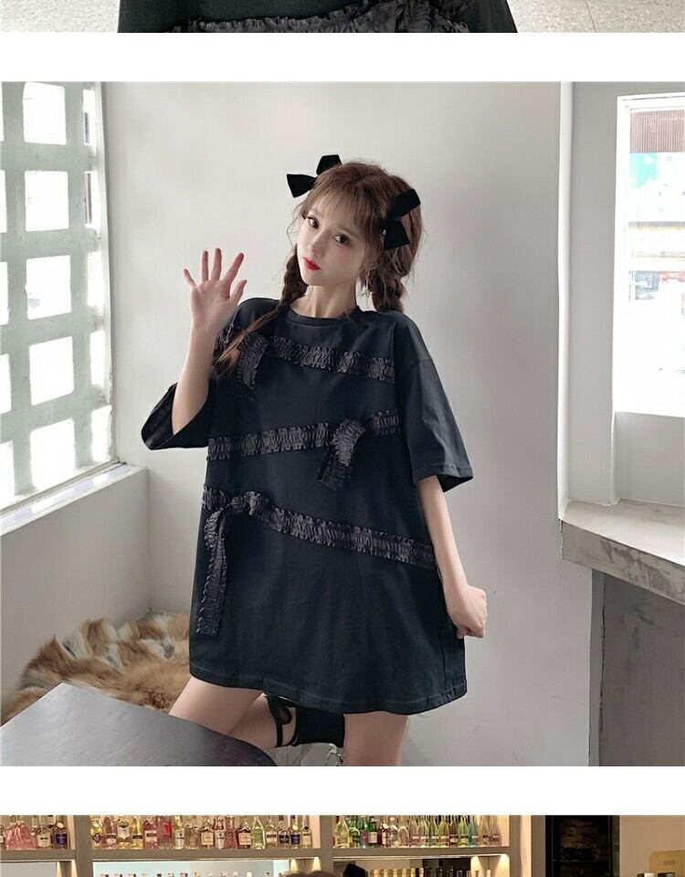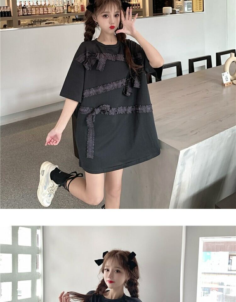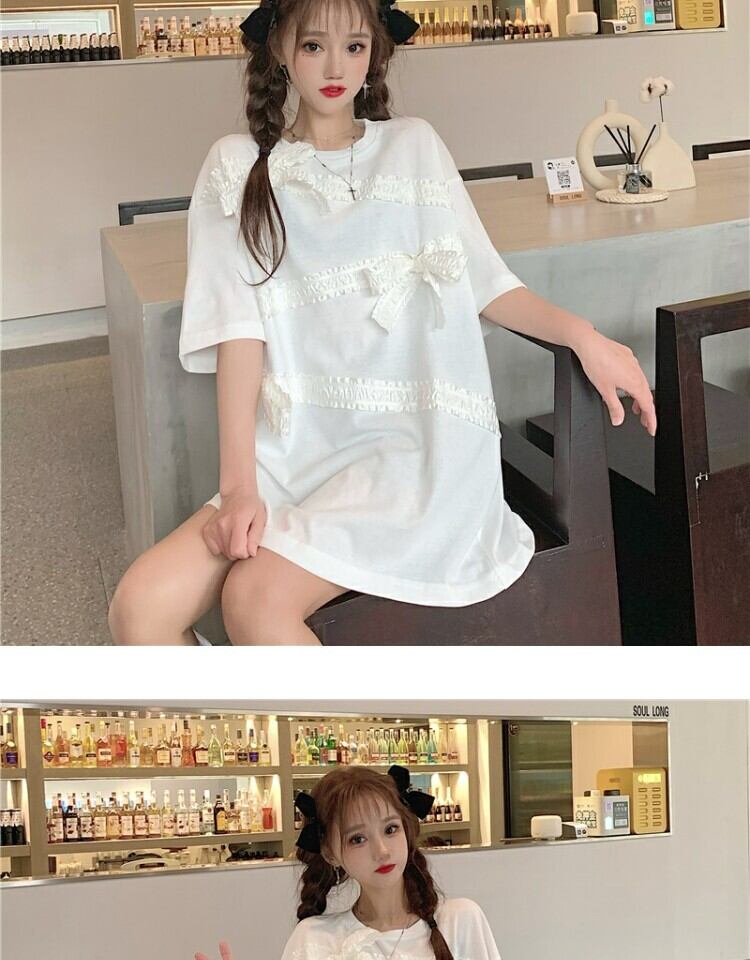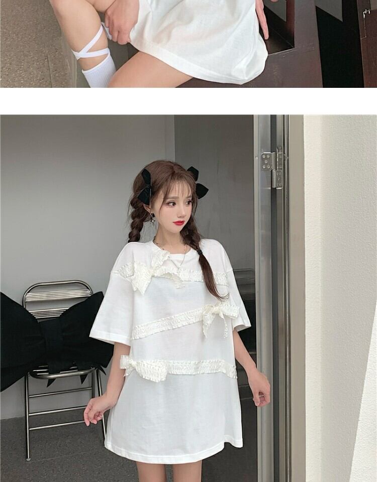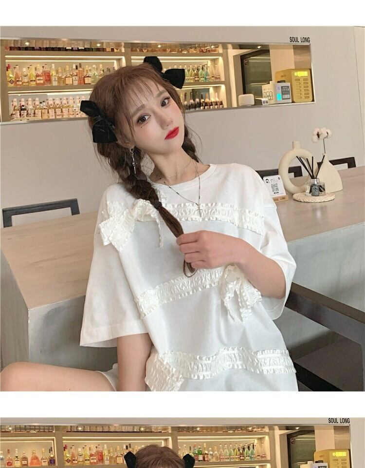 レッドスタイルリボンTシャツ サマートップス 夏物 萌量不足33858495712