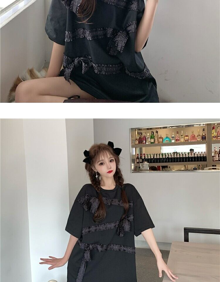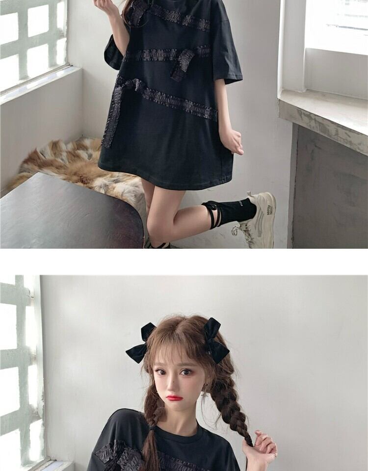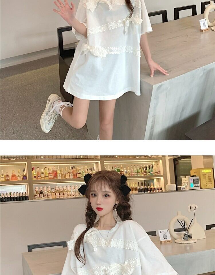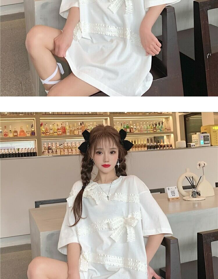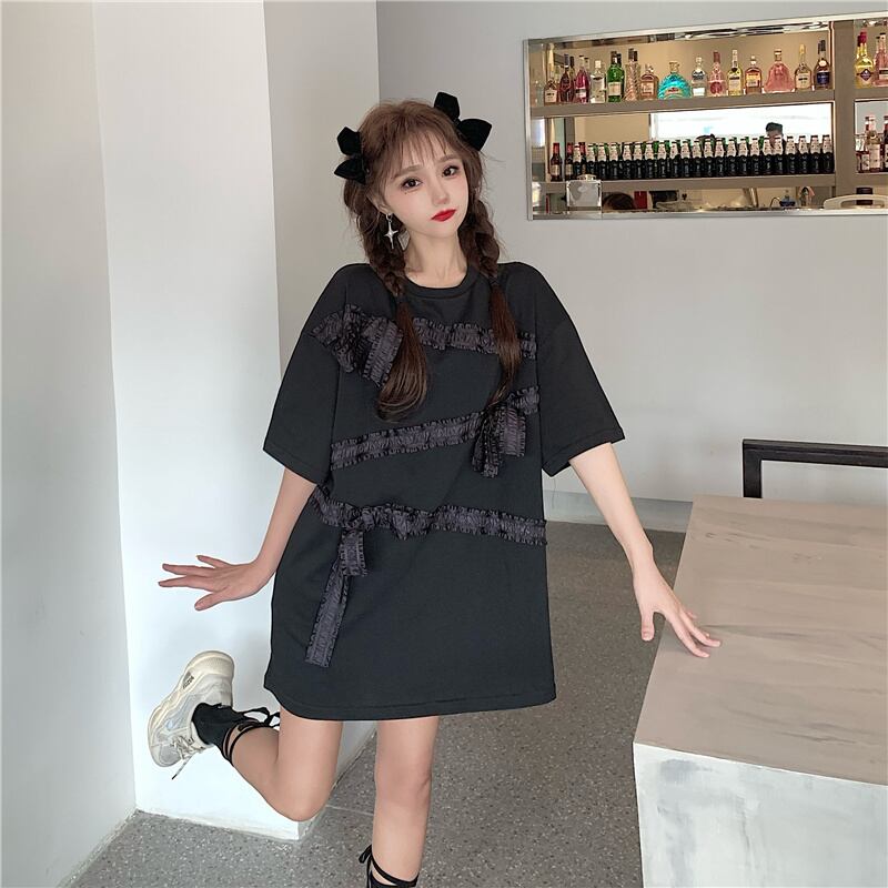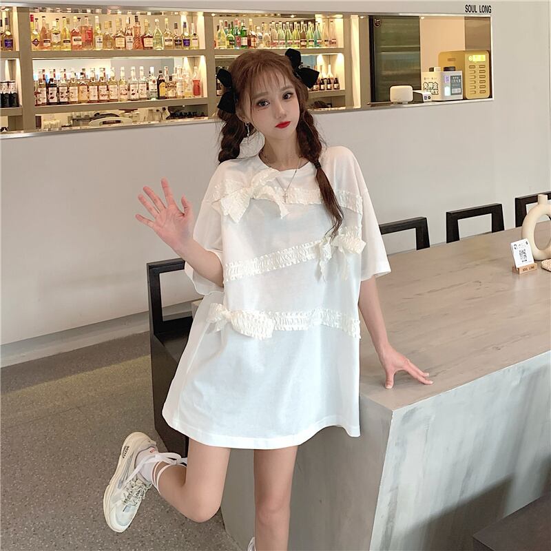 レッドスタイルリボンTシャツ サマートップス 夏物 萌量不足33858495712