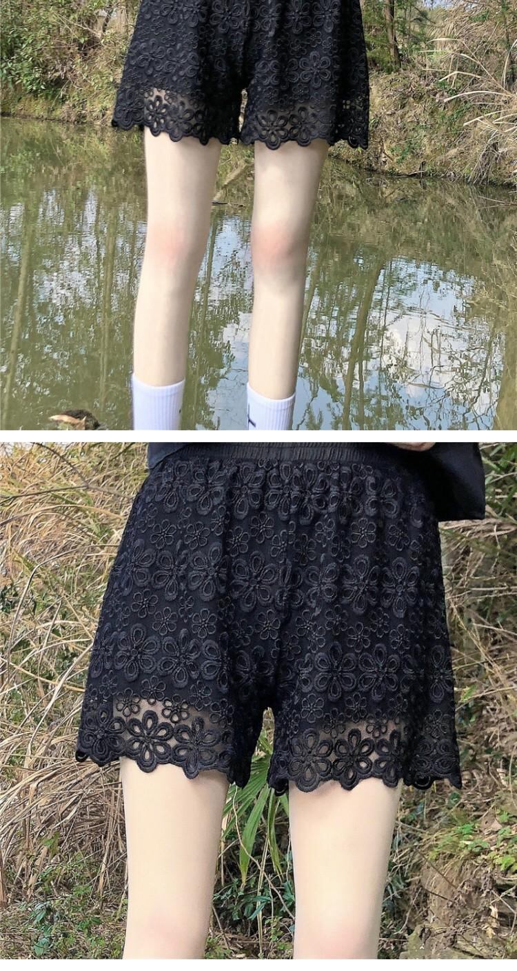 ハイウェストウェストレッドレースレギンス レディースサマーパンツ 薄手ショーツ 大人ガーリー スウィート キュート カジュアル 夏物 ブルマー 萌量不足69030867713