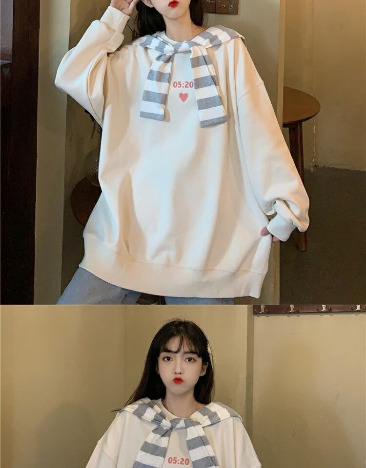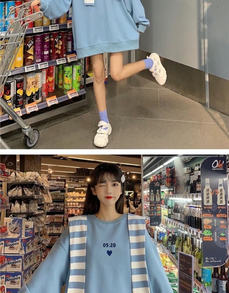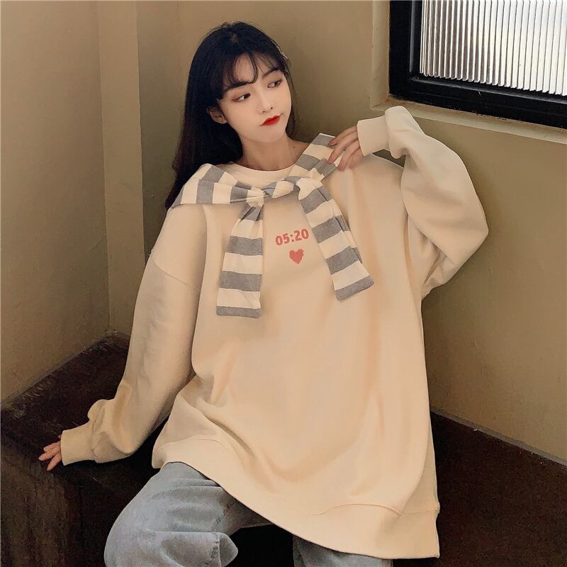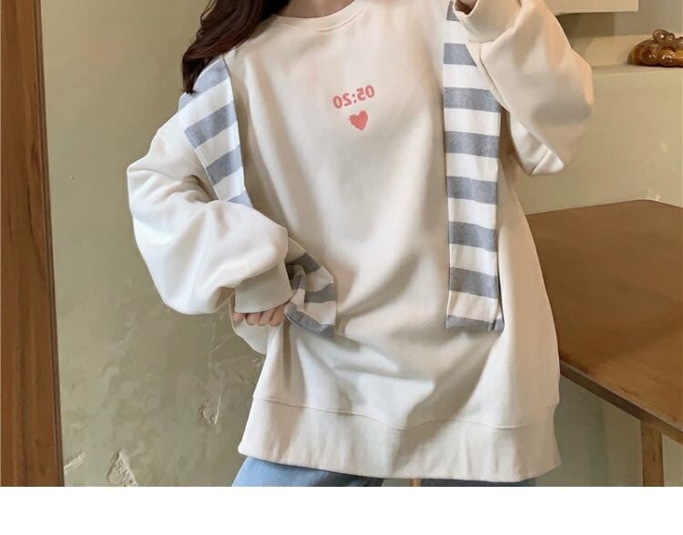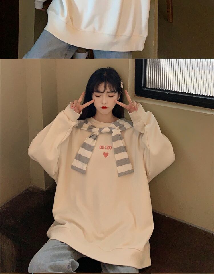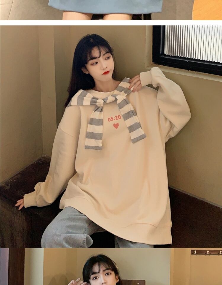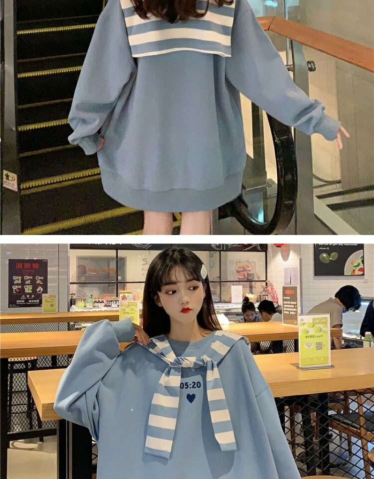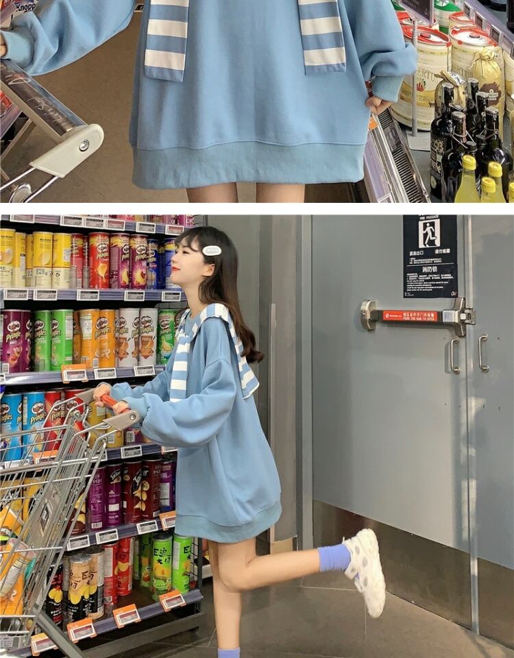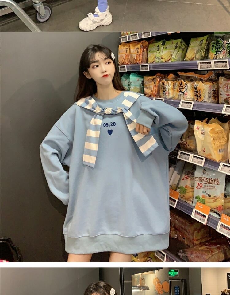 ストライププルオーバー セーター スプリングオータム薄手ルーズスタイルブラウス ロング 春物 秋物 萌量不足28226997756