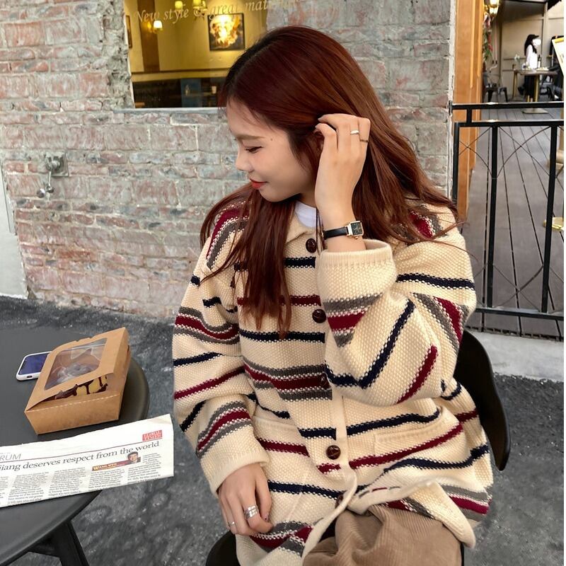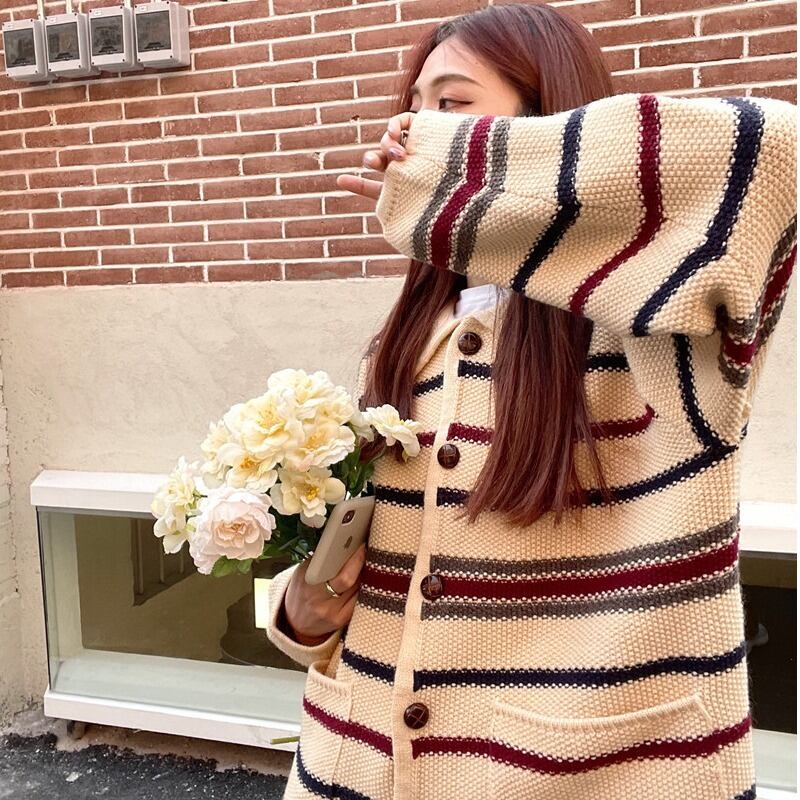 オータムウィンタースタイルストライプセーター コート レディースルーズニットカーディガントップス 秋物 冬物 萌量不足51226883102