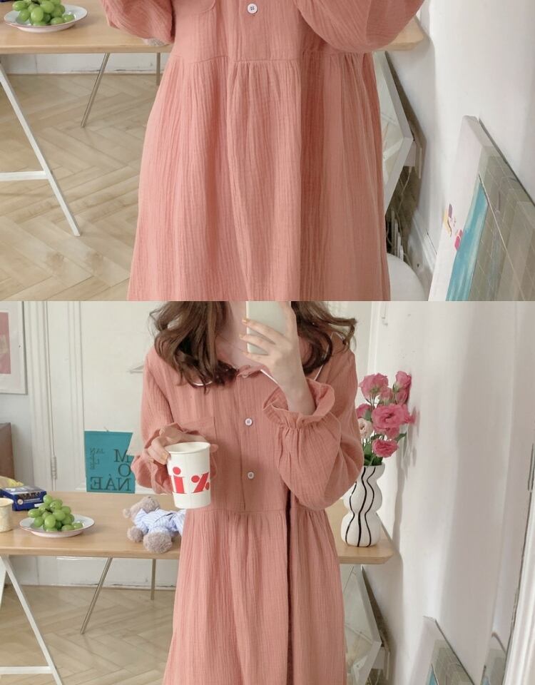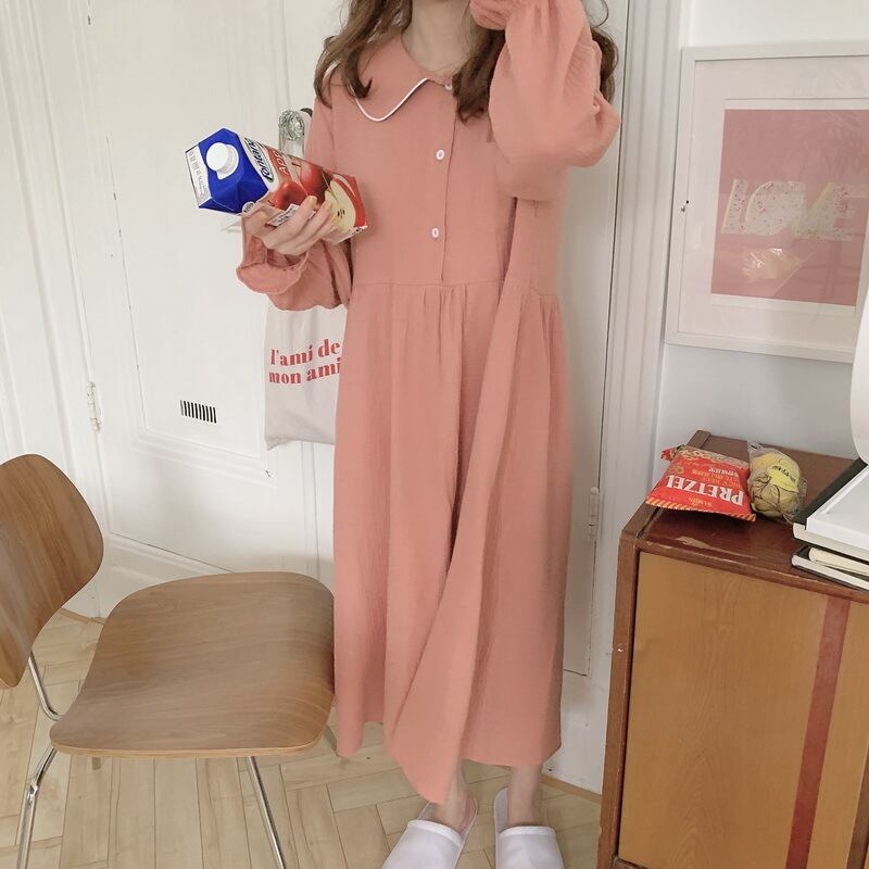 カラードレス ロングオータム コットン 大人ガーリー スウィート キュート カジュアル 秋物 萌量不足76207950579