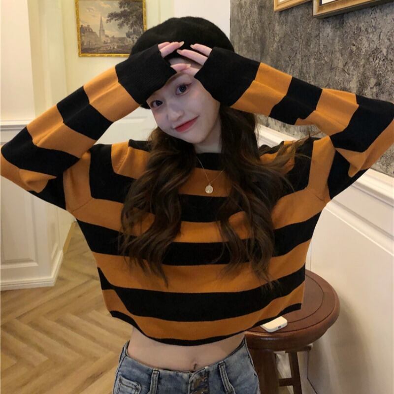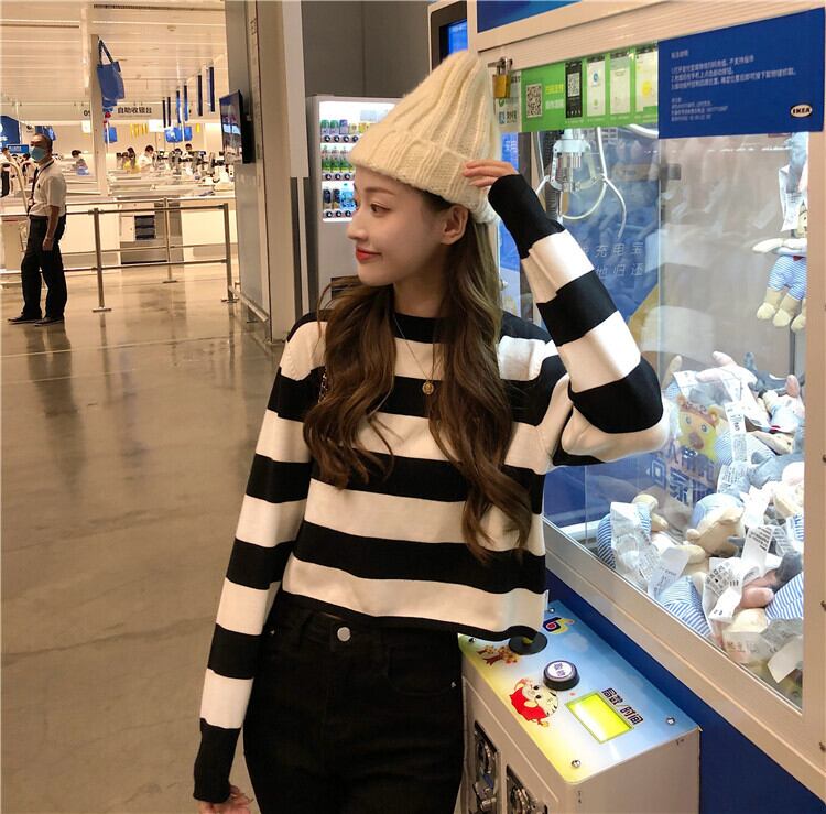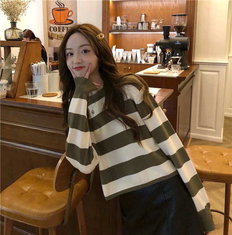スタイルスタンダードカラーセーター オータムルーズショートブラウス ロング レトロ 秋物 萌量不足71781433352