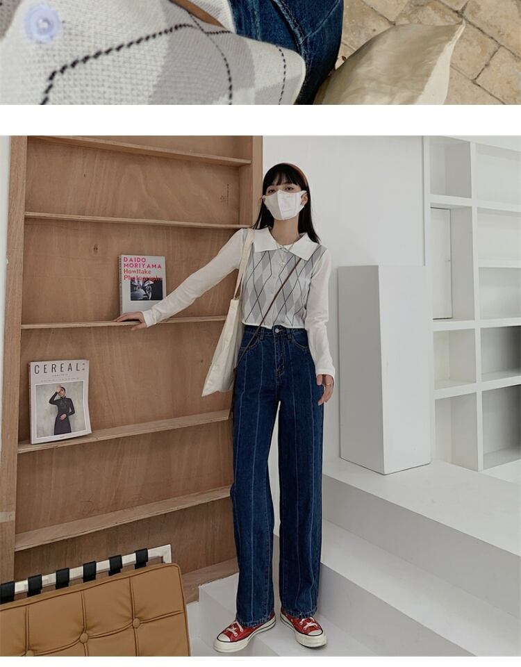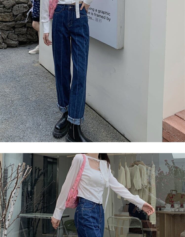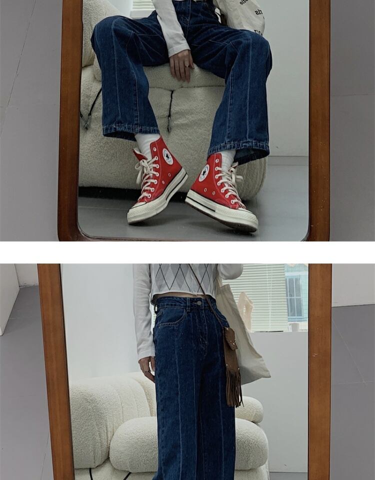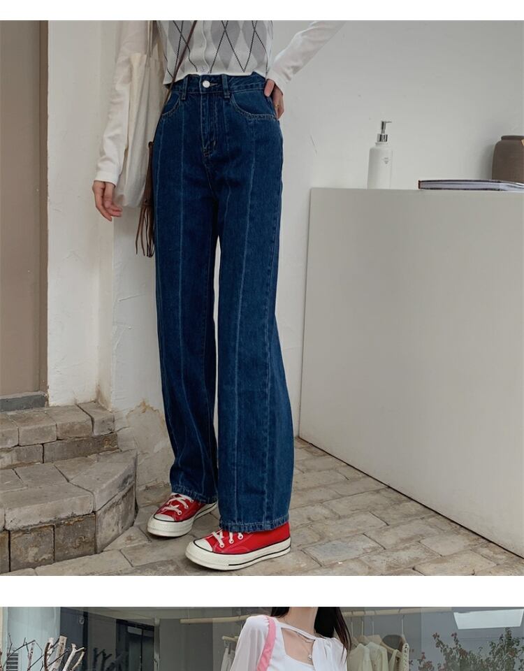 オータムカジュアルジーンズ ルーズ薄手パンツ レディース 秋物 ステッチ 萌量不足41617327011