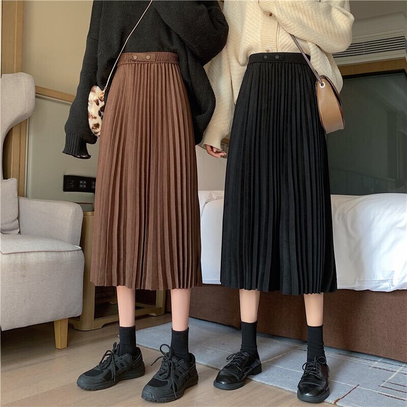 オータムウィンタースタンダードハイウェストプリーツスカート Aラインスプリング薄手 レトロ 春物 秋物 冬物 萌量不足47760445525