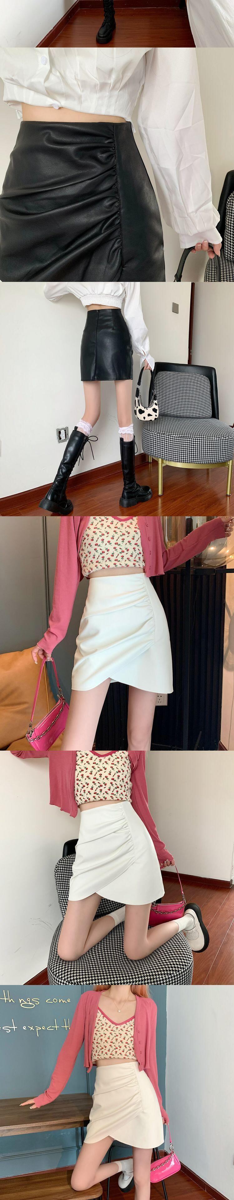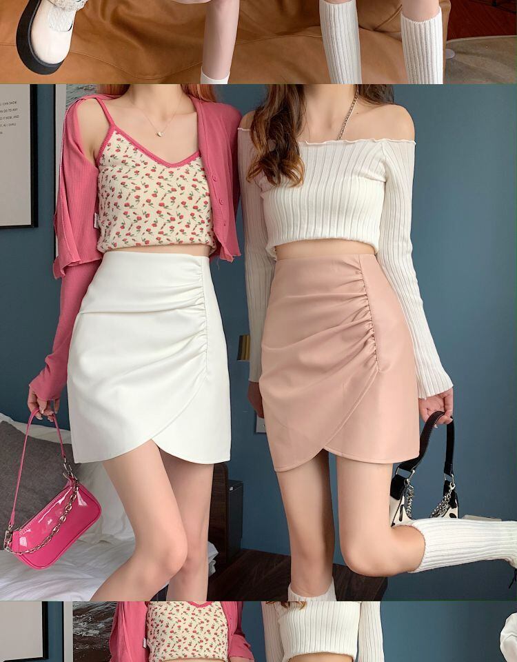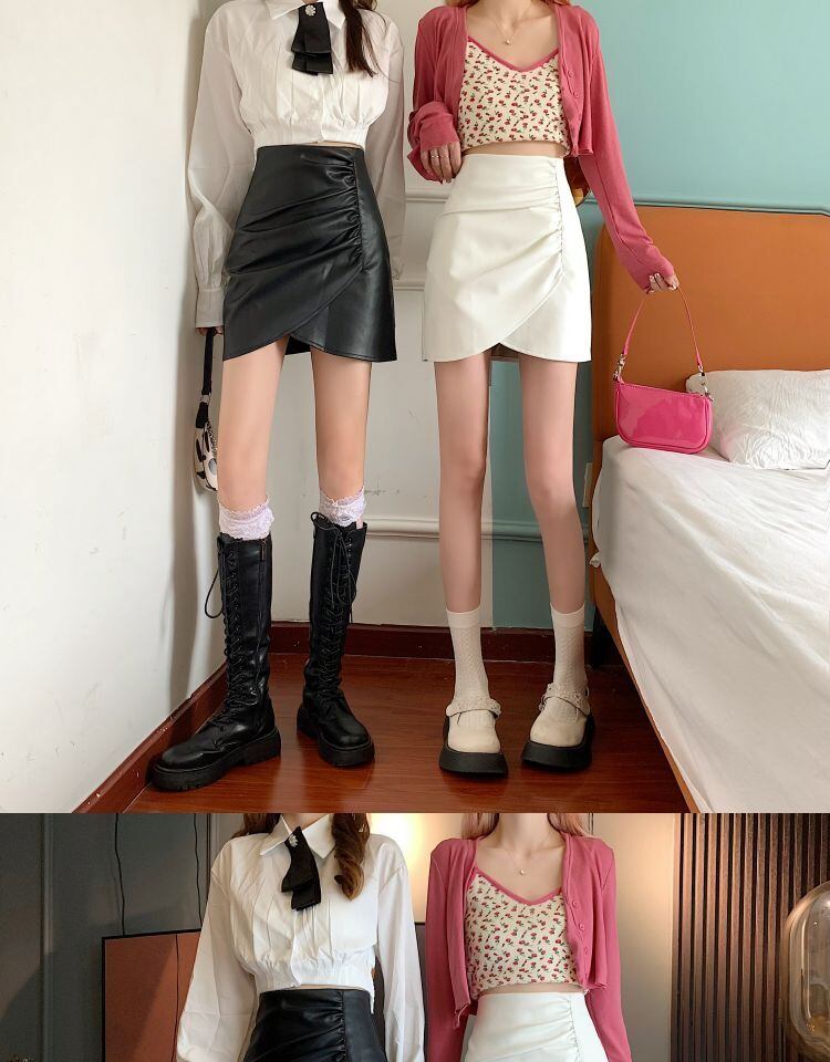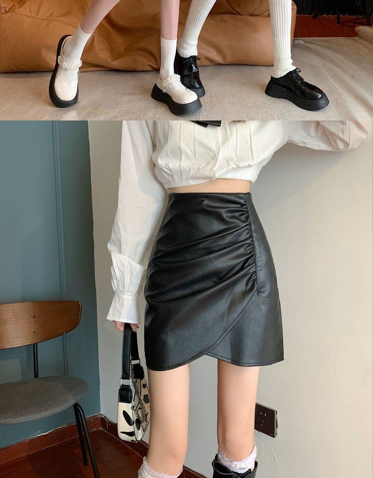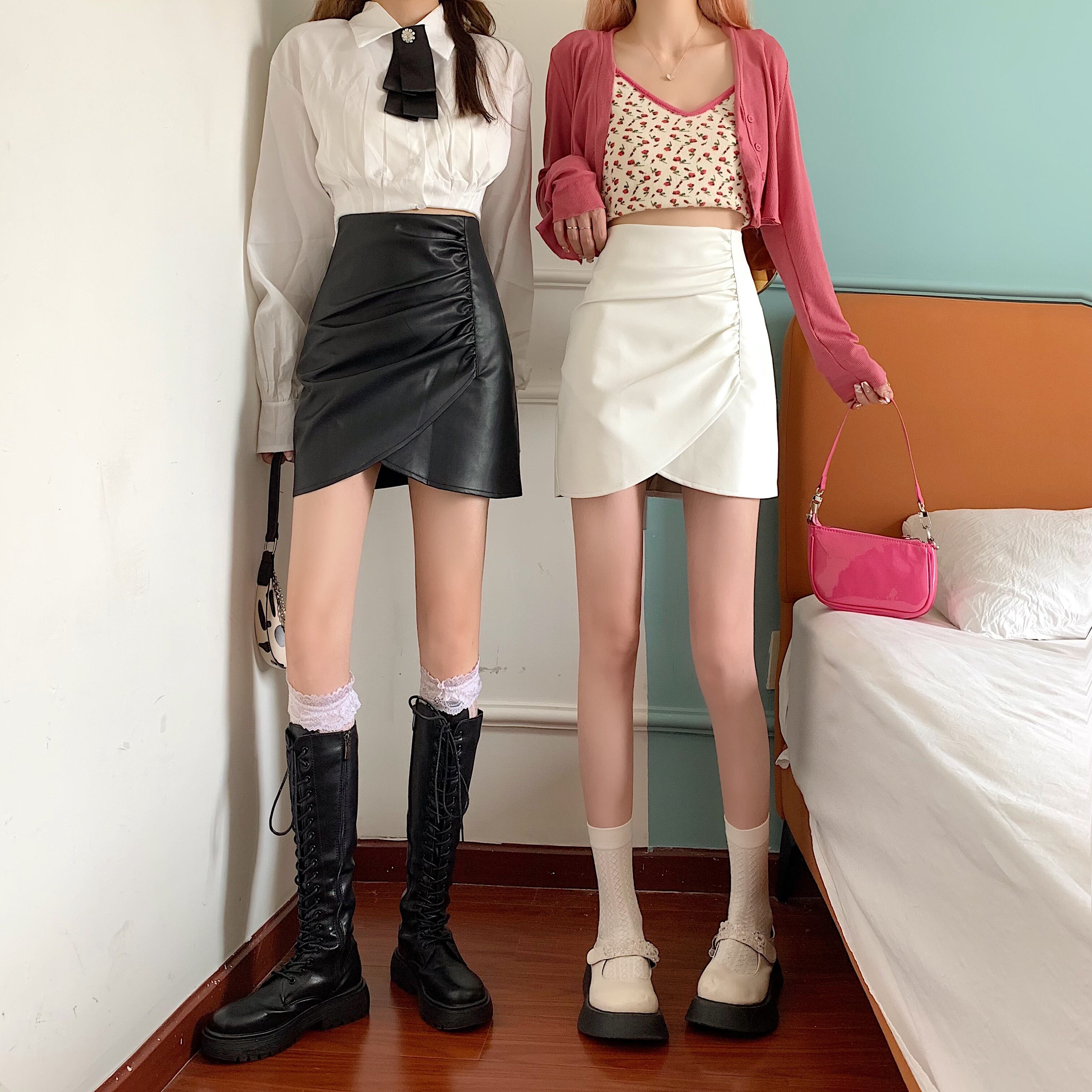 Aラインスカート ハイウェストスプリングオータムショートレザー 春物 秋物 萌量不足60067674455