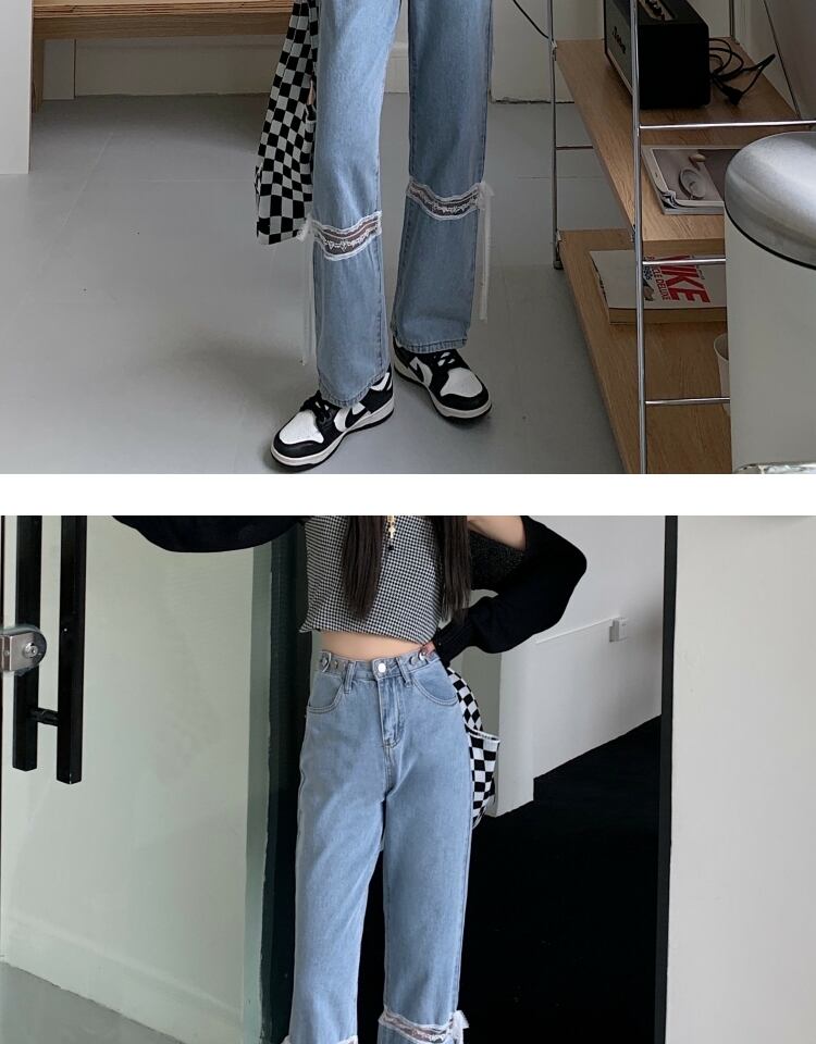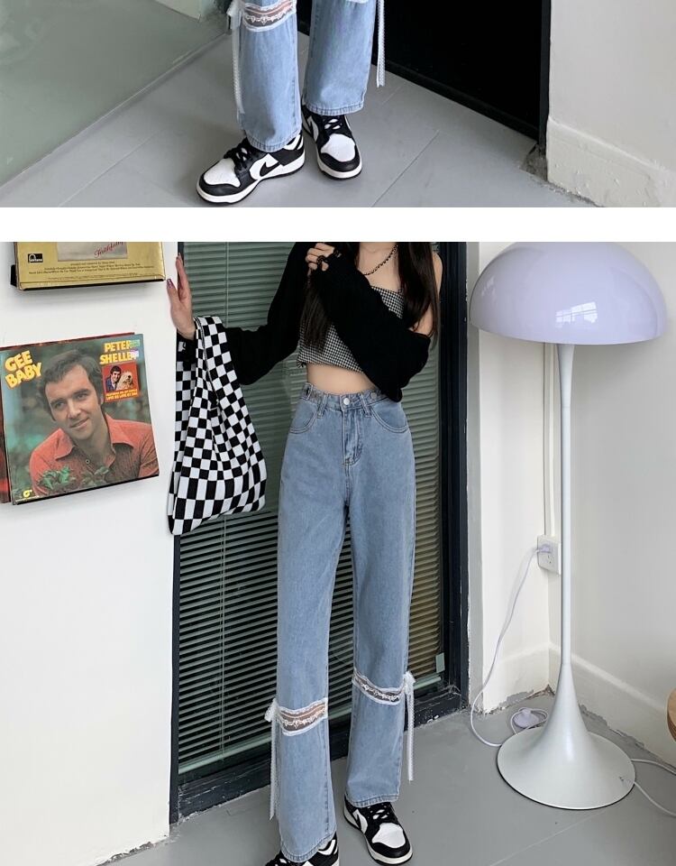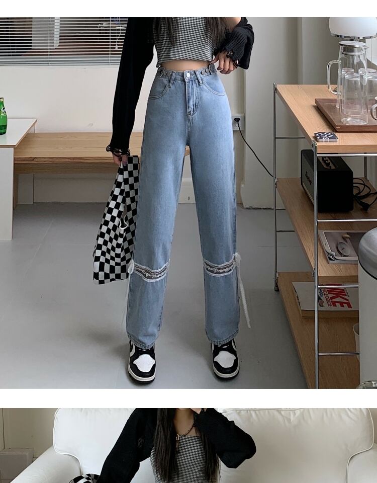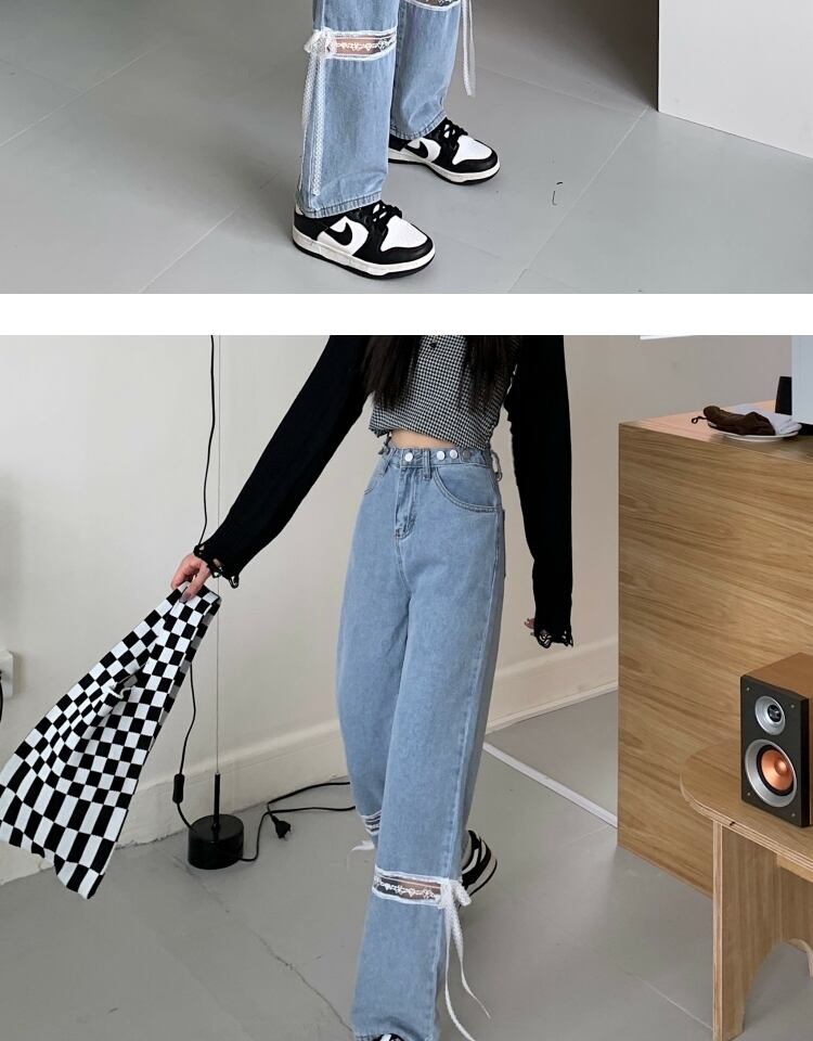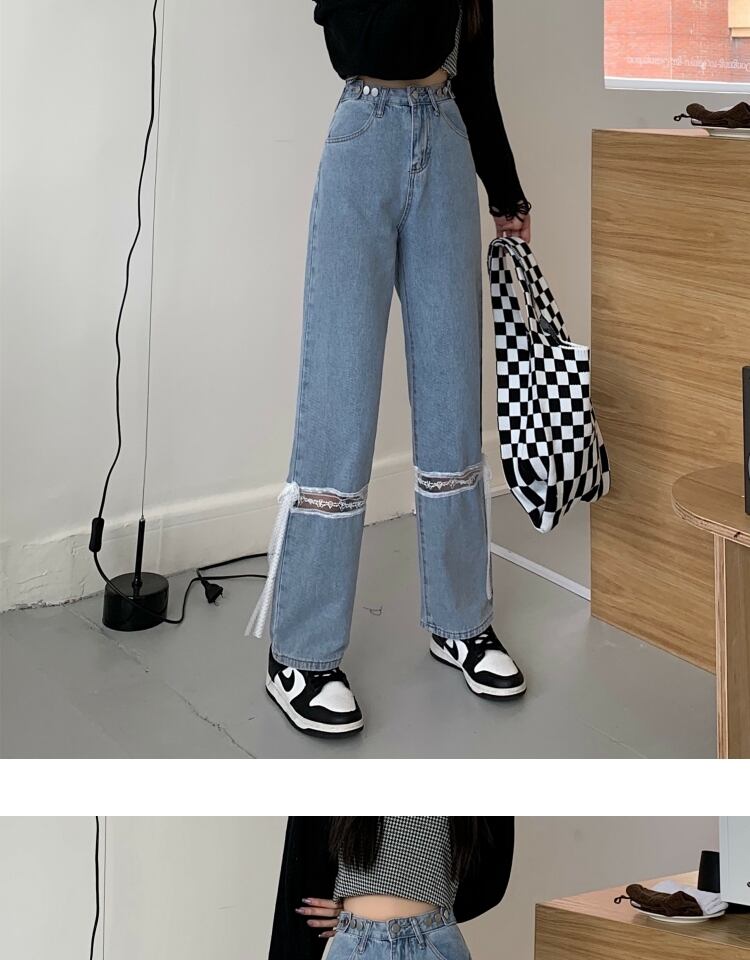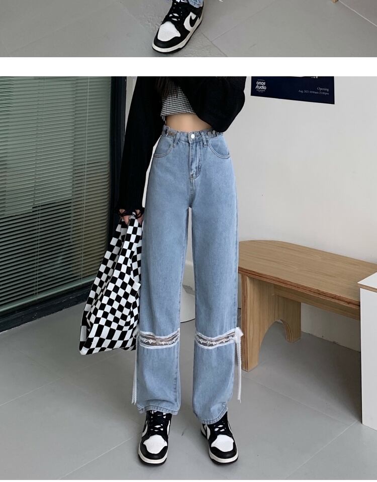 レースジーンズ オータムハイウェストウェストルーズパンツ 秋物 ステッチ 萌量不足43734250851