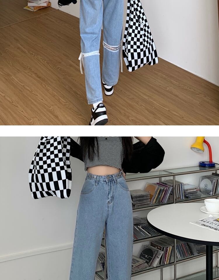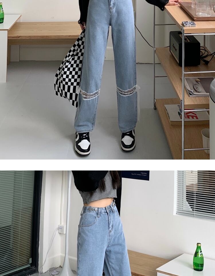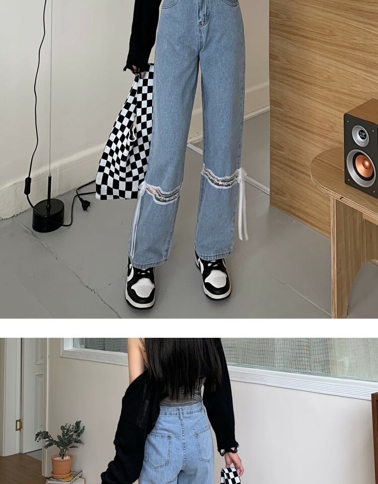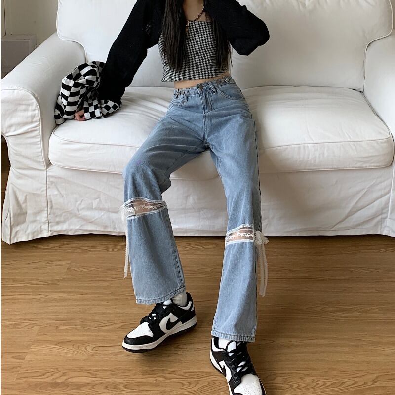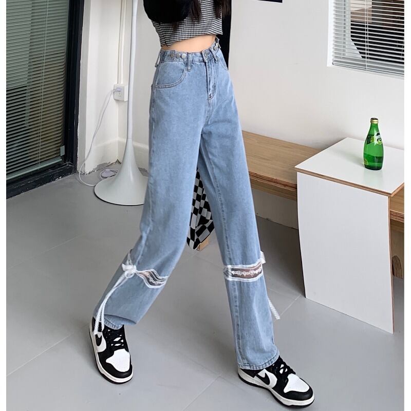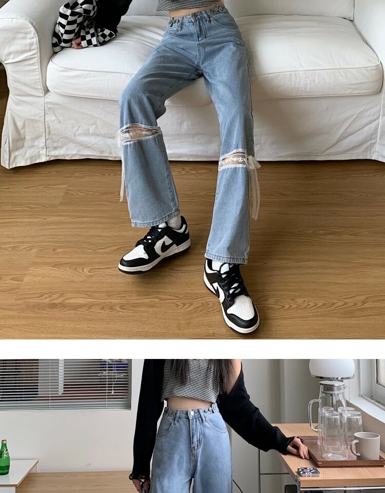 レースジーンズ オータムハイウェストウェストルーズパンツ 秋物 ステッチ 萌量不足43734250851