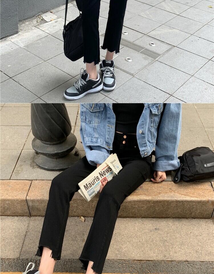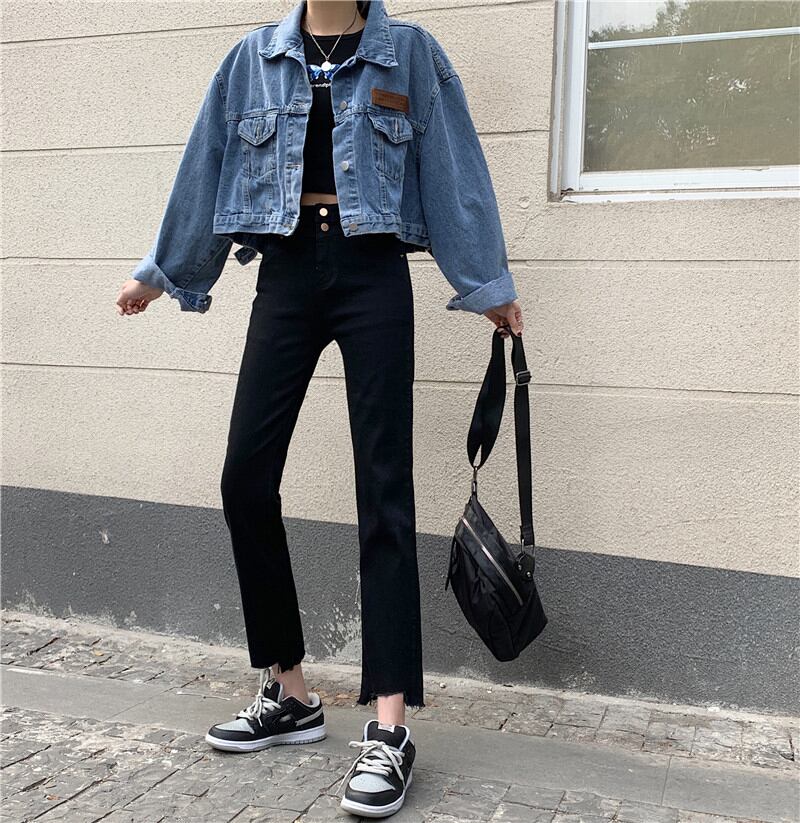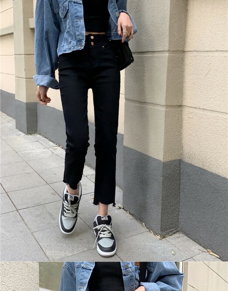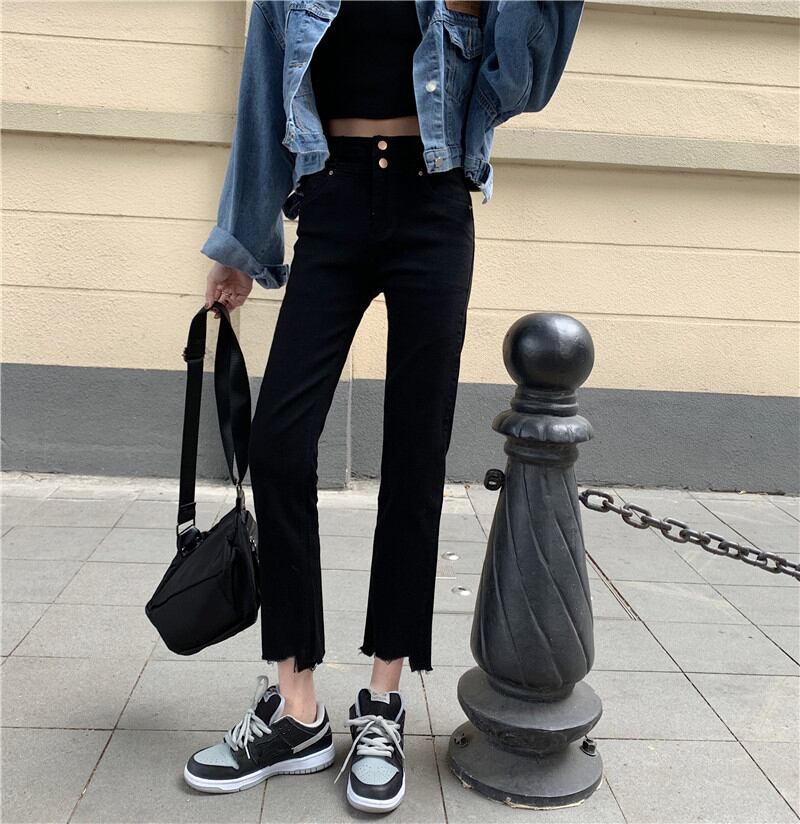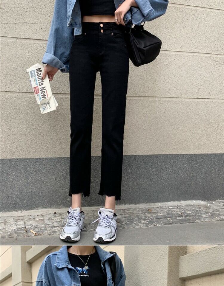 スプリングオータムスタンダードジーンズ ハイウェスト薄手ブラックパンツ レトロ 春物 秋物 萌量不足9393932745