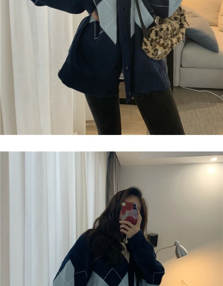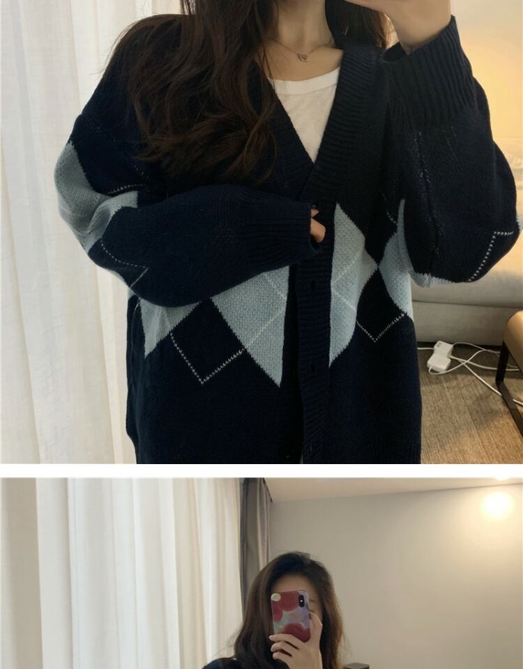 オータムウィンターニットセーター ルーズリブVネックカーディガンカジュアルジャケット 秋物 冬物 萌量不足5291496867