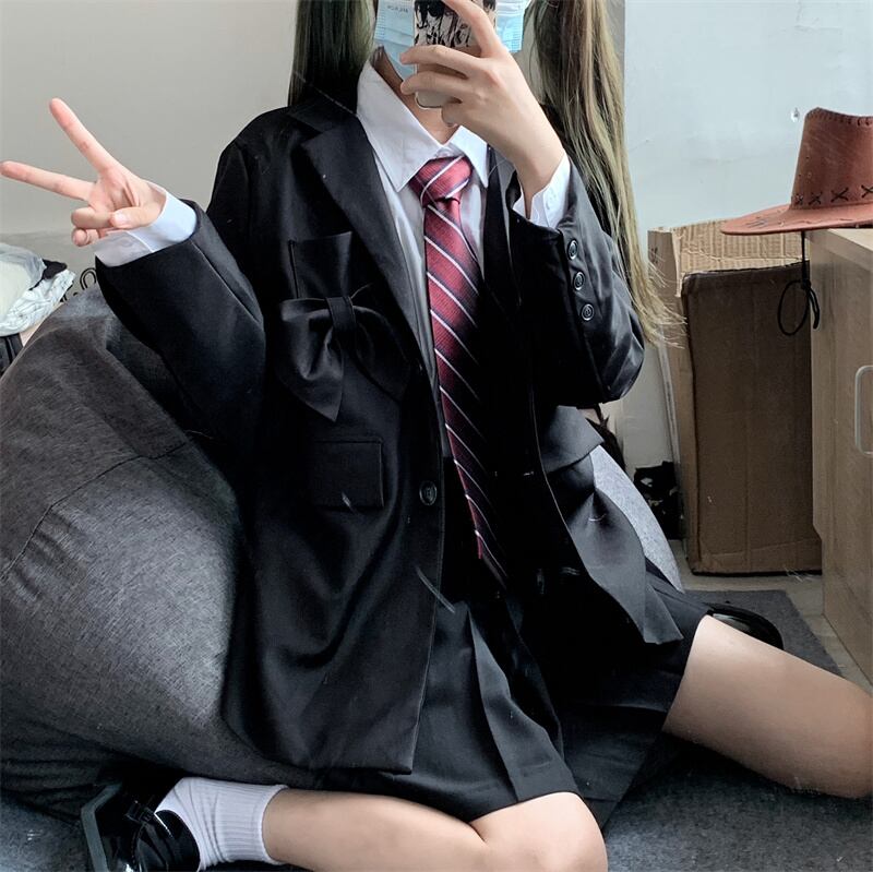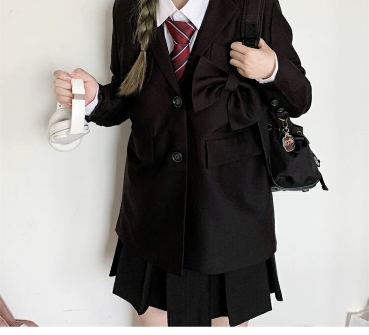 オータムジャケット スプリングカーディガンブラック リボン 春物 秋物 萌量不足70185806171