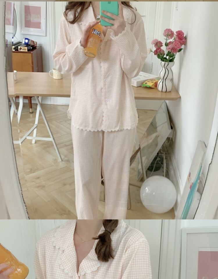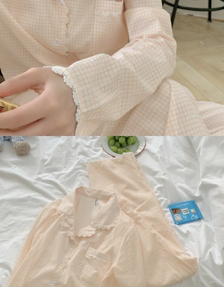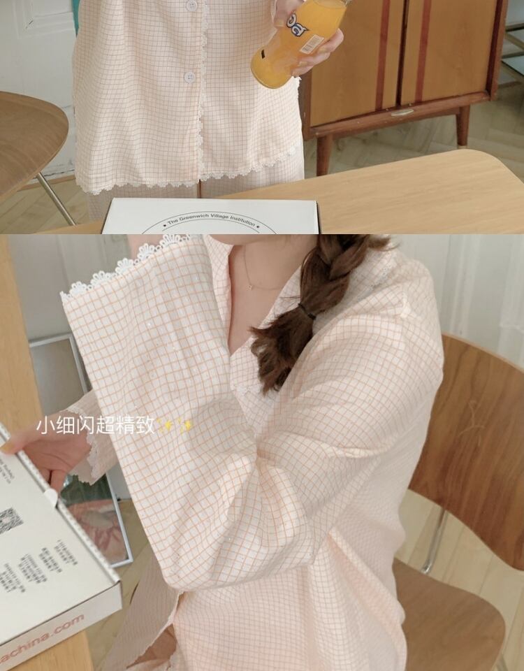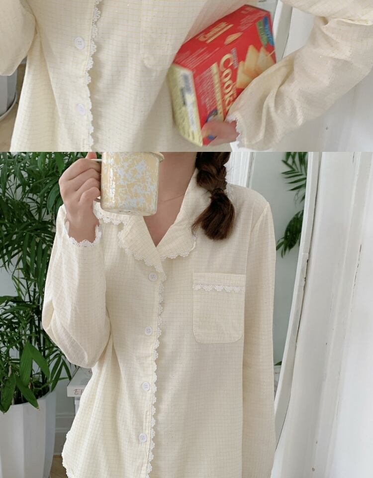 レースジャカード格子柄レディースオータム ロング コットン 秋物 萌量不足75476914890