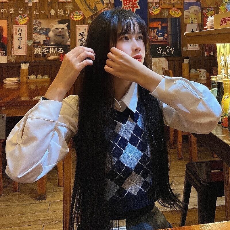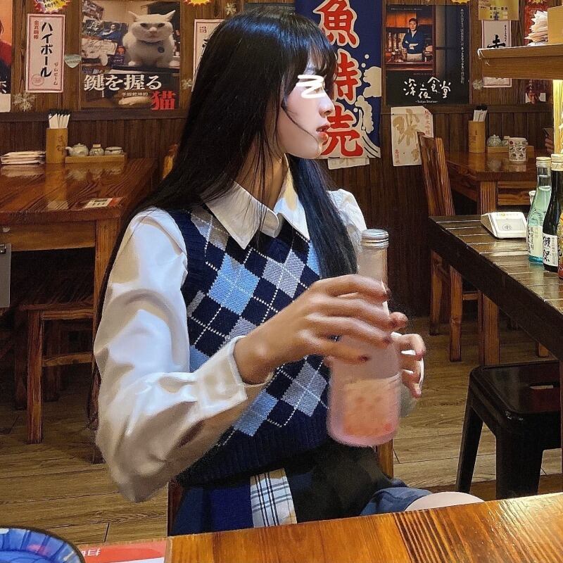 ショートニットオータムスタンダード格子柄セーター レッド レトロ 秋物 萌量不足3569091338