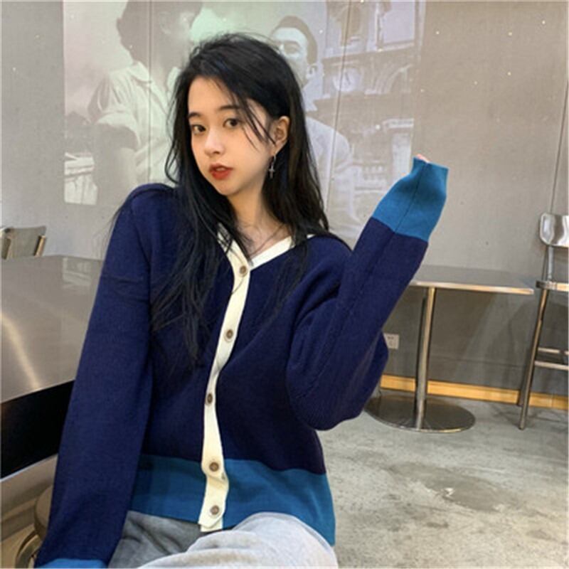 スプリングオータムスタイル薄手Vネックニットカーディガンジャケット レディースカジュアルセーター ロング 春物 秋物 萌量不足98182549669