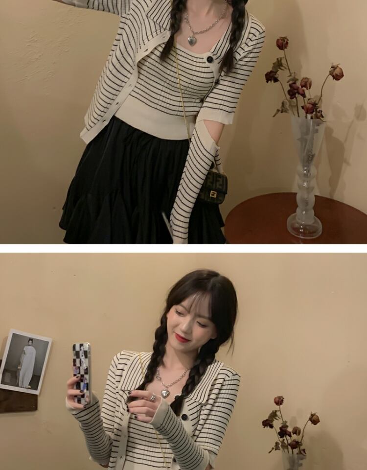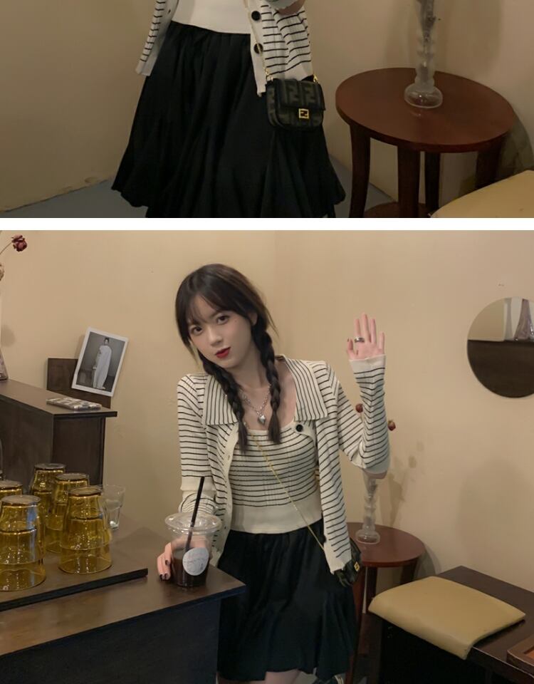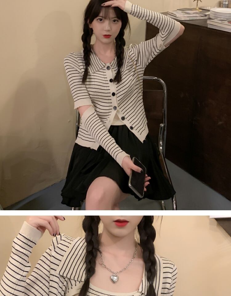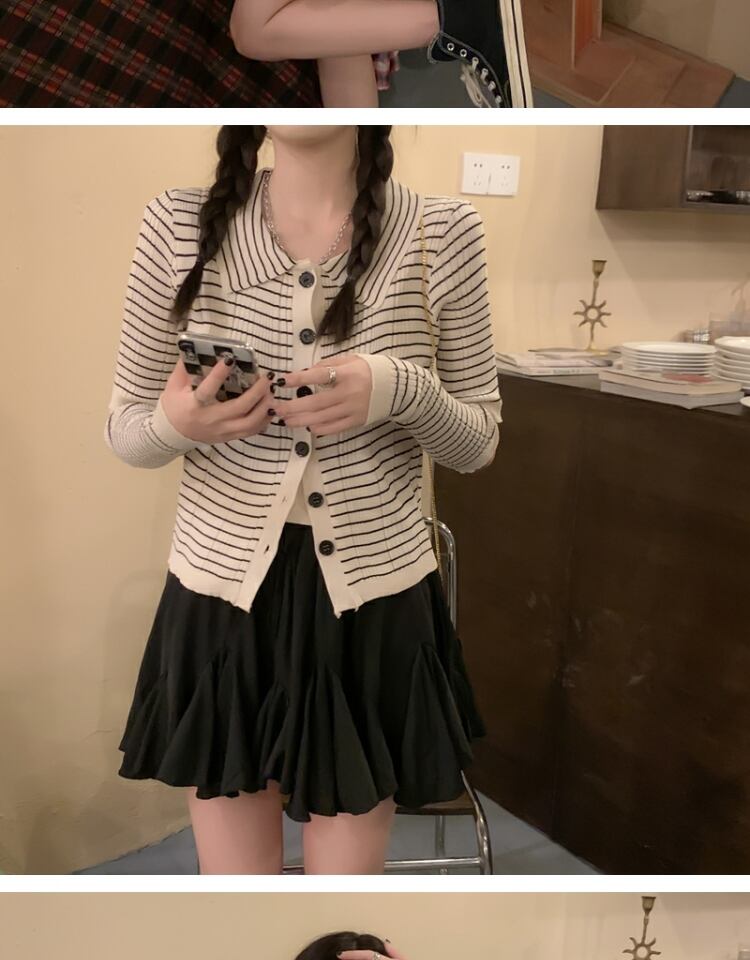 ストライプニットカーディガンジャケット オータムクロップドトップス ロング 大人ガーリー スウィート キュート カジュアル 秋物 萌量不足59028714127