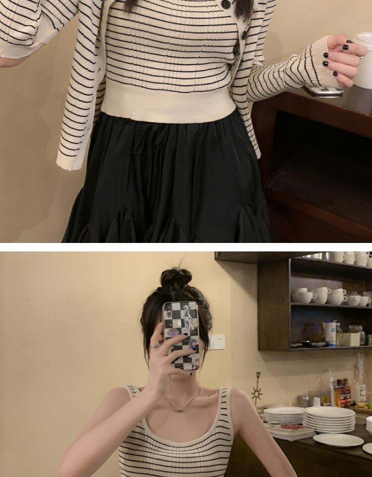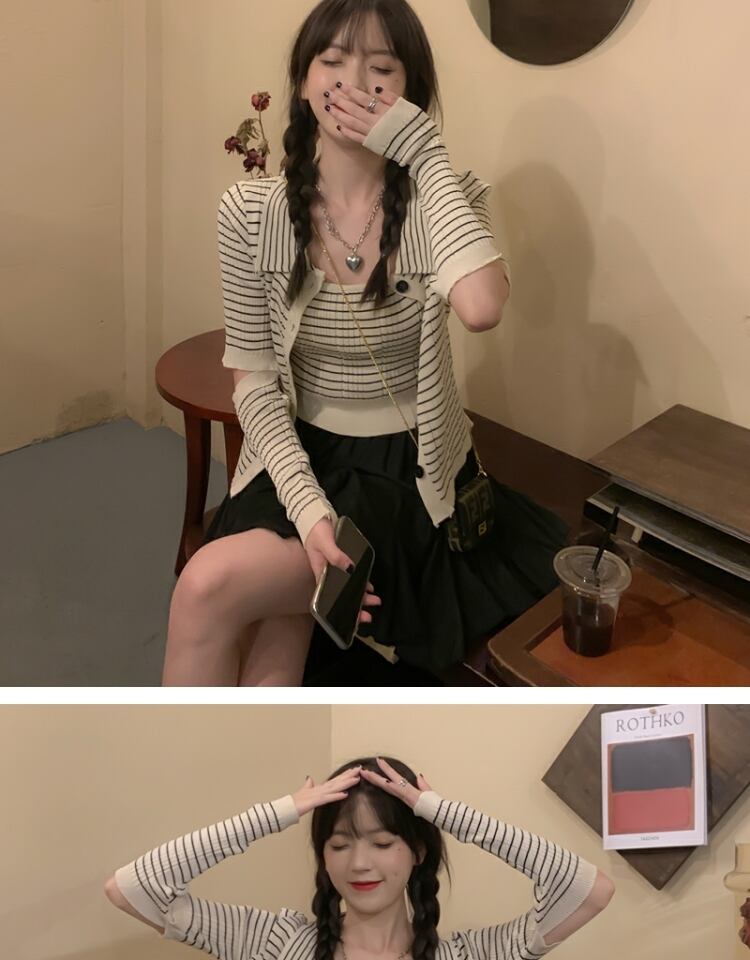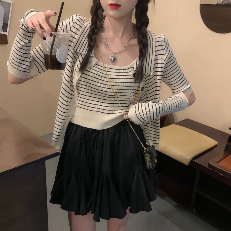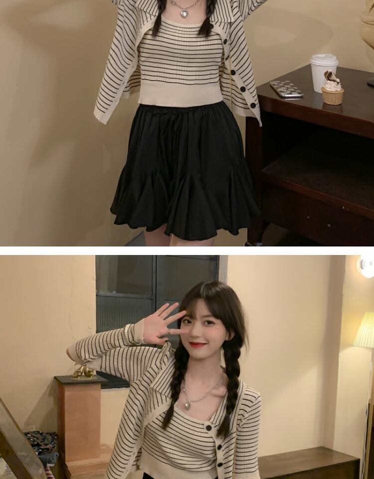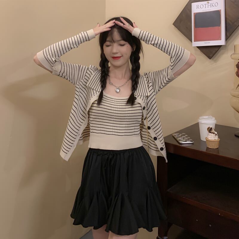 ストライプニットカーディガンジャケット オータムクロップドトップス ロング 大人ガーリー スウィート キュート カジュアル 秋物 萌量不足59028714127