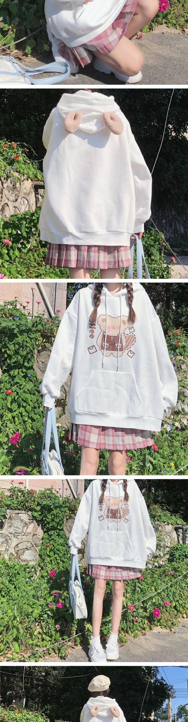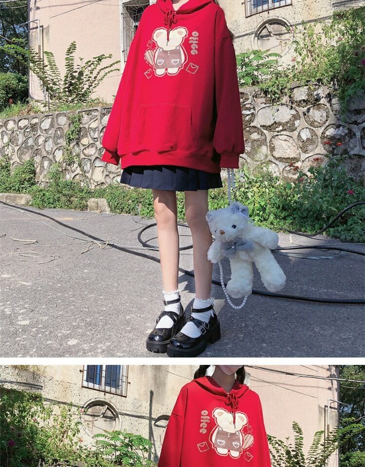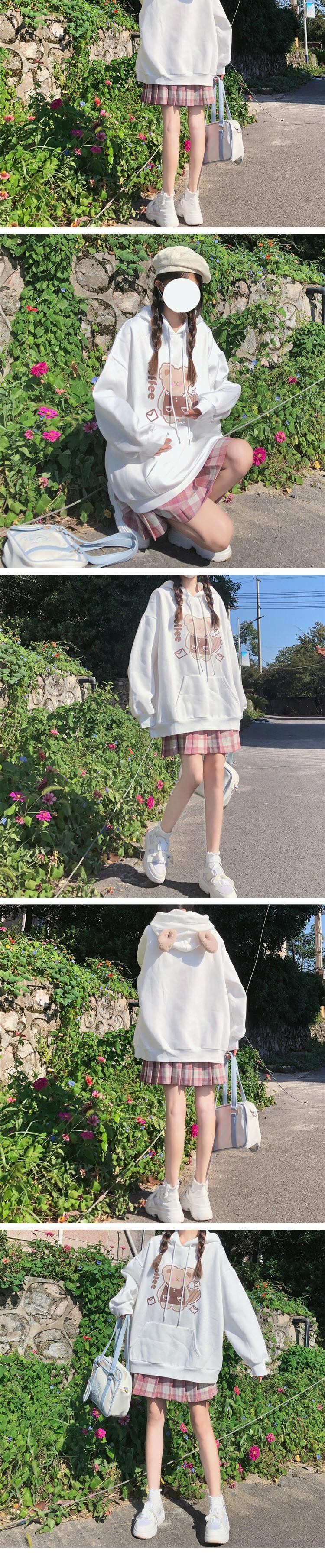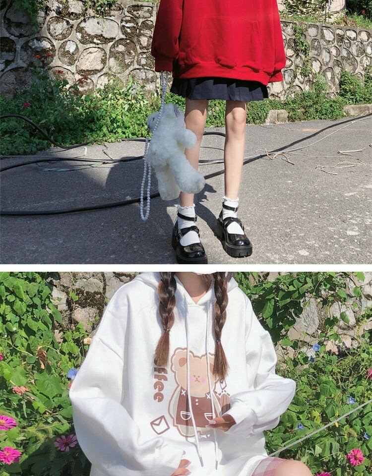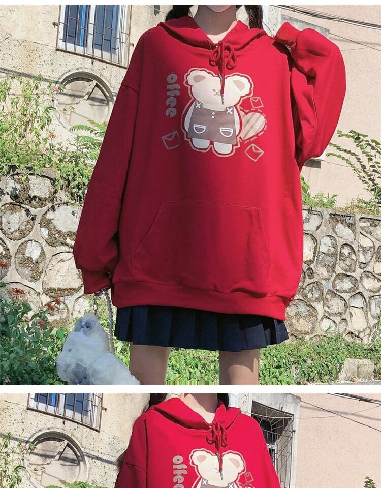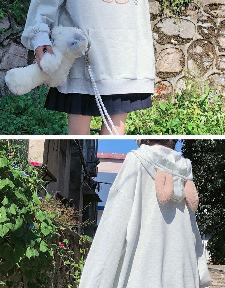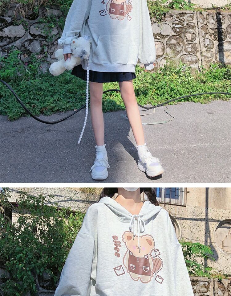 プリント柄フードプルオーバー セーター レディーススプリングオータムルーズブラウス 大人ガーリー スウィート キュート カジュアル 春物 秋物 萌量不足21931054814