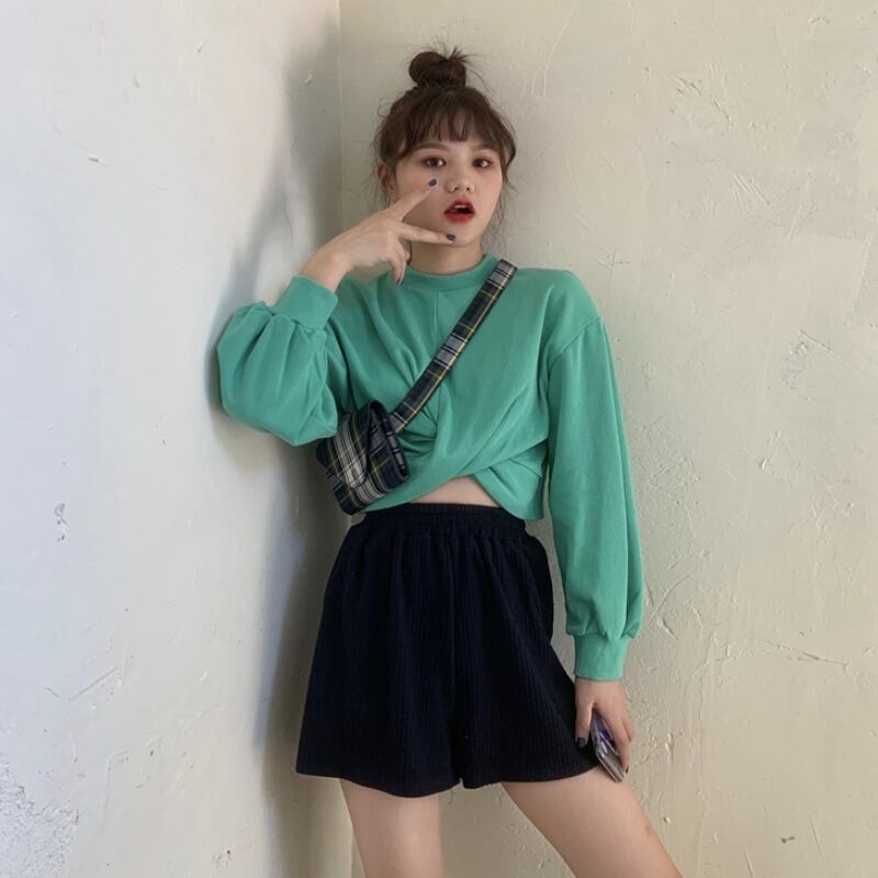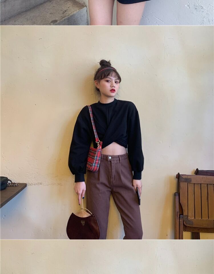 クロスショートクロップドセーター オータムスリムトップス ロング 秋物 萌量不足60413999927