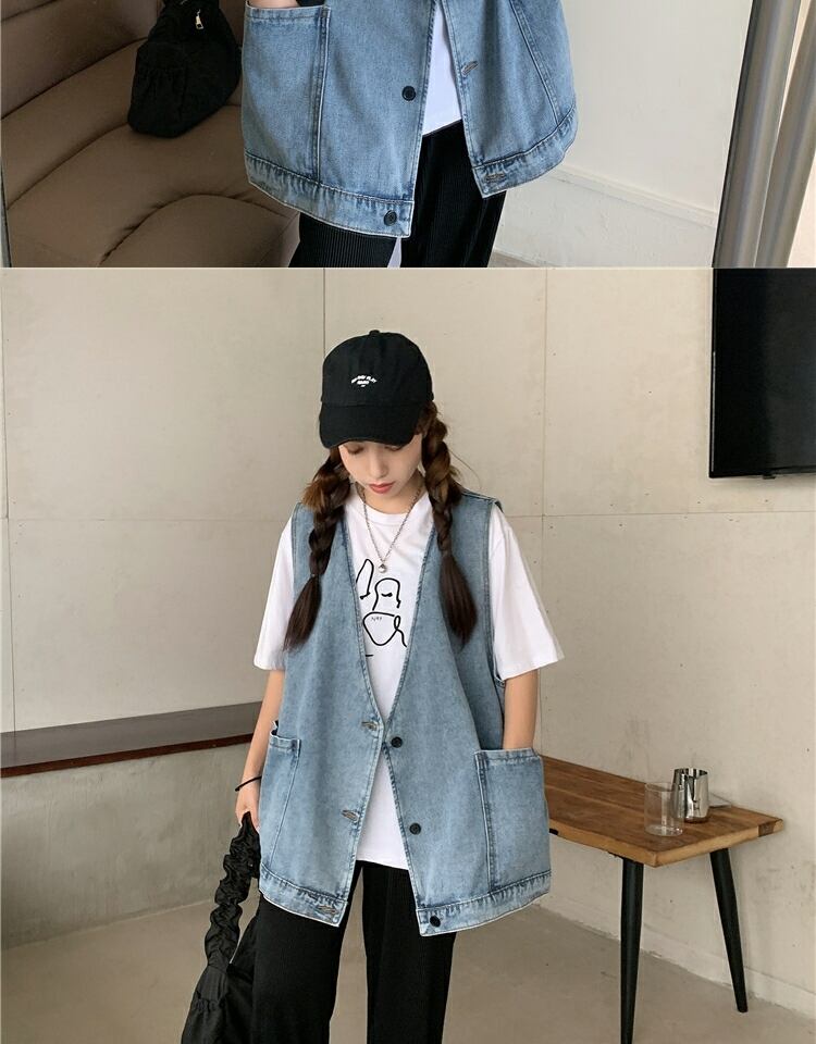 オータムカジュアルルーズノースリーブジャケット 秋物 萌量不足59914051076