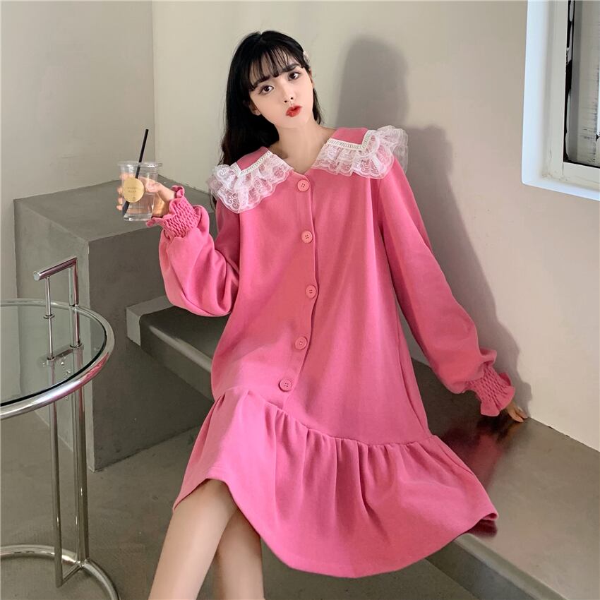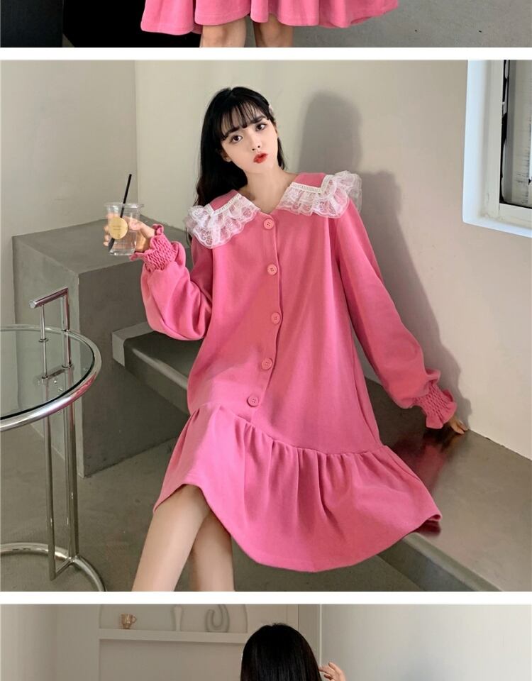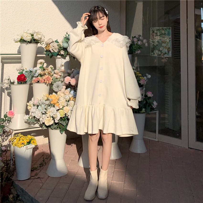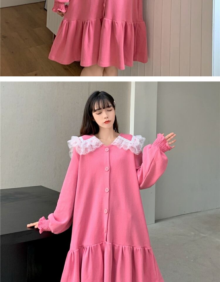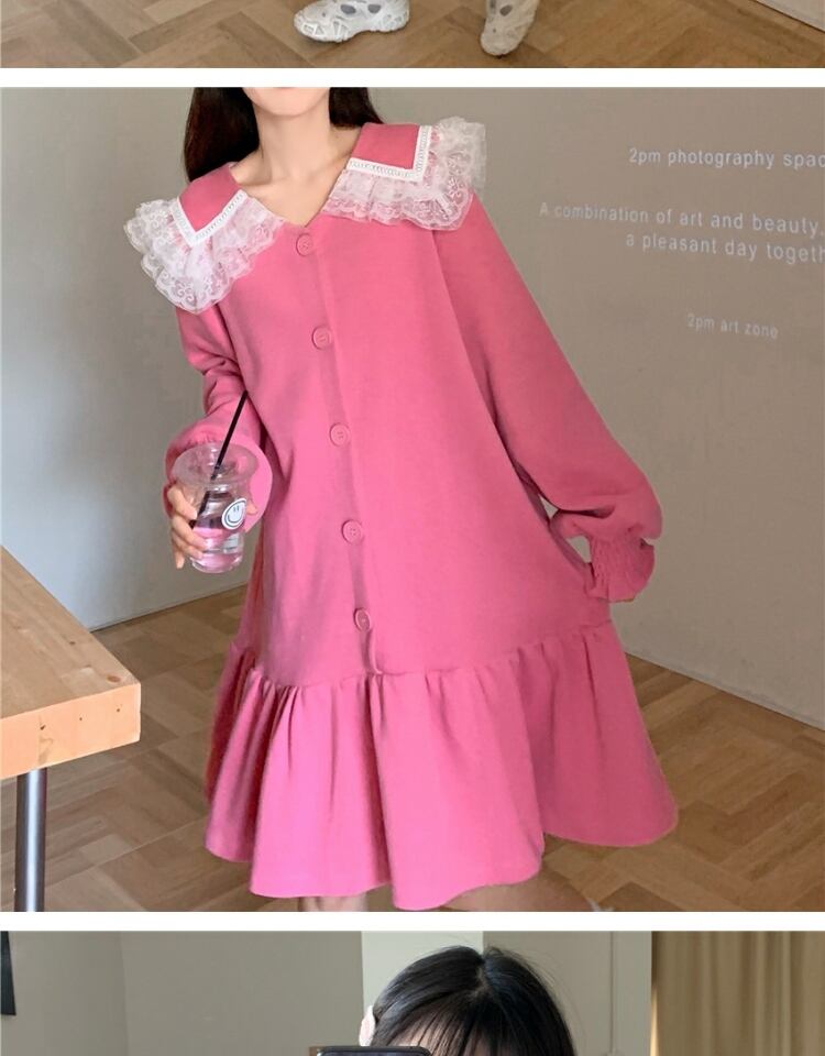 レースカラースカート ドレス オータムスタイル ロング 大人ガーリー スウィート キュート カジュアル 秋物 萌量不足53549667906