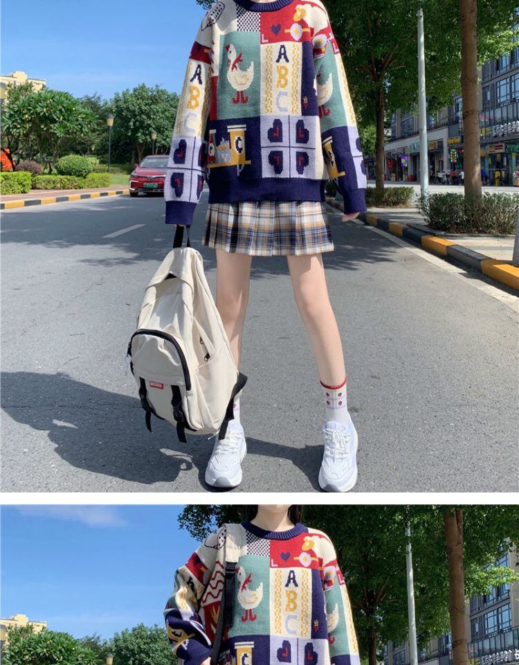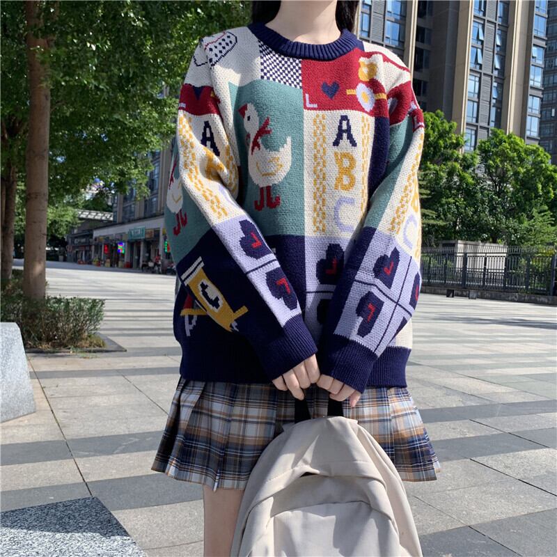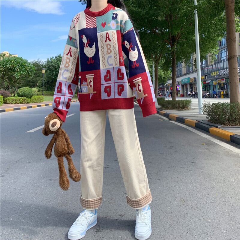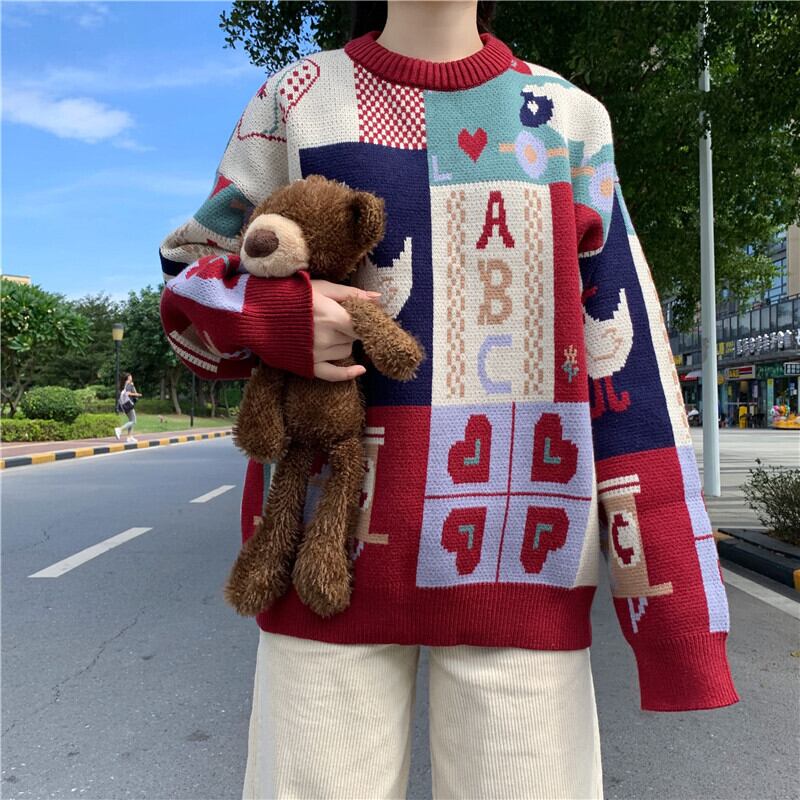 スタンダードヴィンテージプルオーバー セーター レディースルーズブラウス レトロ ウィンター 冬物 ビンテージ 萌量不足537873696