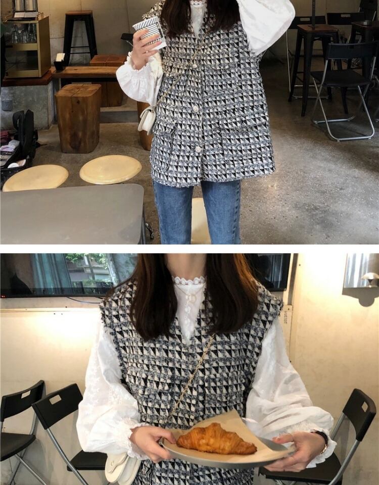 スプリングオータムスタイル格子柄トップス レディース 春物 秋物 萌量不足74608015882