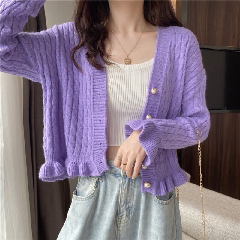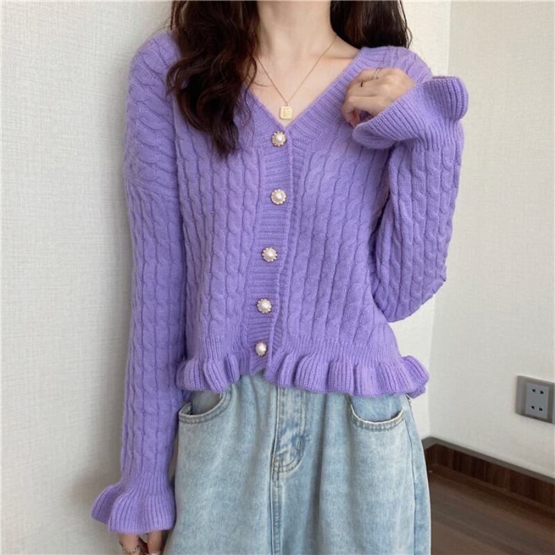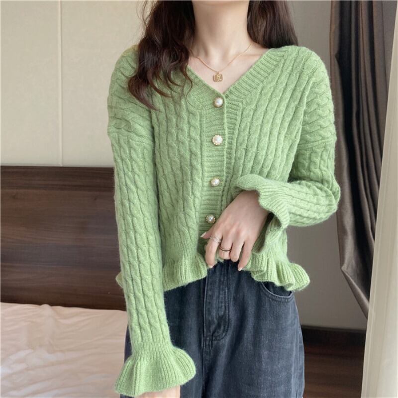 Vネックルーズセーター カーディガンジャケット ニットオータムトップス ロング 秋物 萌量不足45892187946