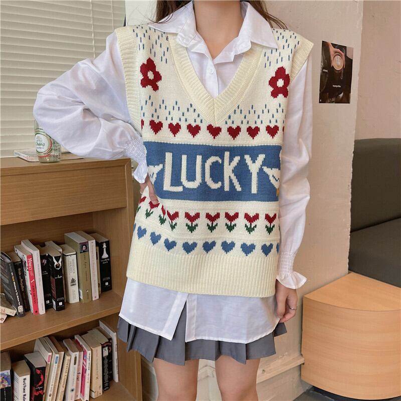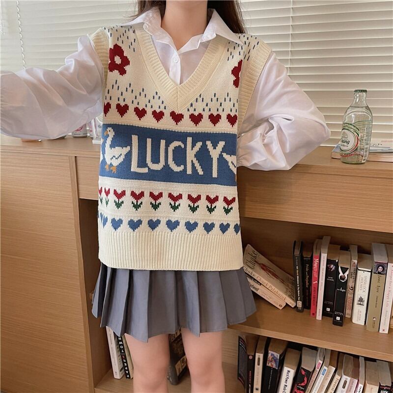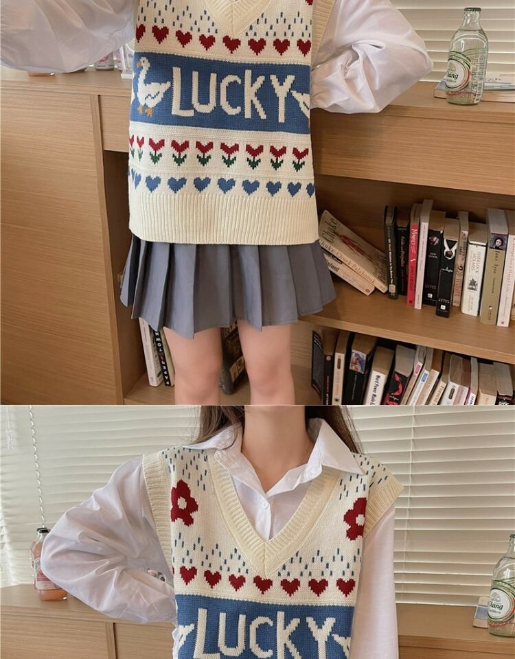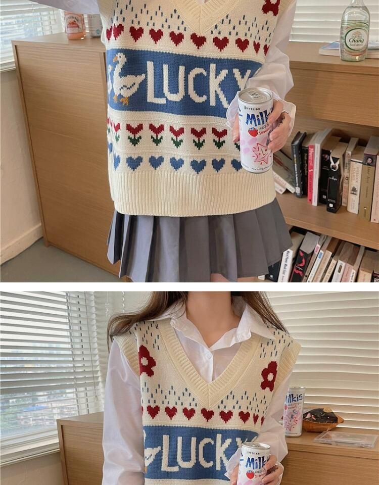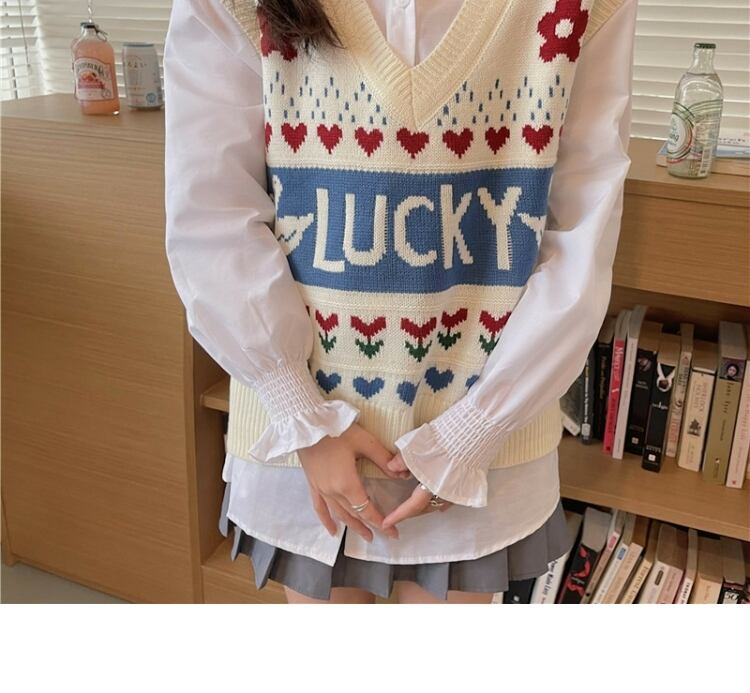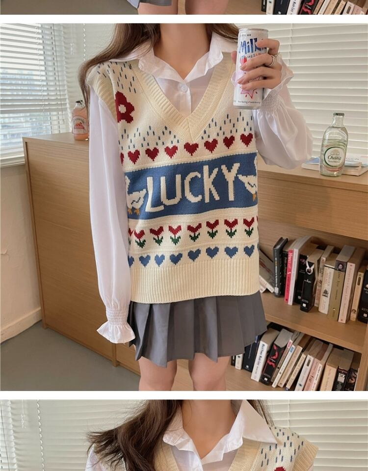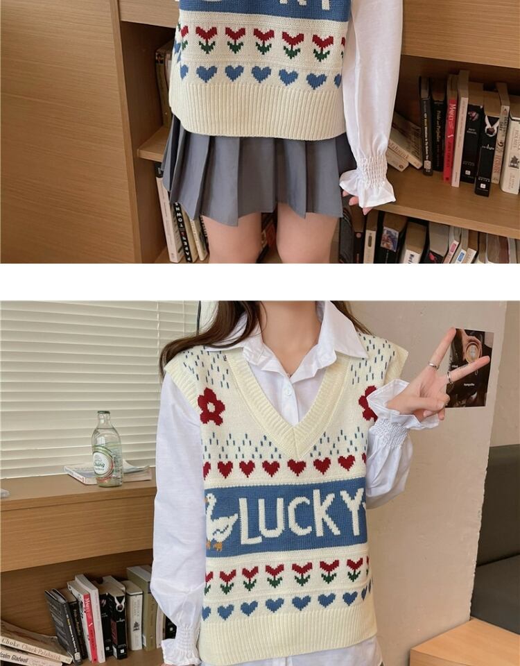 スタイルジャカードVネックセーター スプリングオータムノースリーブトップス 大人ガーリー スウィート キュート カジュアル 春物 秋物 萌量不足43971328631