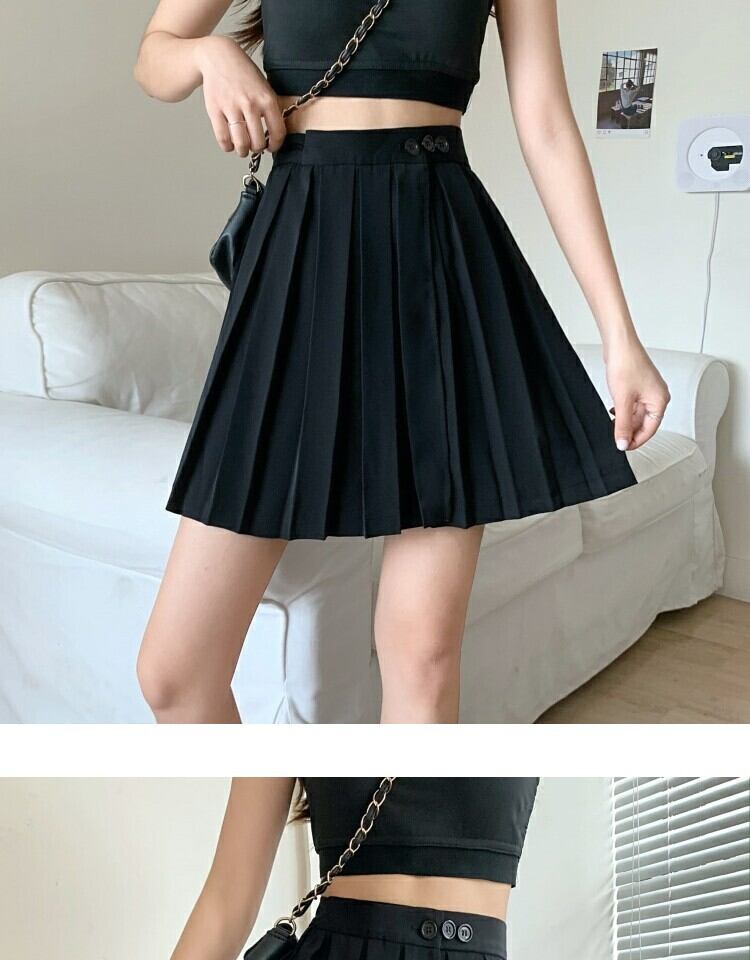 ブラックスカート サマースタイルハイウェストウェストプリーツレッドショートAライン 夏物 萌量不足76964445607
