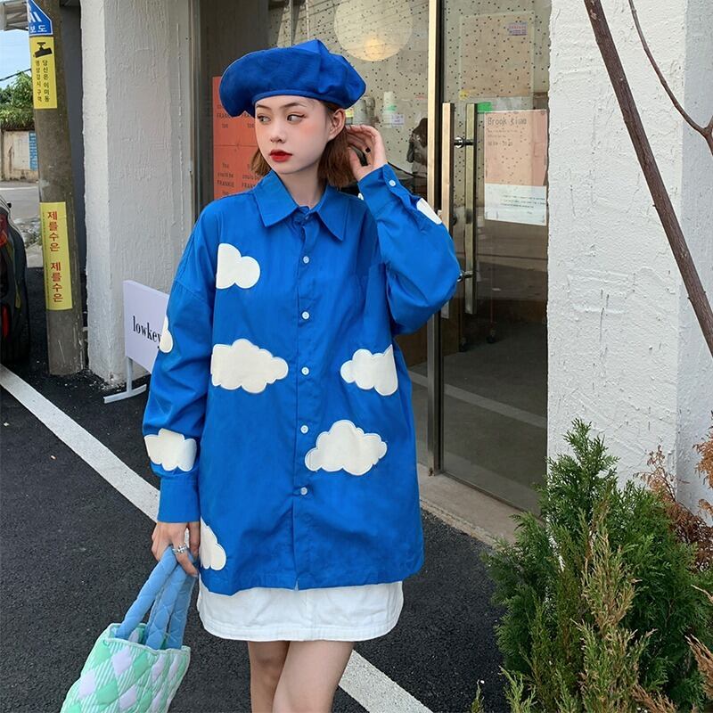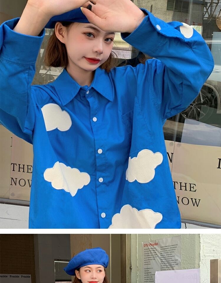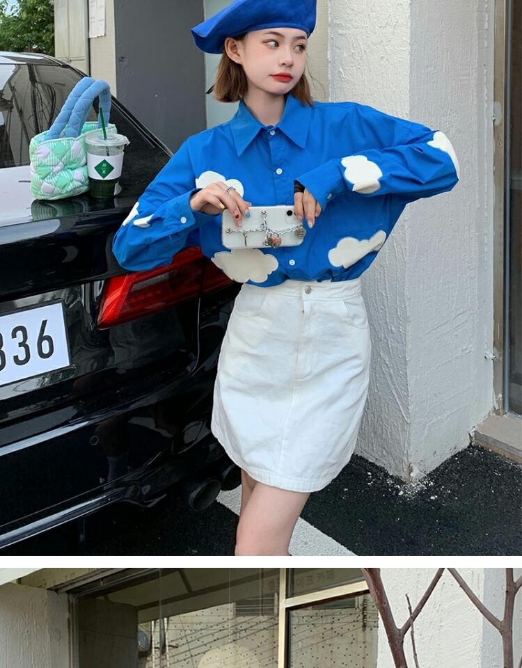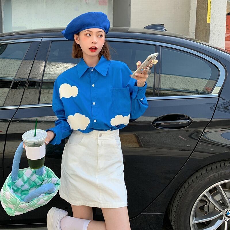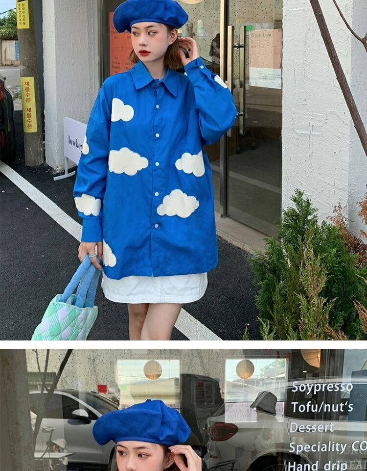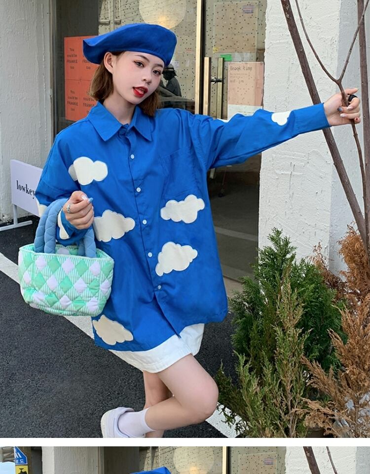 オータムルーズプリントシャツ ロング 秋物 萌量不足45749146843