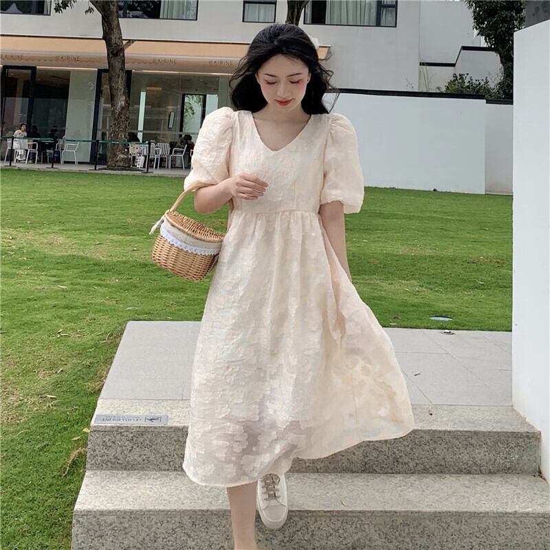 ハイウェストウェストスカート Vネック半袖スリーブドレス サマー ショート ハーフスリーブ 大人ガーリー スウィート キュート カジュアル 夏物 萌量不足63159399425
