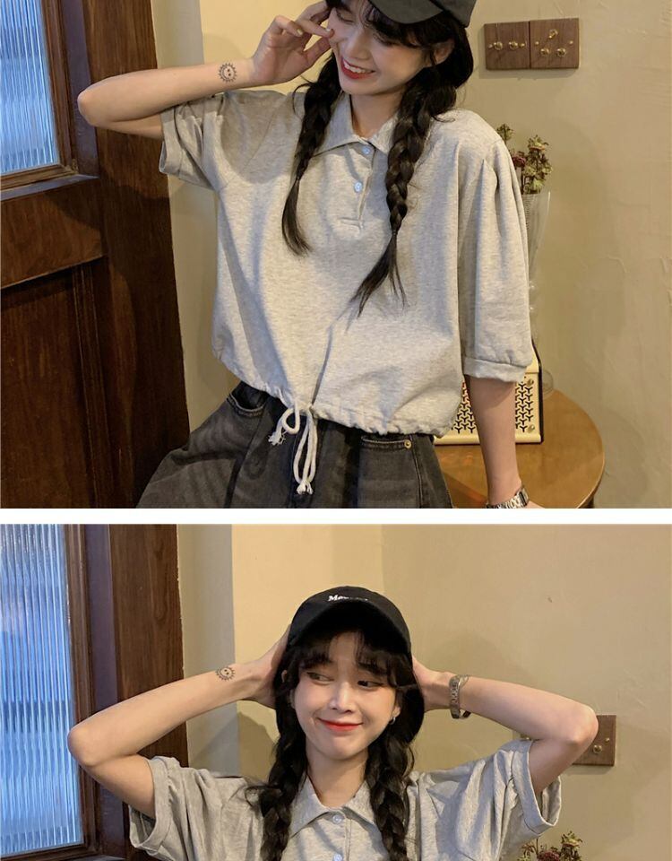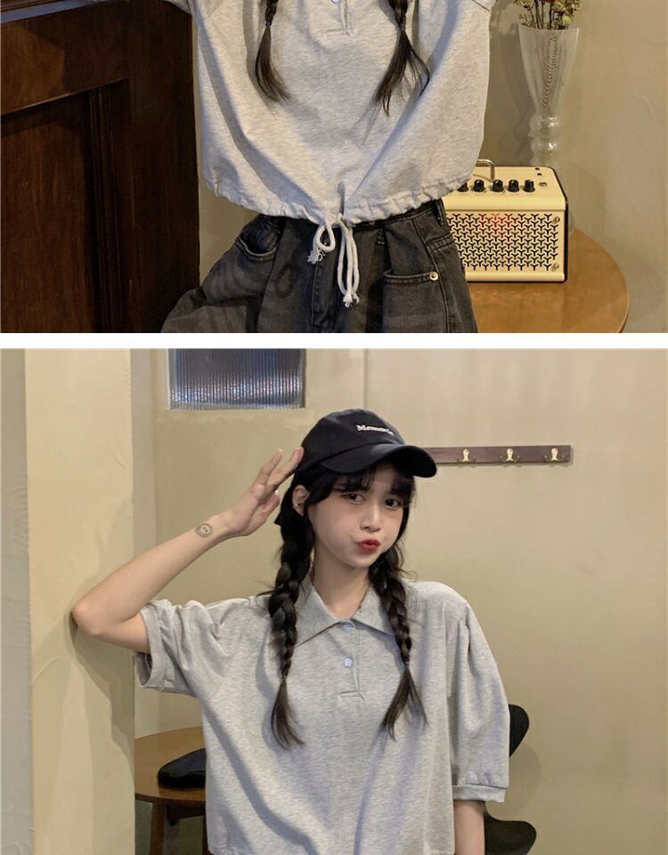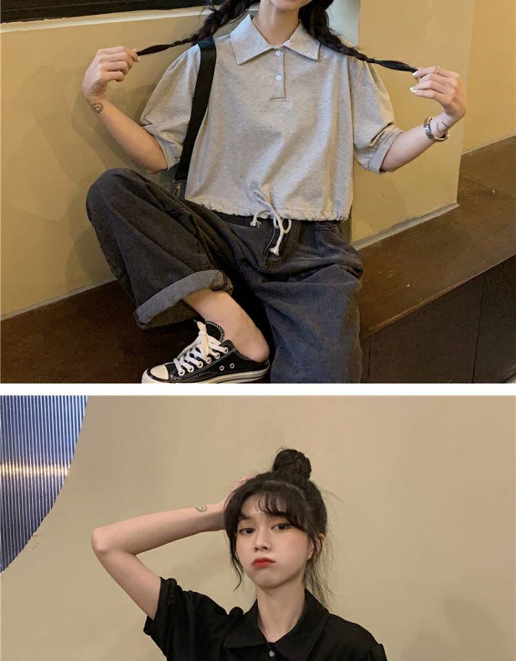 スタンダードソリッド カラーショートTシャツ シャツ レディースサマードレス レトロ 夏物 ソリッドカラー 萌量不足39786906567