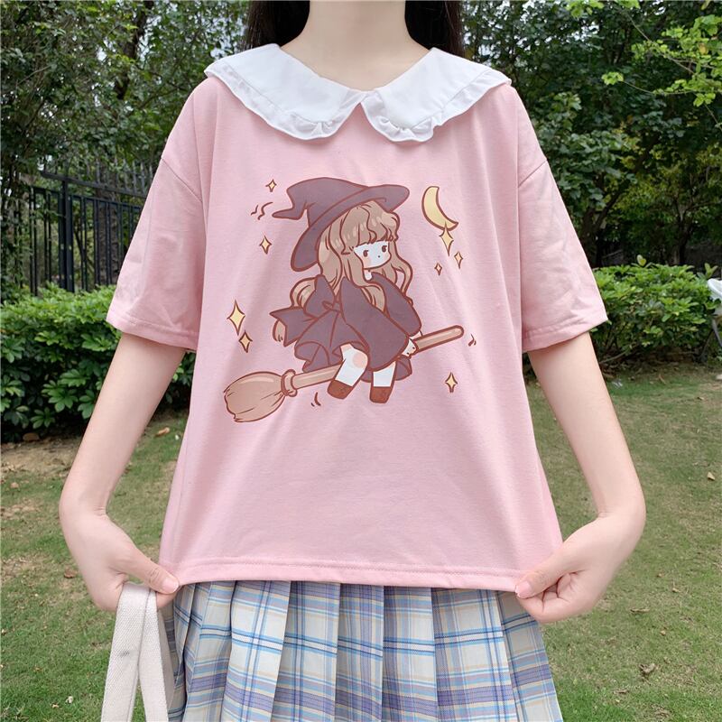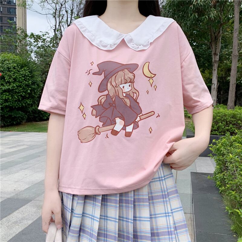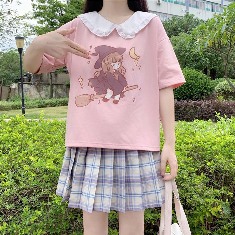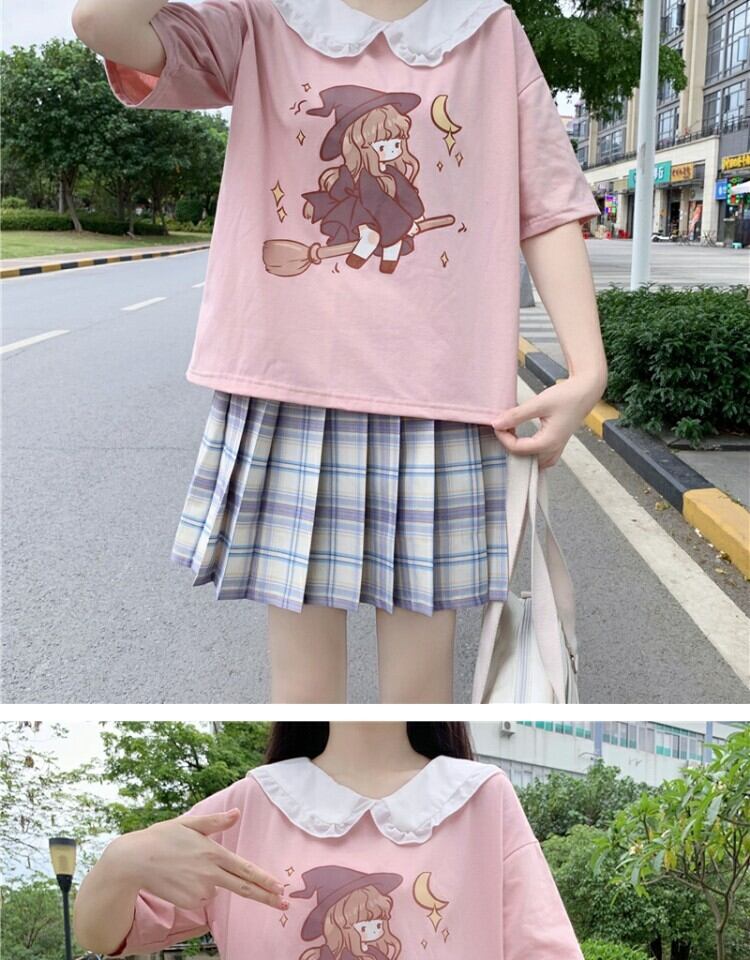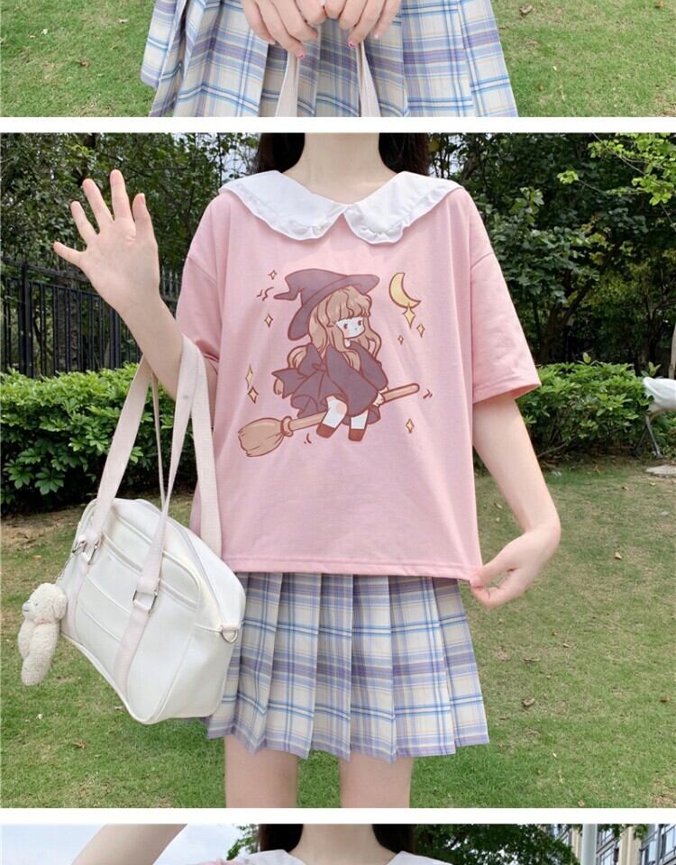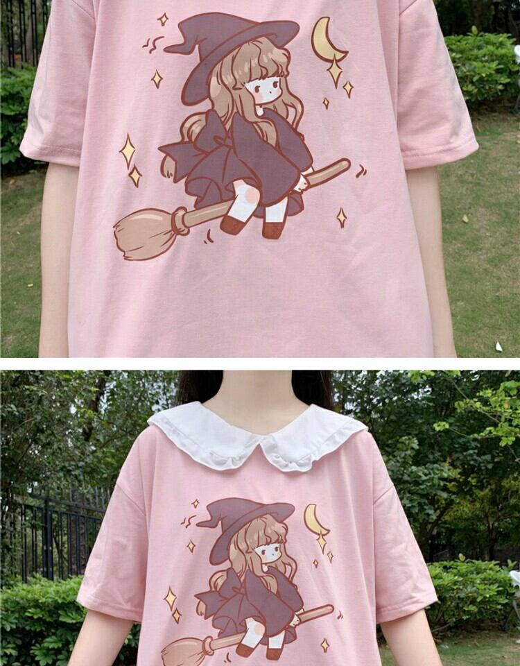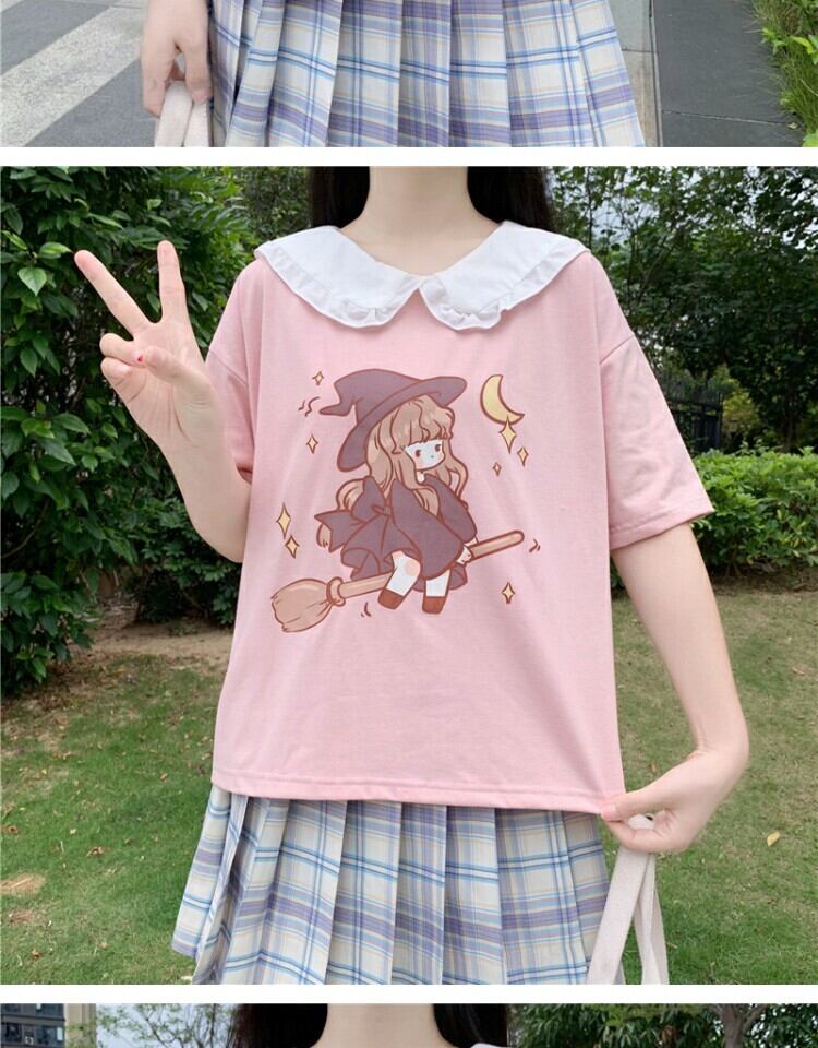 カラープリントショートTシャツ 薄手トップス サマー 大人ガーリー スウィート キュート カジュアル 夏物 萌量不足30260909693
