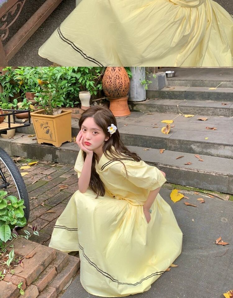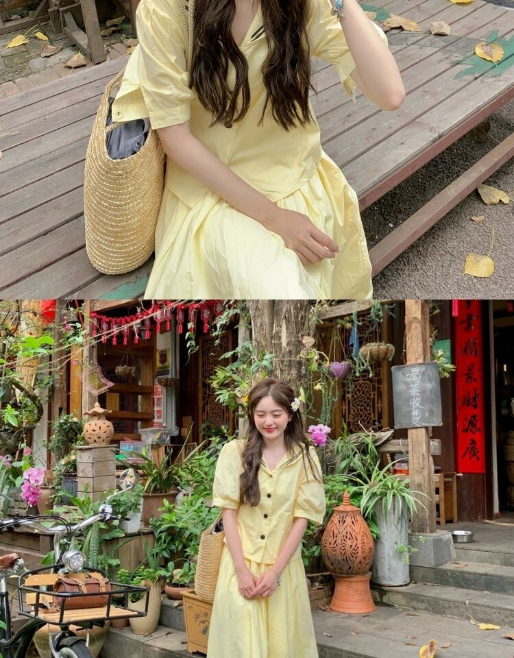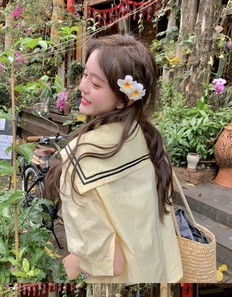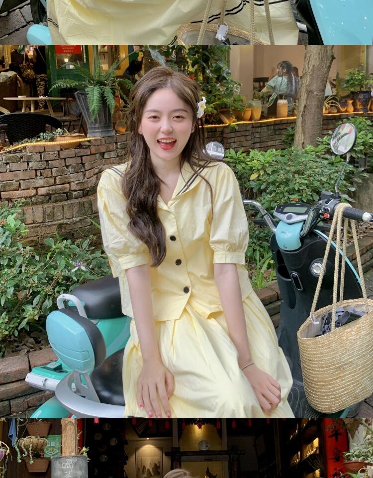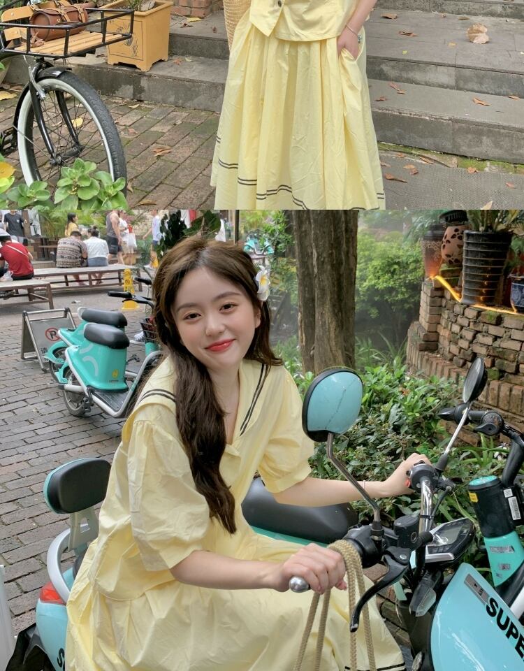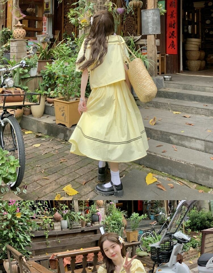 サマーネイビーカラースリーブシャツ トップス ハイウェストウェストスカート 夏物 萌量不足7297168769