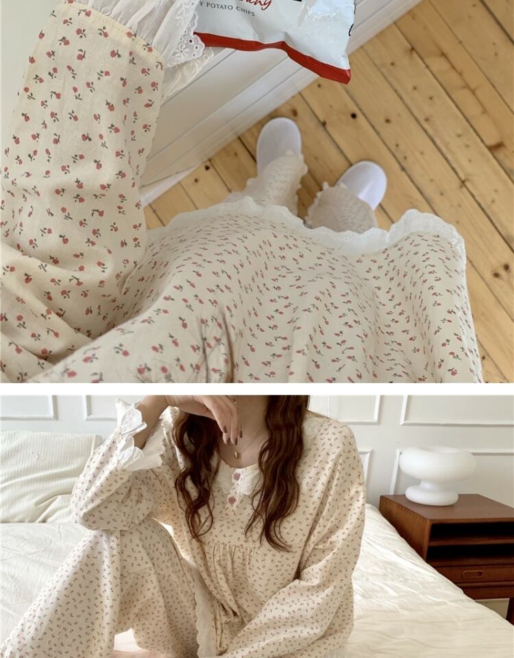 スプリングオータムフローラル ロング コットン 大人ガーリー スウィート キュート カジュアル 春物 秋物 花柄 萌量不足39998962619