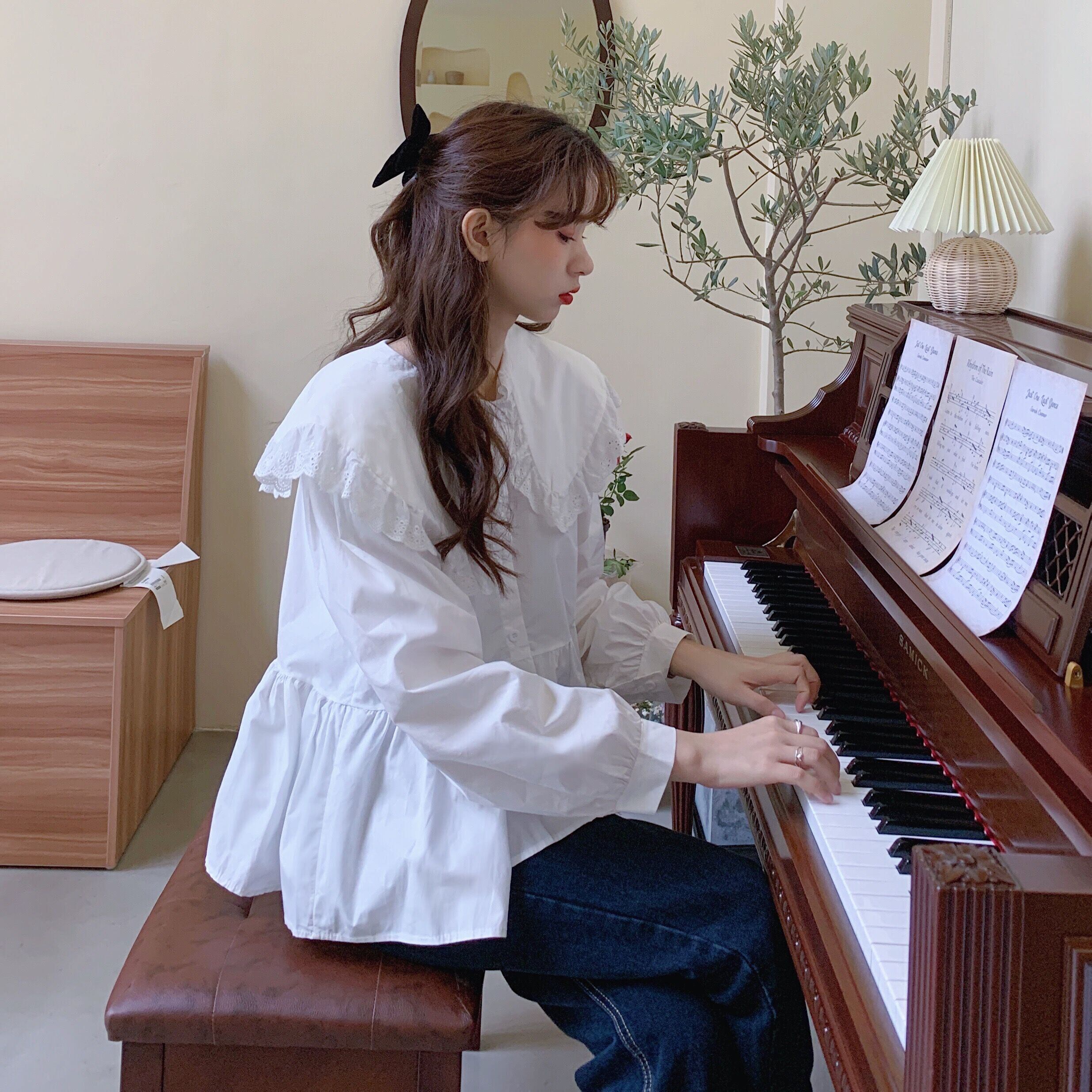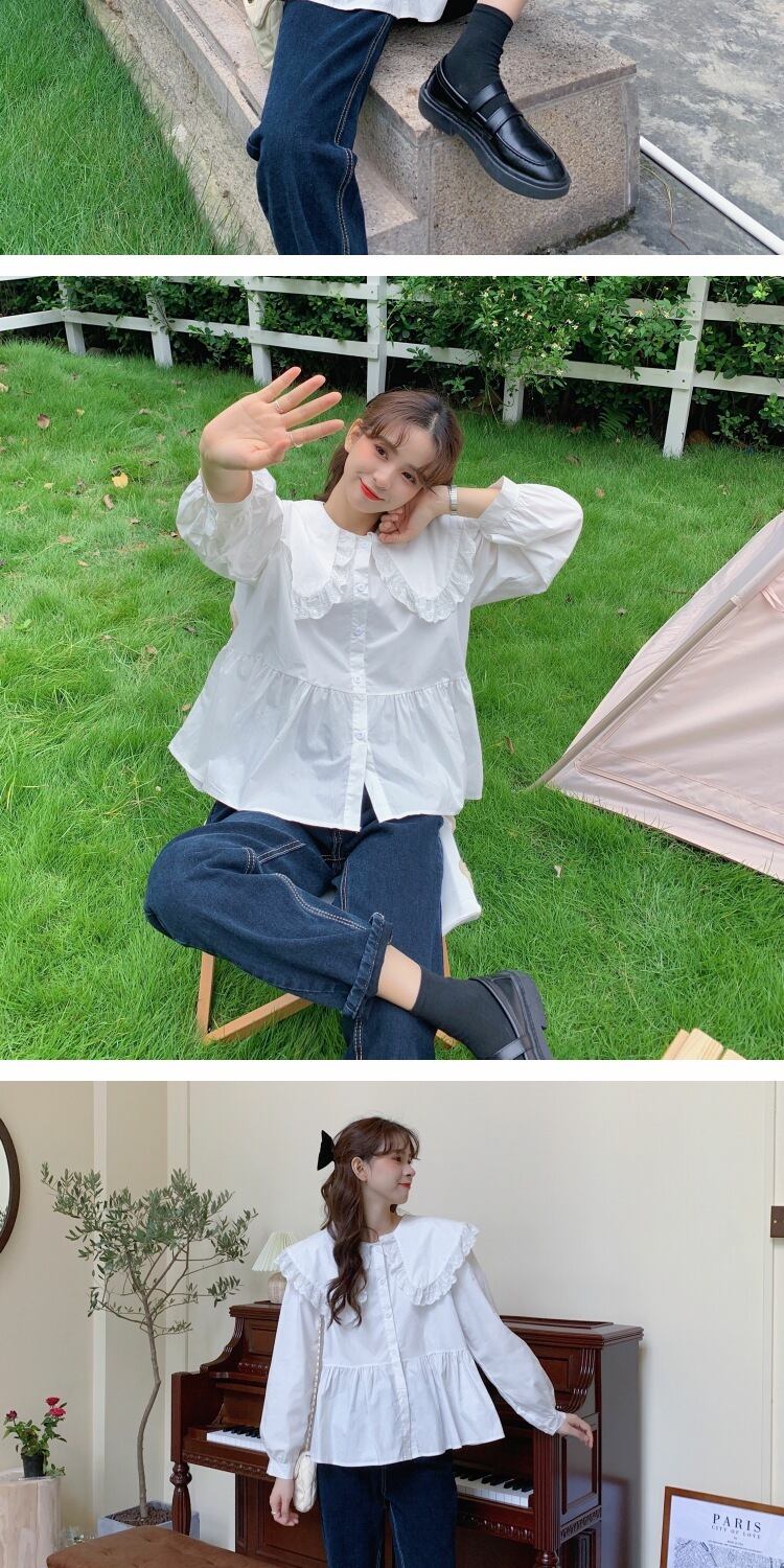 レースシャツ スプリングドレス カラートップス ロング 大人ガーリー スウィート キュート カジュアル 春物 萌量不足36833052180
