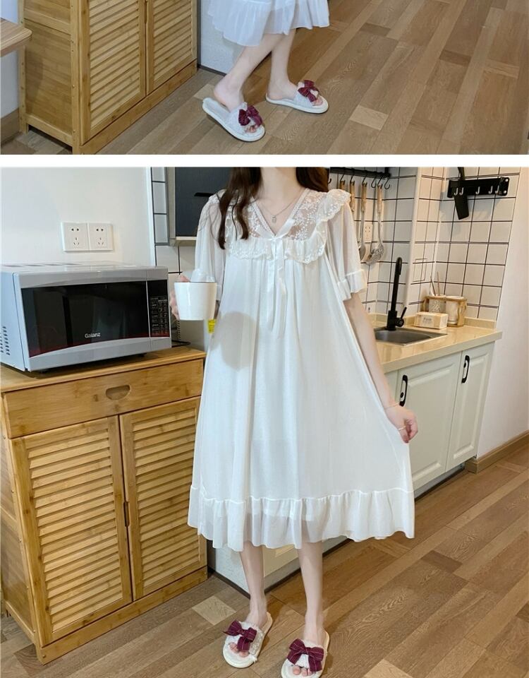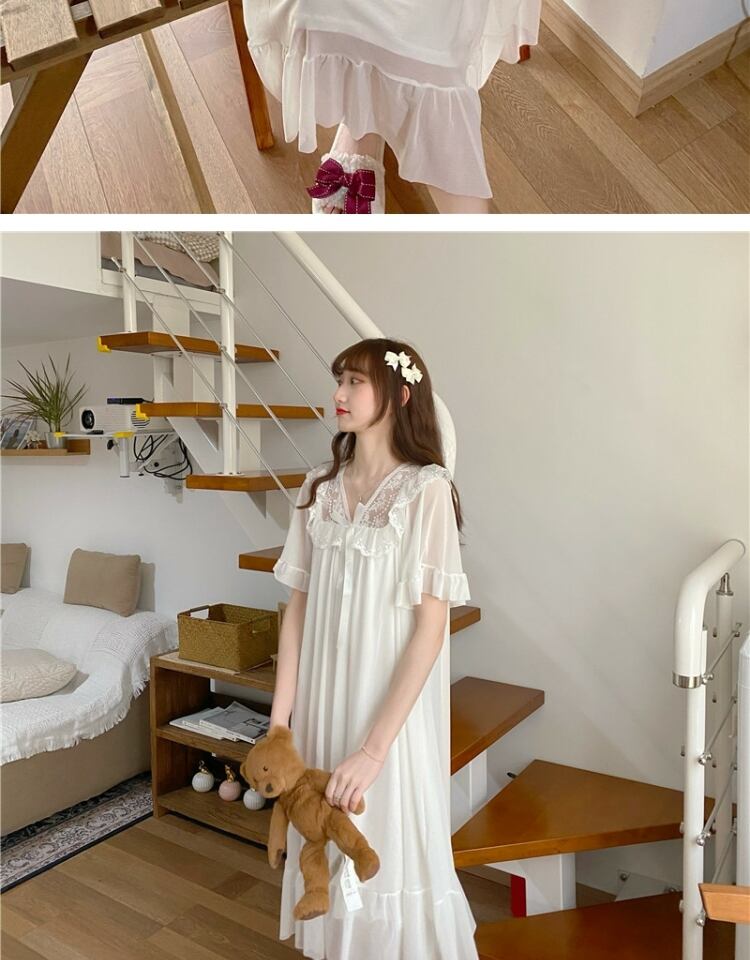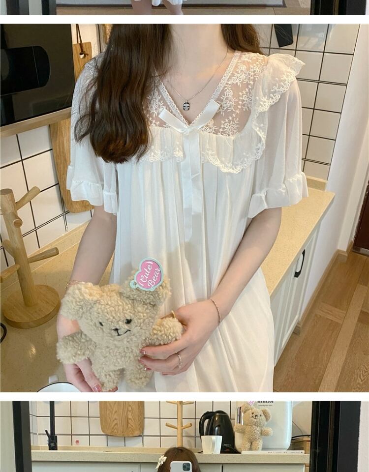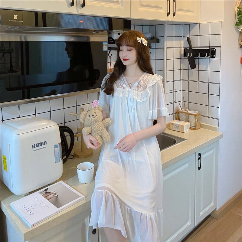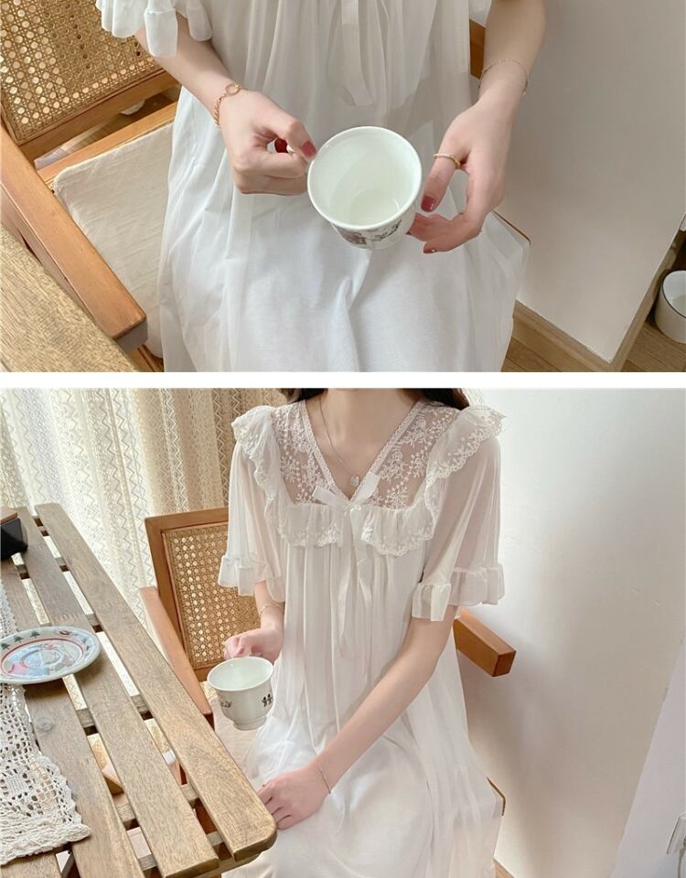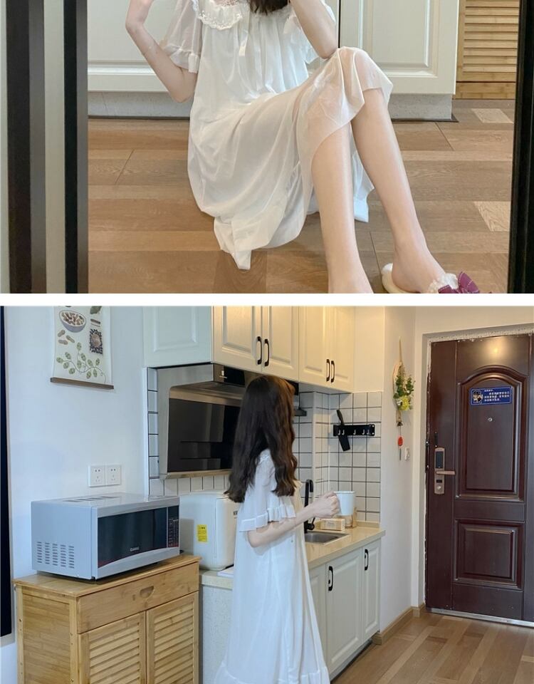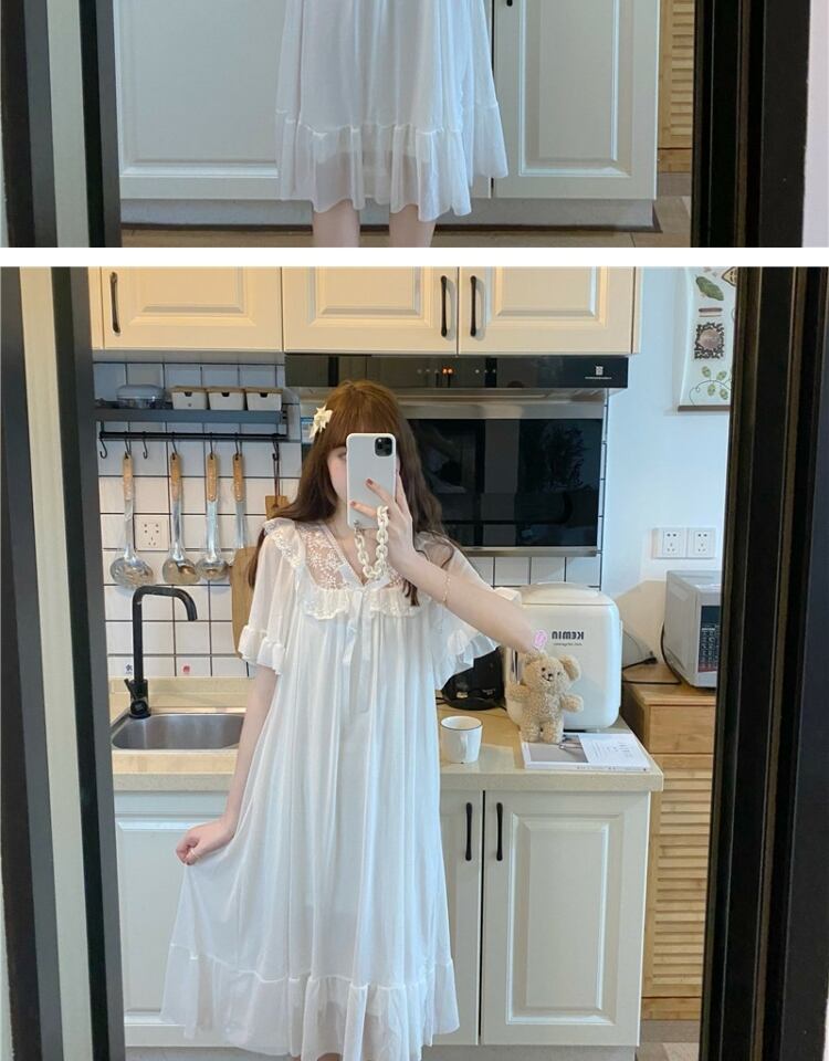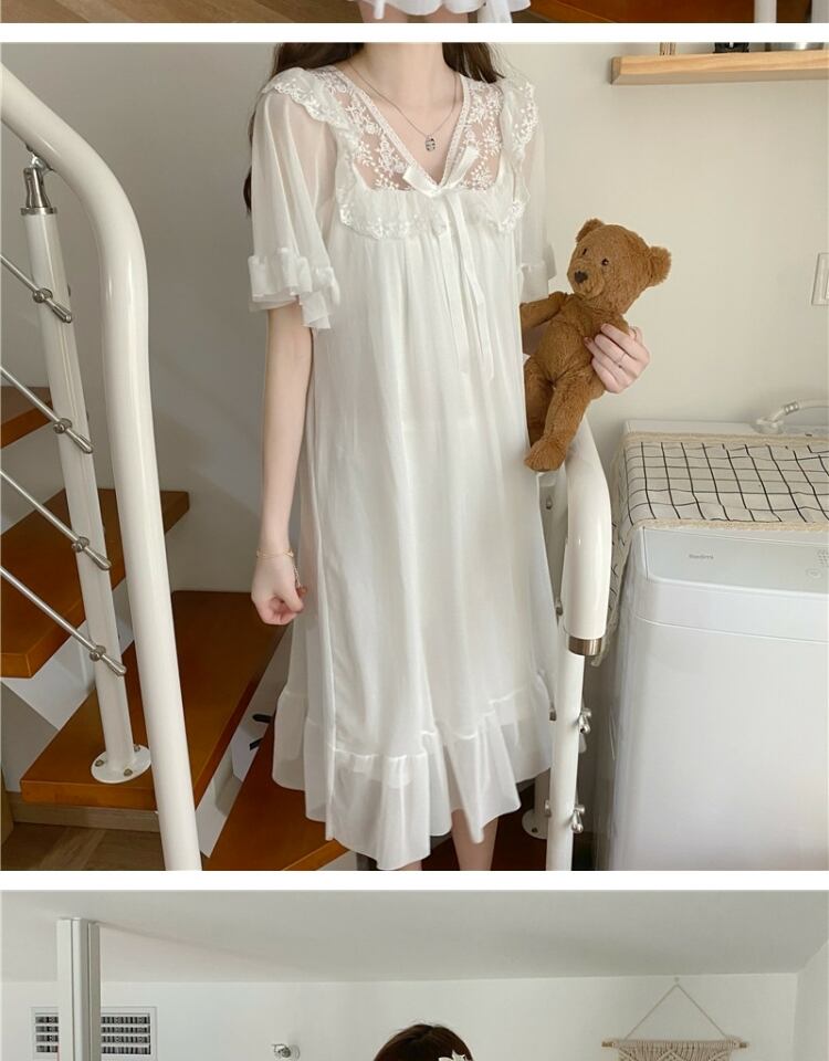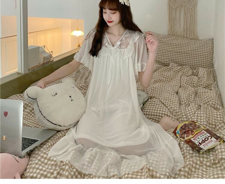ホワイトメッシュドレス サマー薄手 大人ガーリー スウィート キュート カジュアル 夏物 シルク 萌量不足53202648521