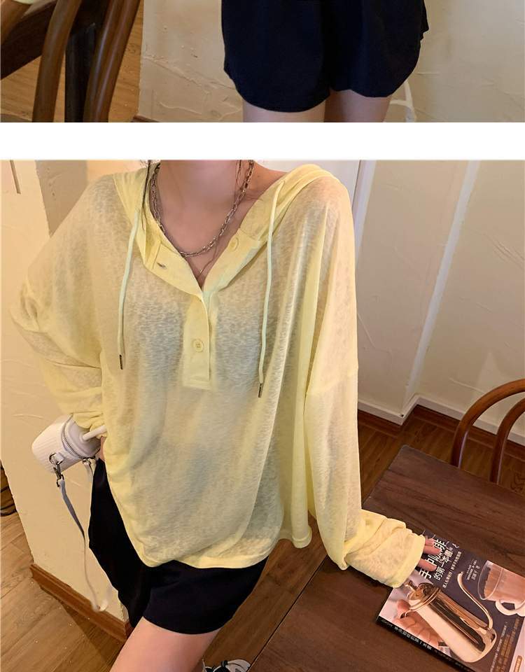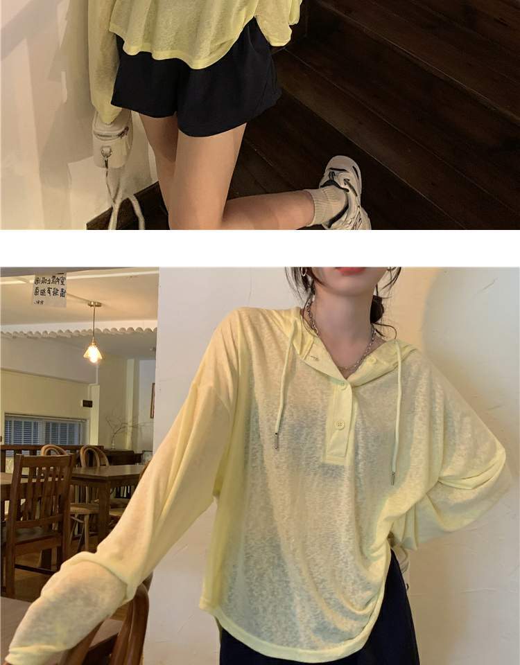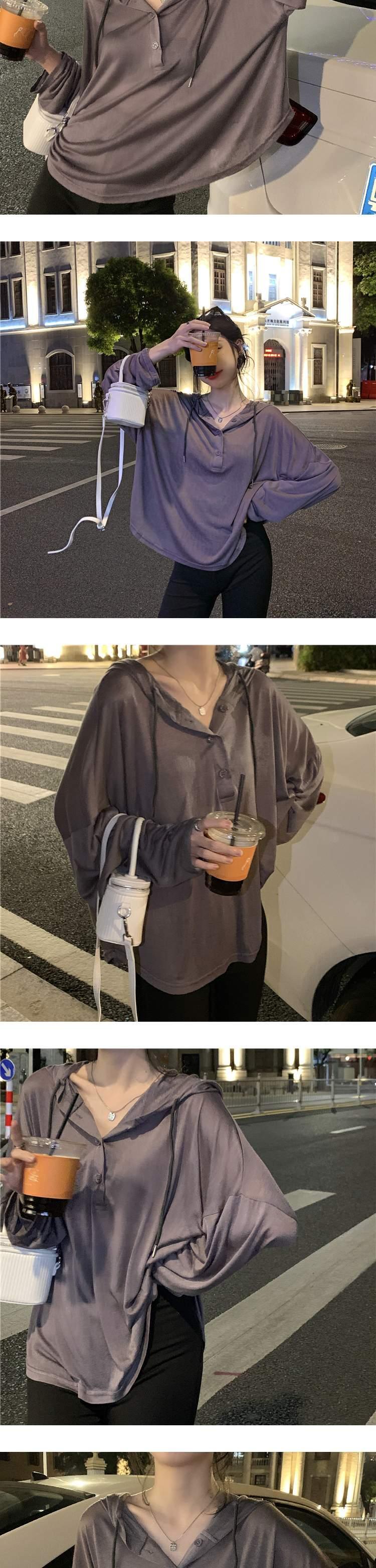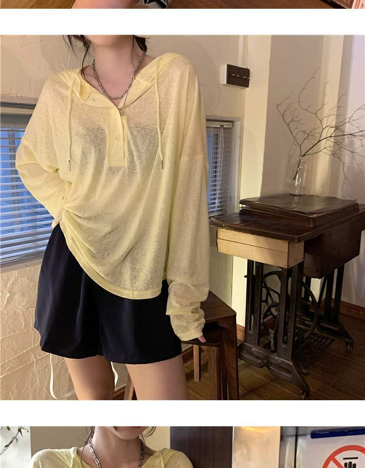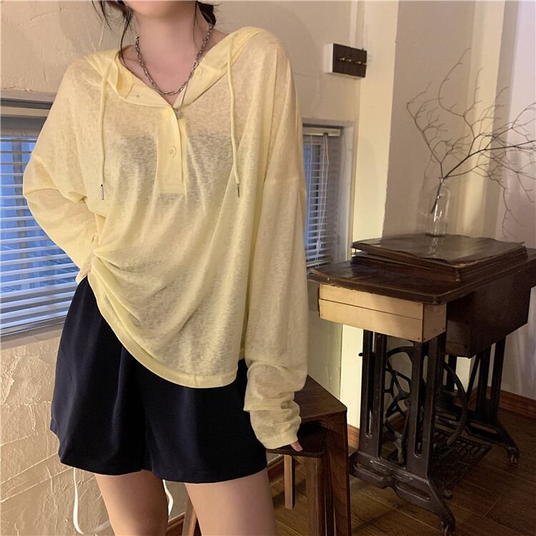 ルーズボタンフードTシャツ シャツ オータム薄手トップス ロング コットン 秋物 ピュア 萌量不足26060501031