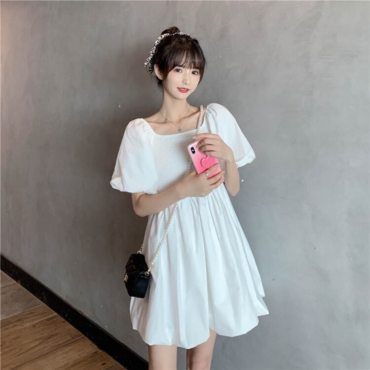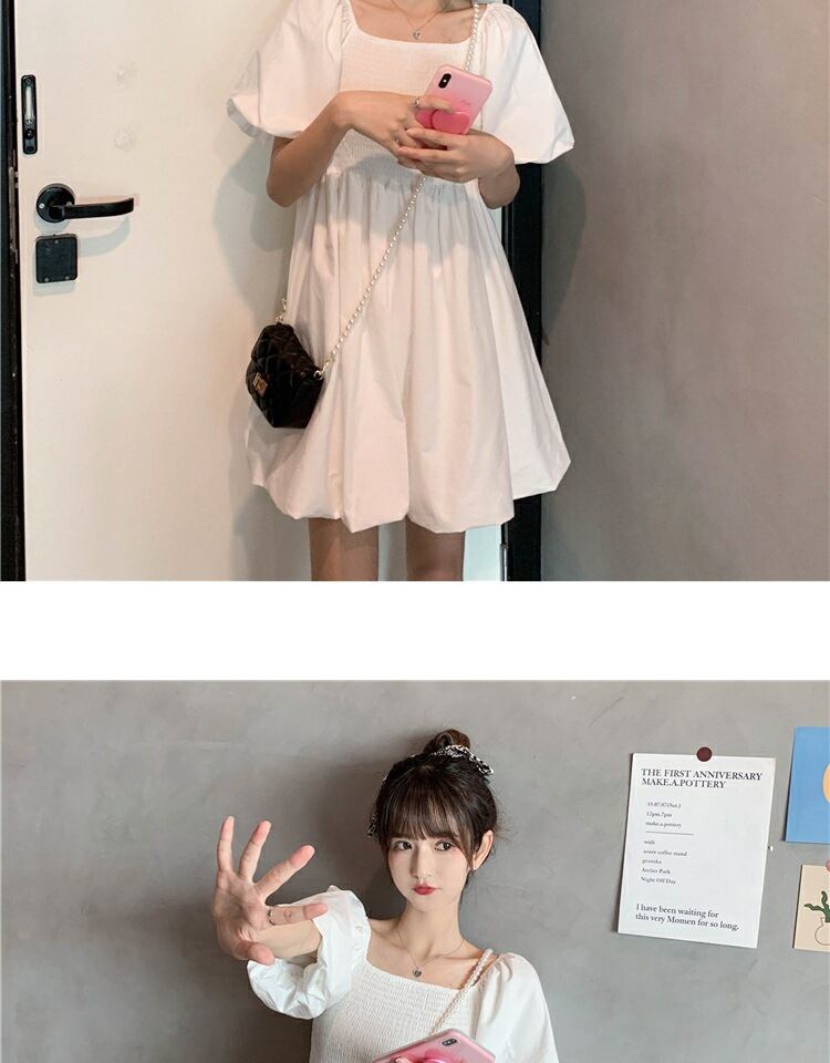 カラースリーブウェストスカート 薄手ドレス サマーホワイト 夏物 スクウェア 萌量不足74208307978