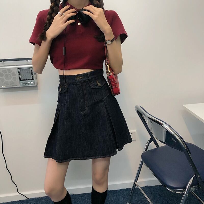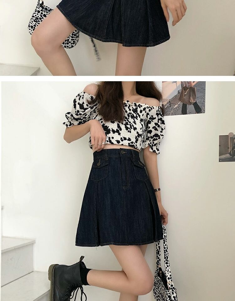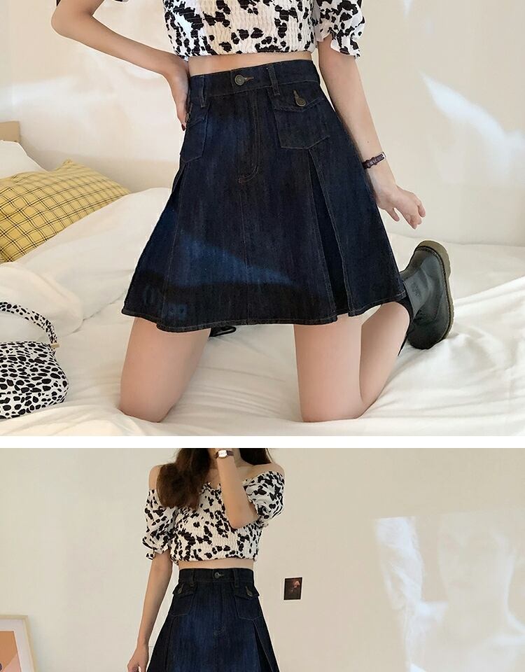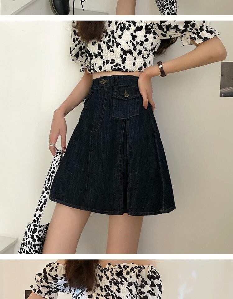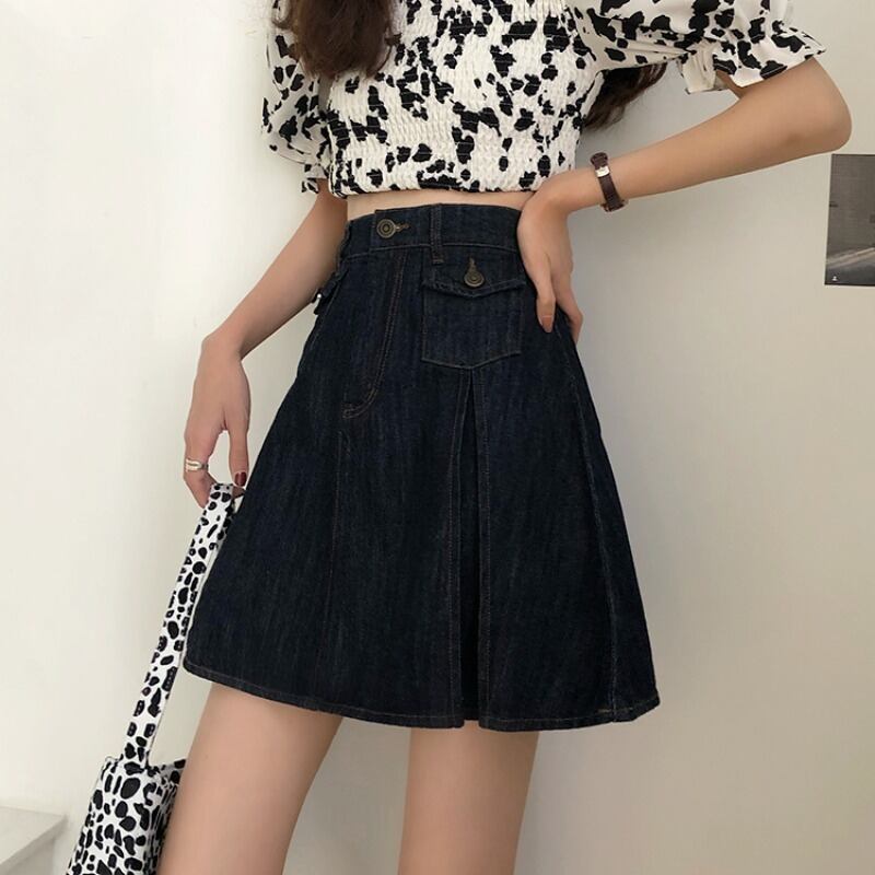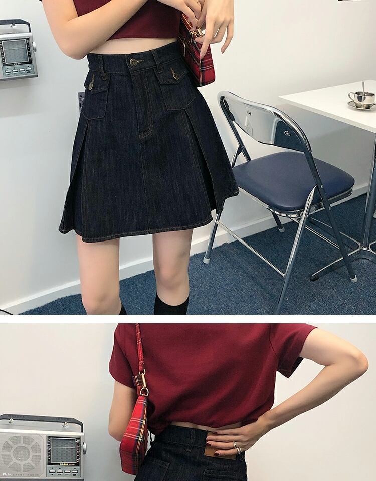 スカート サマーハイウェストウェスト薄手スタンダードプリーツAライン レトロ 夏物 萌量不足48500048413