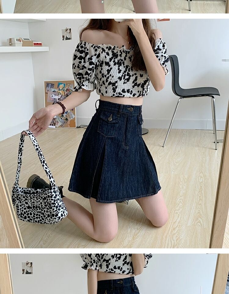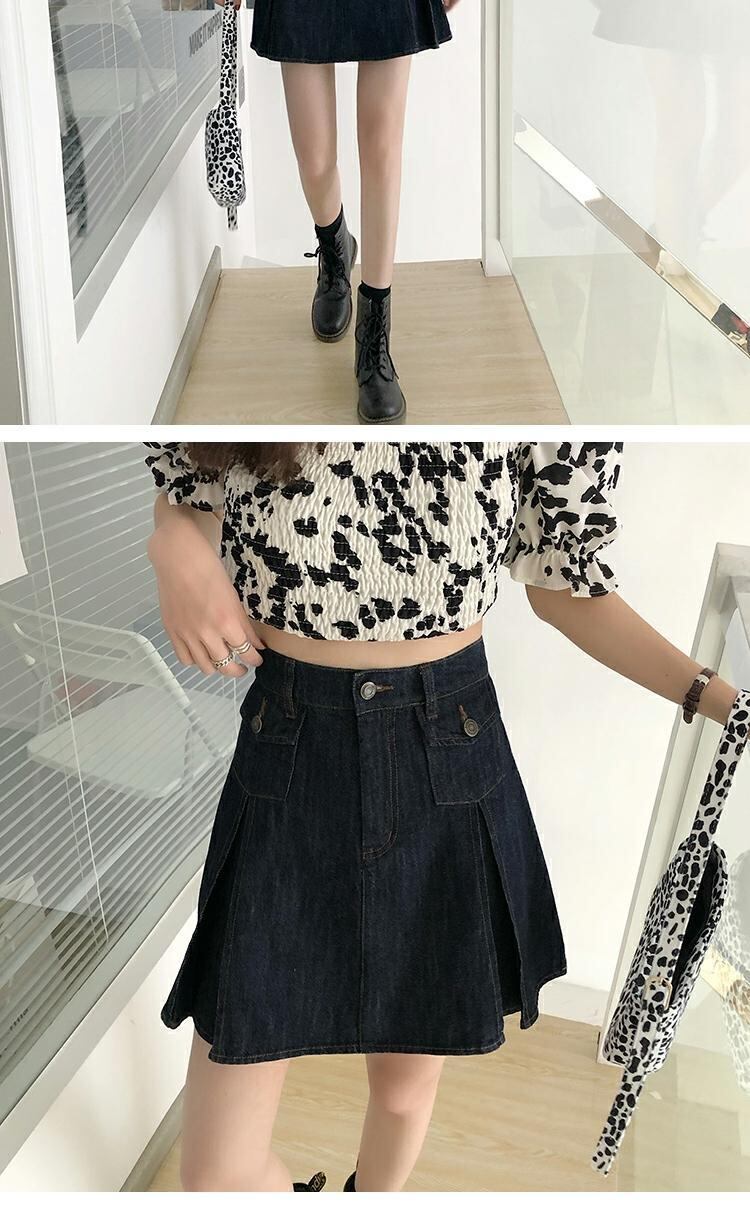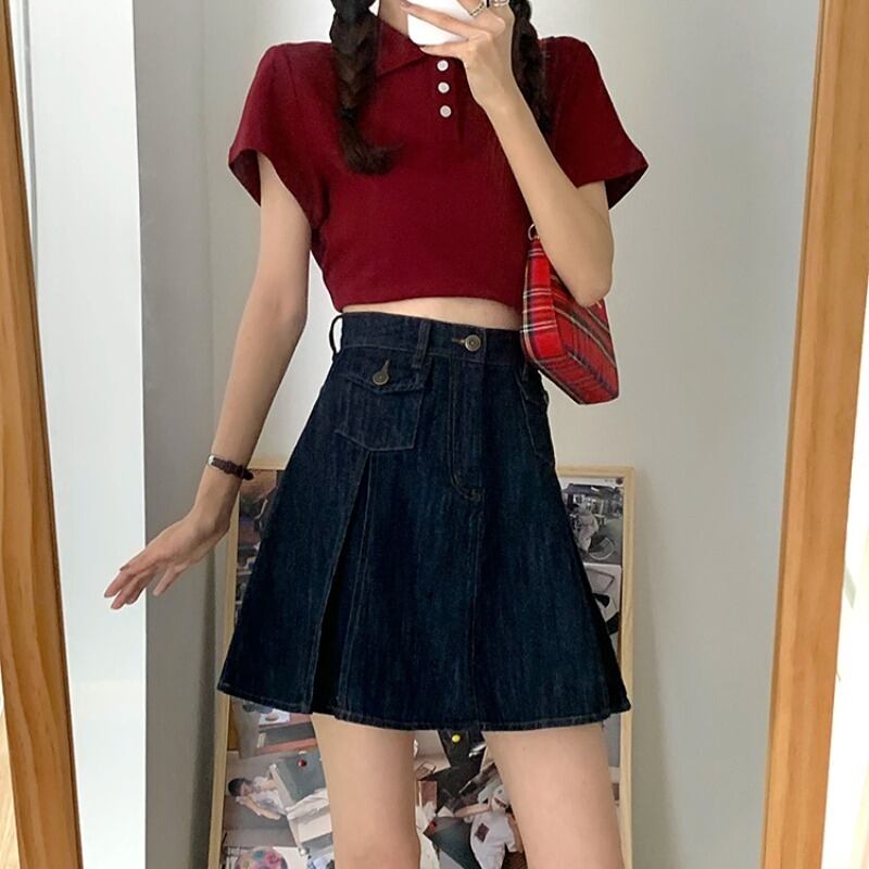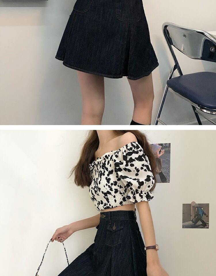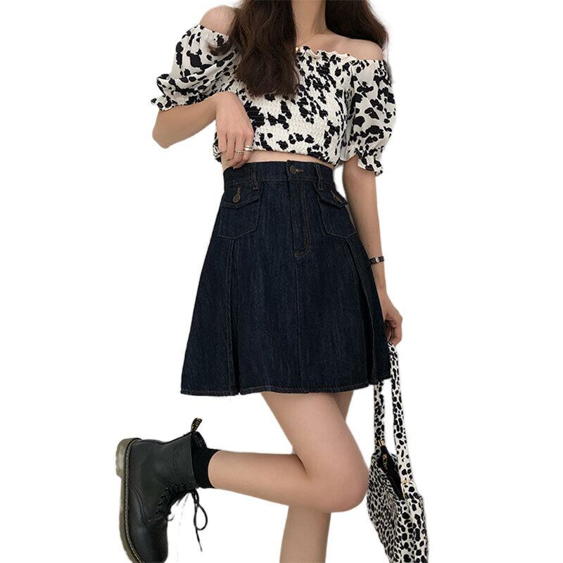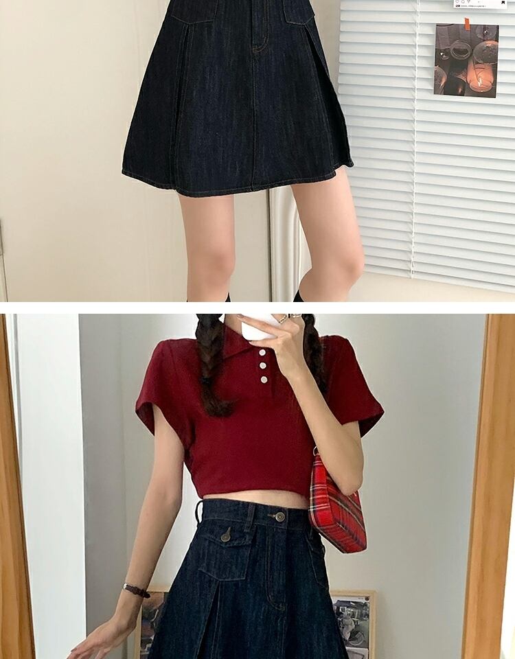 スカート サマーハイウェストウェスト薄手スタンダードプリーツAライン レトロ 夏物 萌量不足48500048413