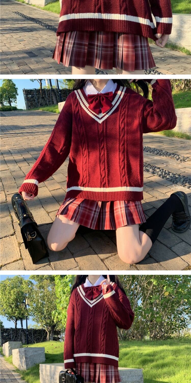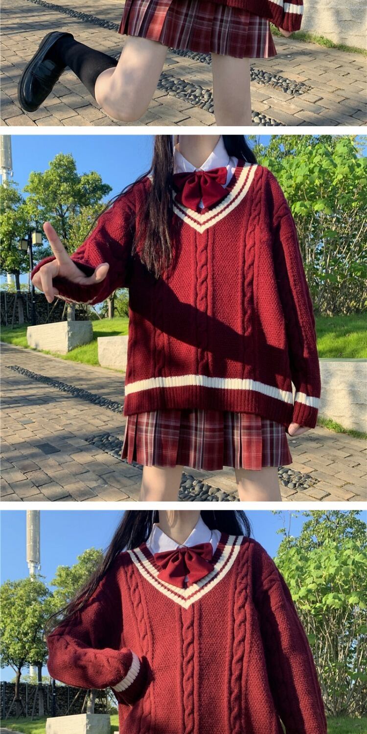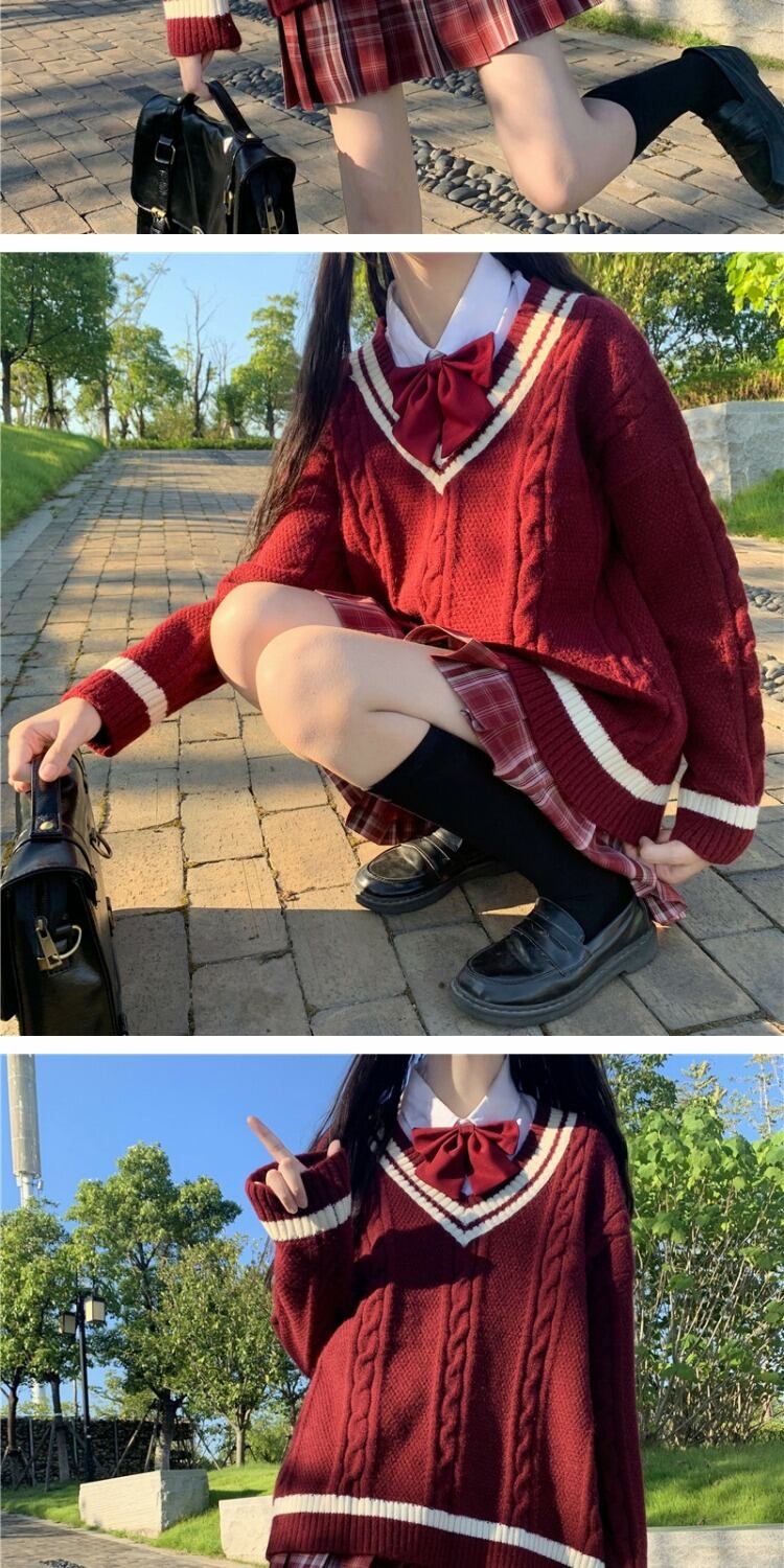 スタイルスプリングオータムVネックプルオーバー ニットセーター トップス レッド 春物 秋物 萌量不足75288389482