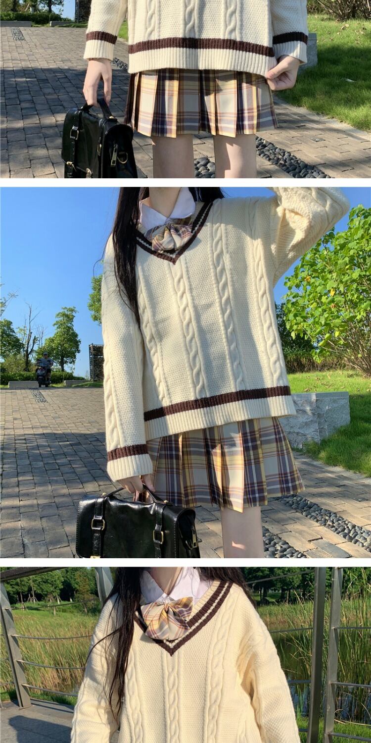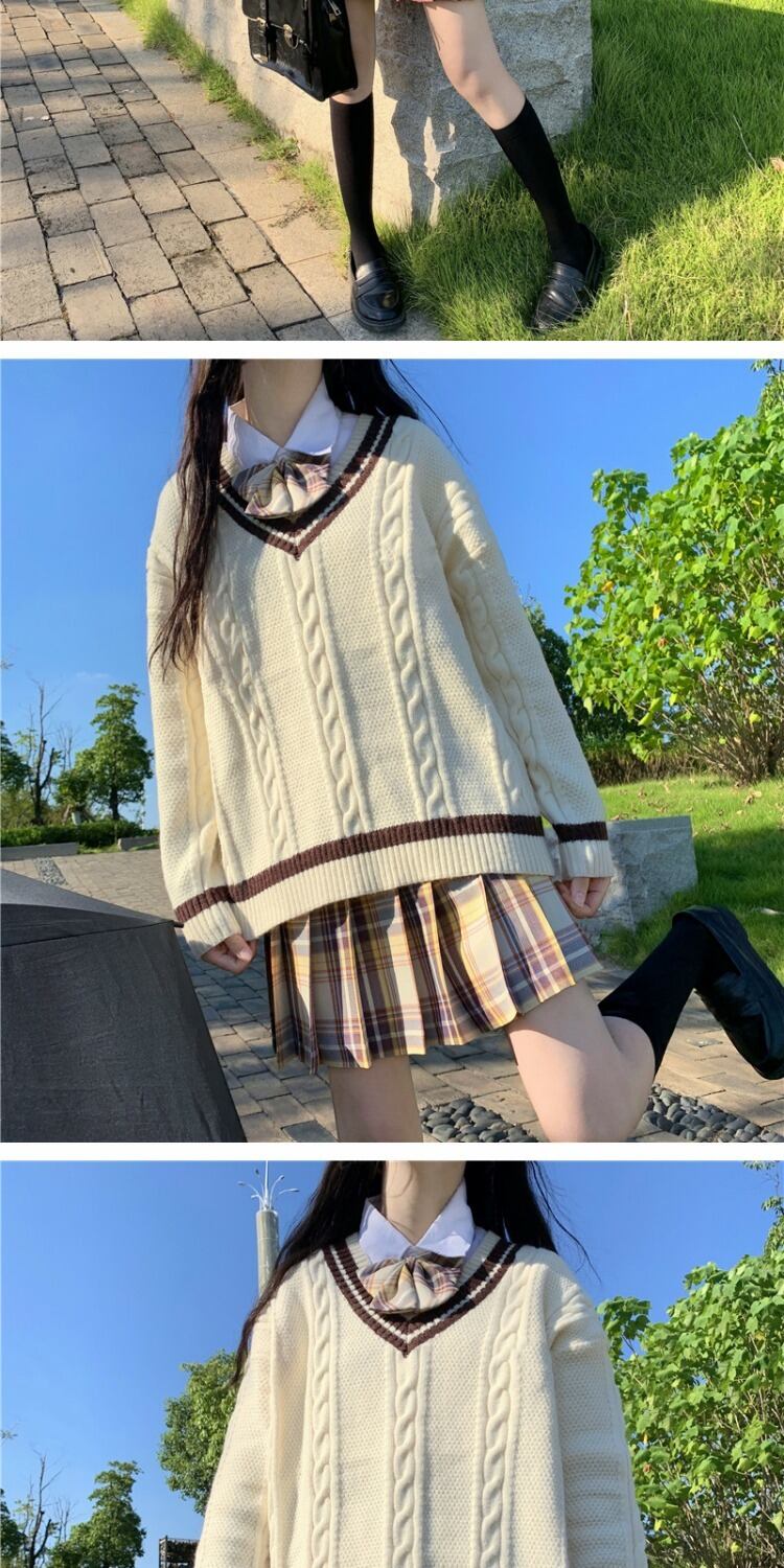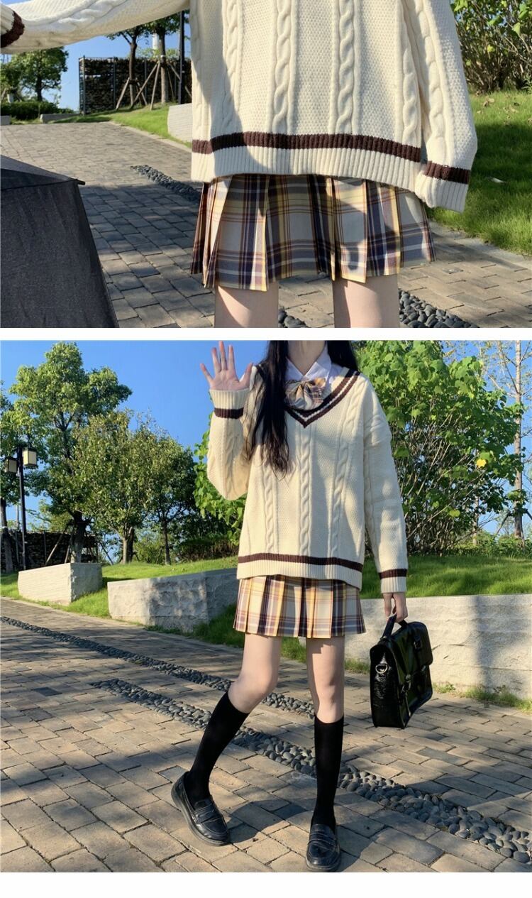 スタイルスプリングオータムVネックプルオーバー ニットセーター トップス レッド 春物 秋物 萌量不足75288389482